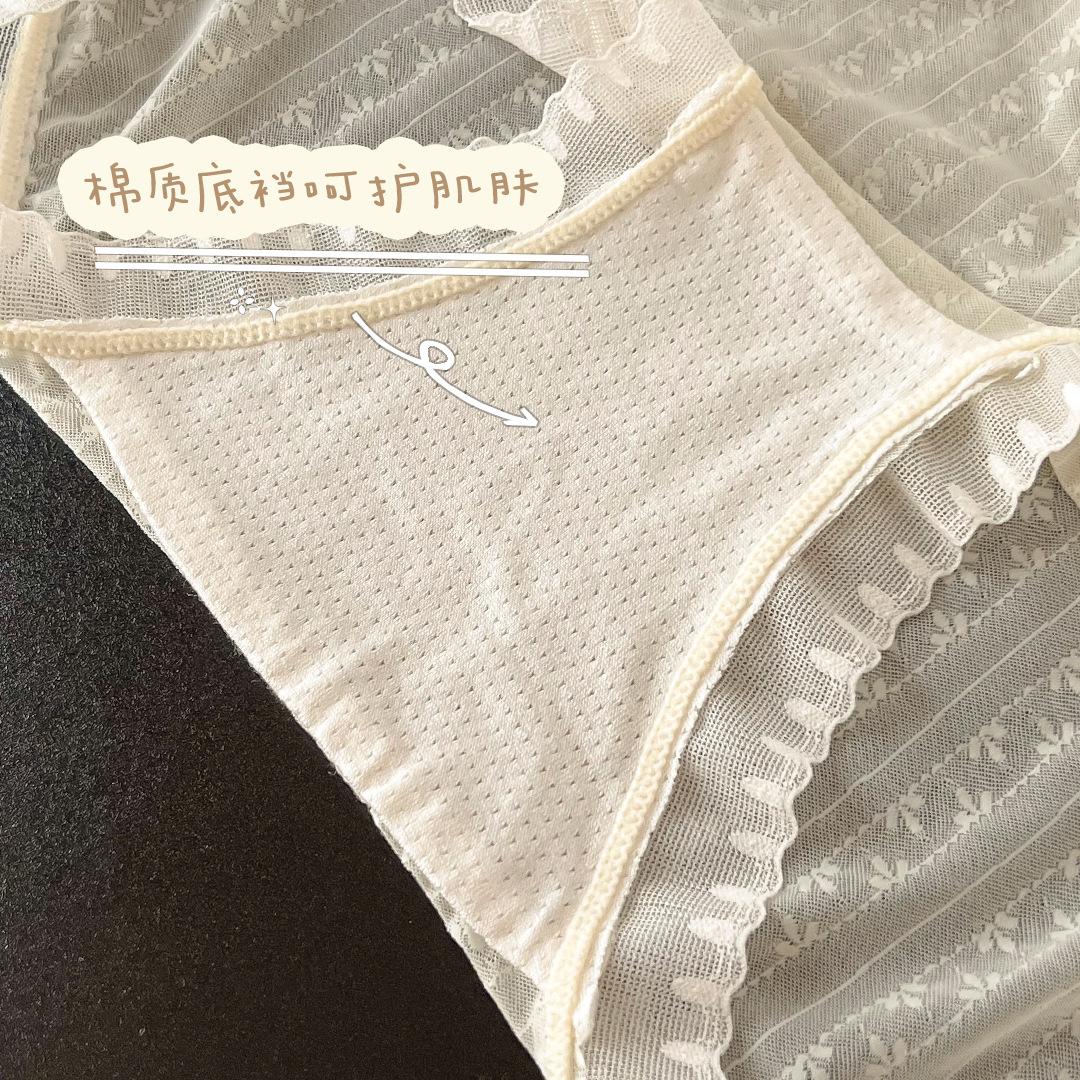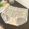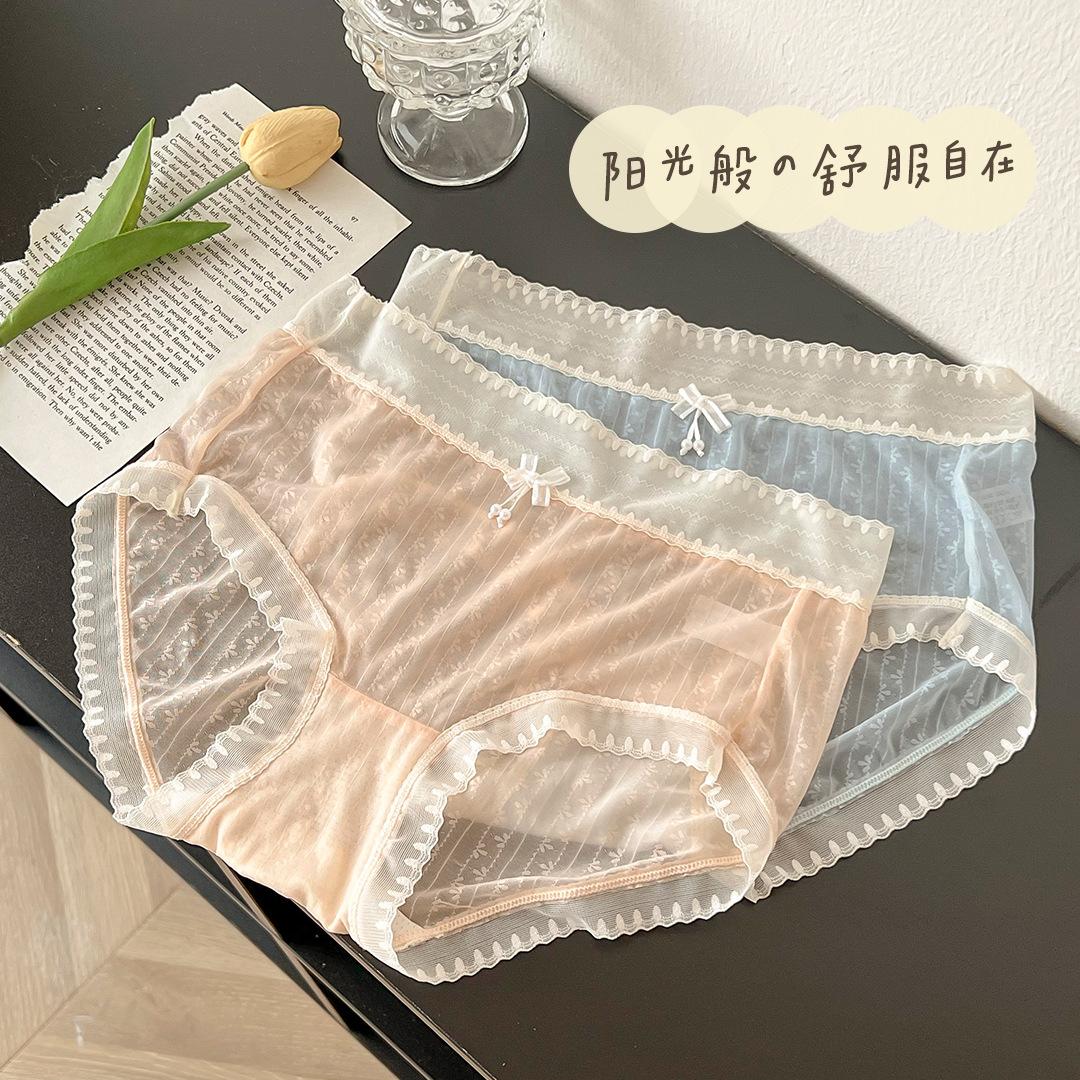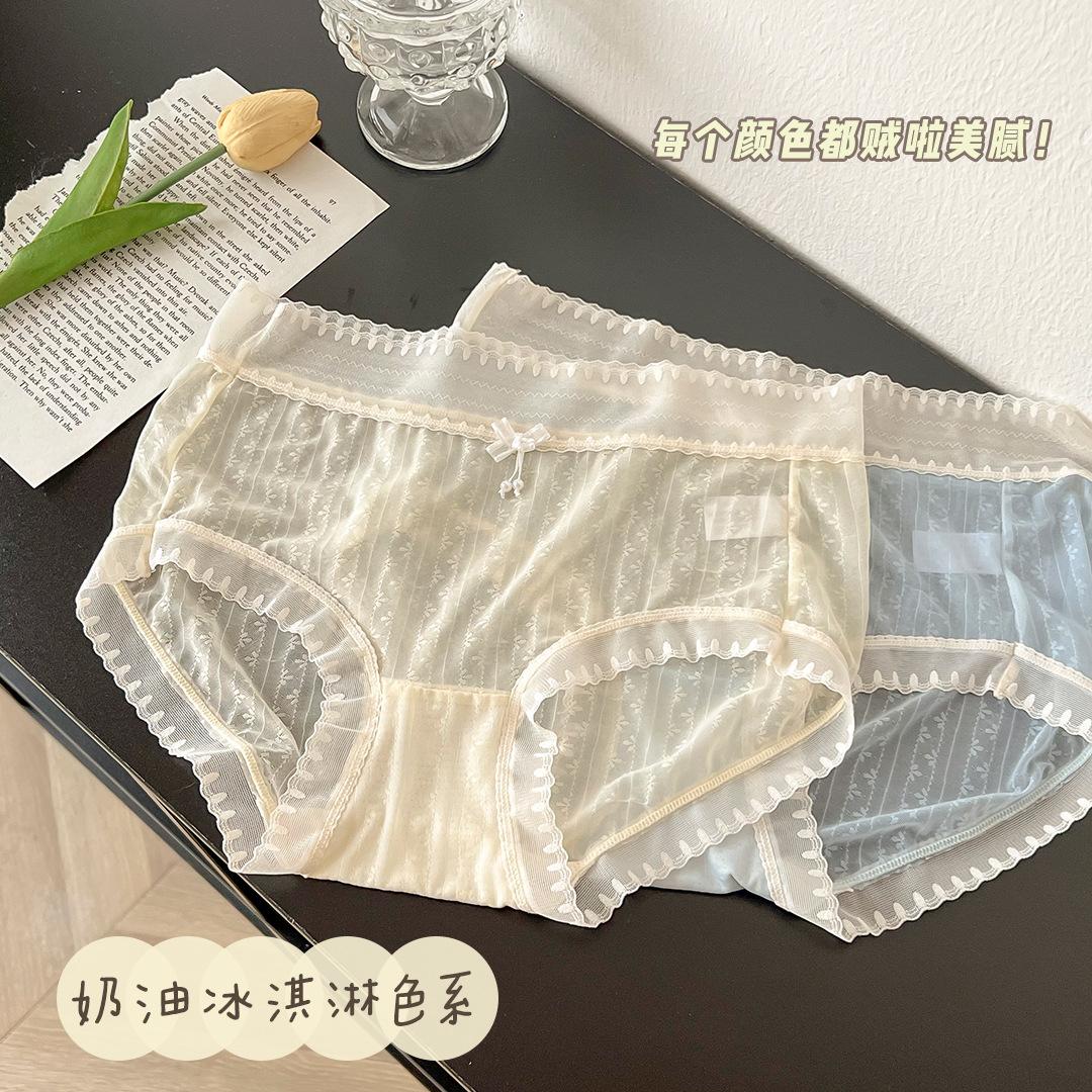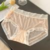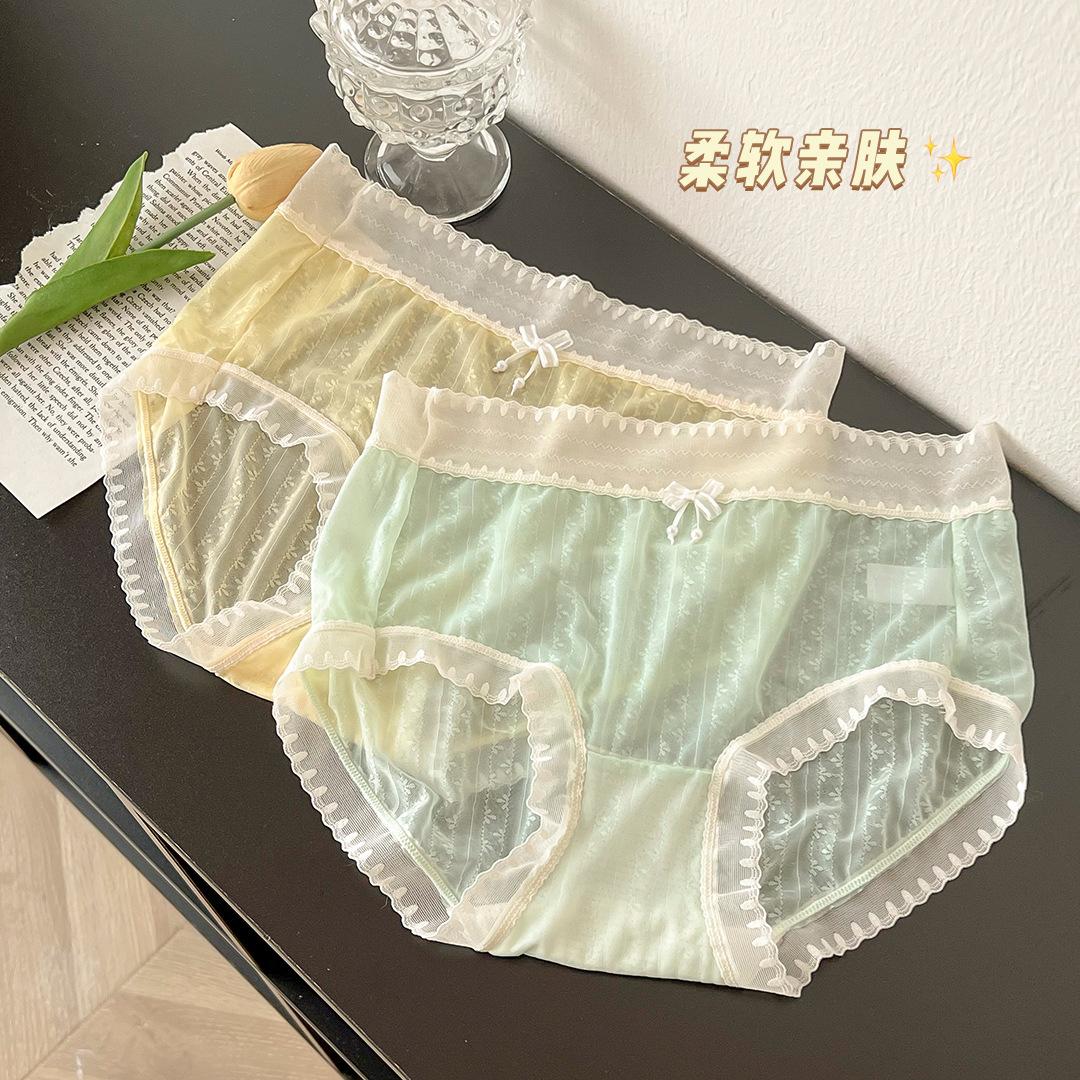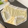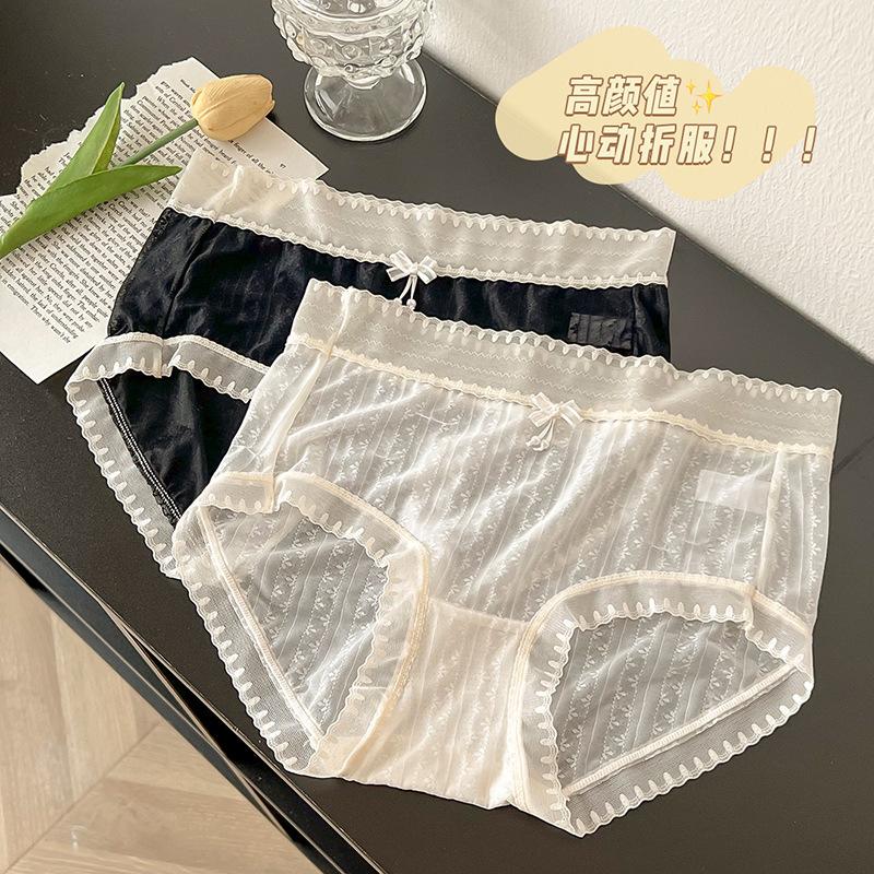 Ropa interior de encaje para mujer, de verano, fina, antibacteriana, de algodón puro, con entrepierna a media cintura, sexy, de malla sin marcas.