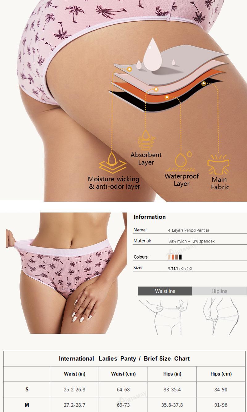 Ropa interior para tías de cuatro capas a prueba de fugas opcional multicolor transfronteriza de Europa y Estados Unidos absorbente transpirable con orificio pantalón fisiológico toalla sanitaria