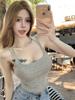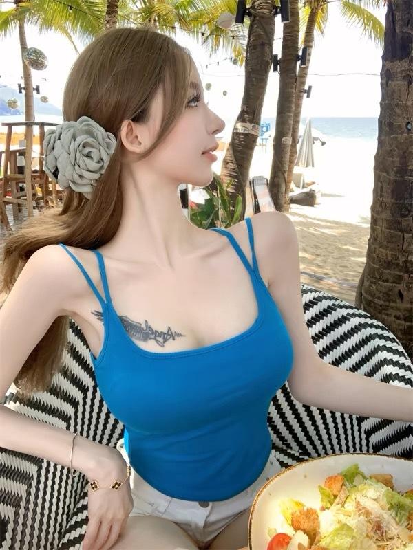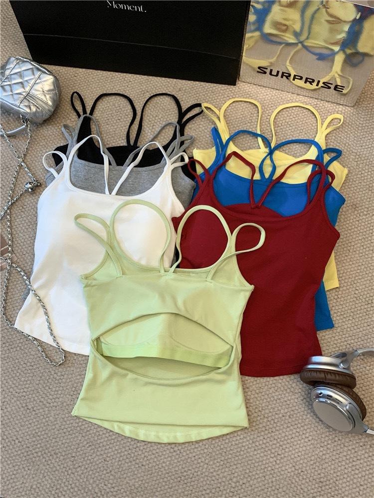 Camisola corta sexy para mujer, de verano, ajustada, sin mangas, con cinturón interior, almohadilla para el pecho, sin espalda, para uso exterior