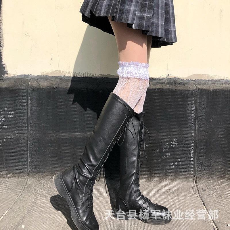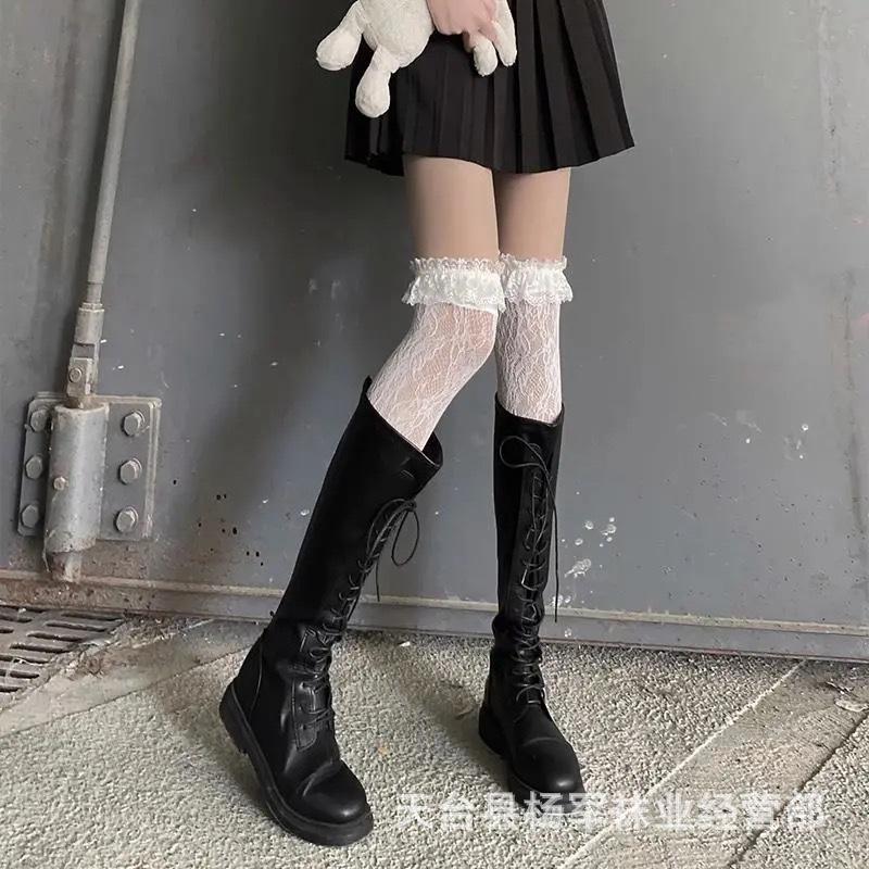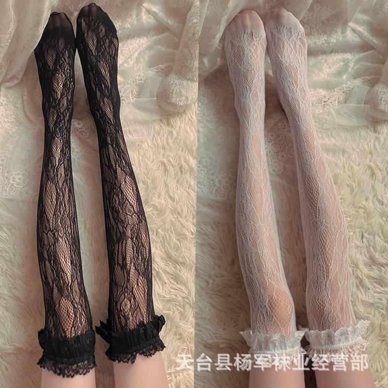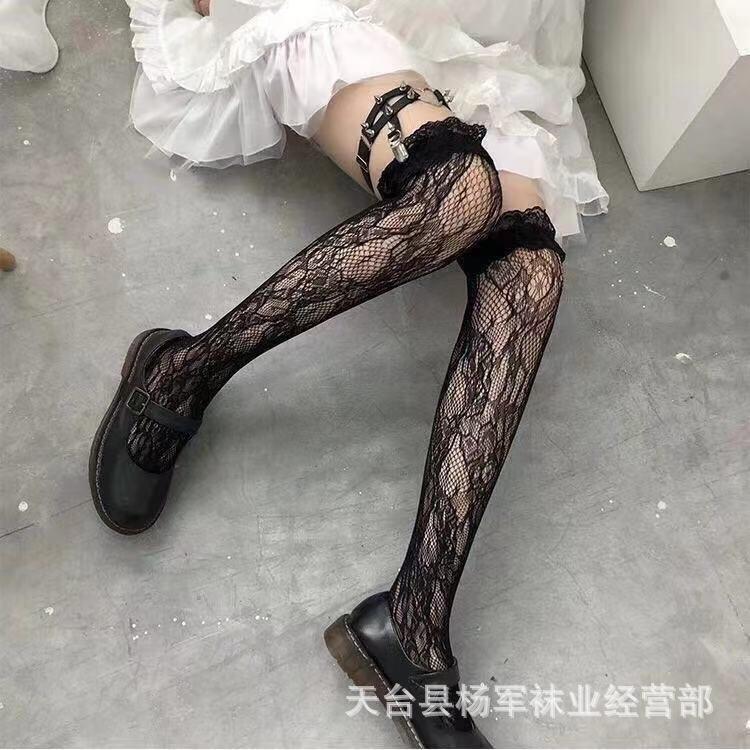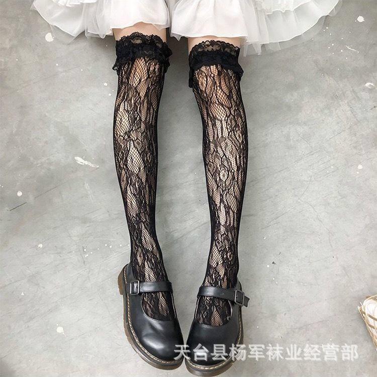 Calcetines de Botas por Encima de la Rodilla Encaje Encaje Negro Invierno Calcetines Calados Estudiante Mujer lolita Calcetines lolita de Tacón Alto