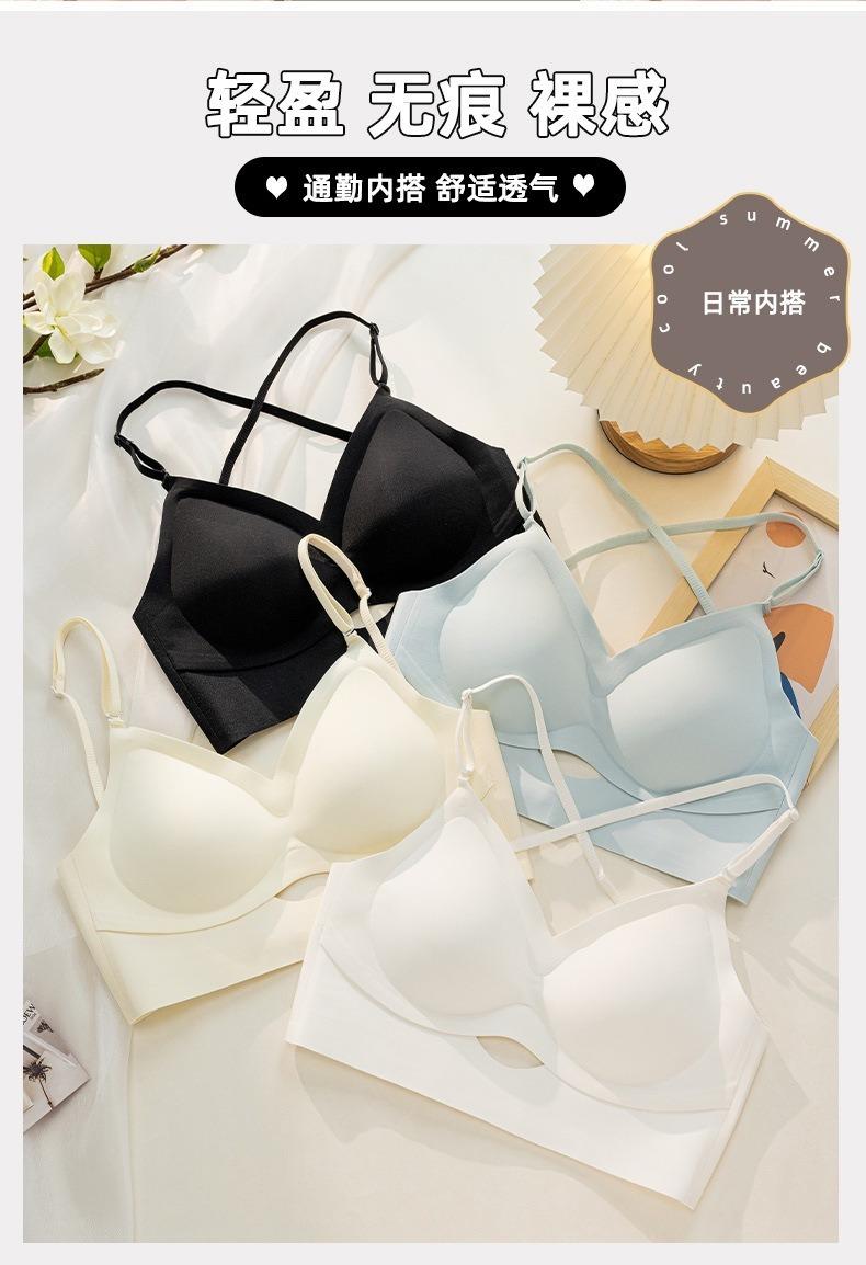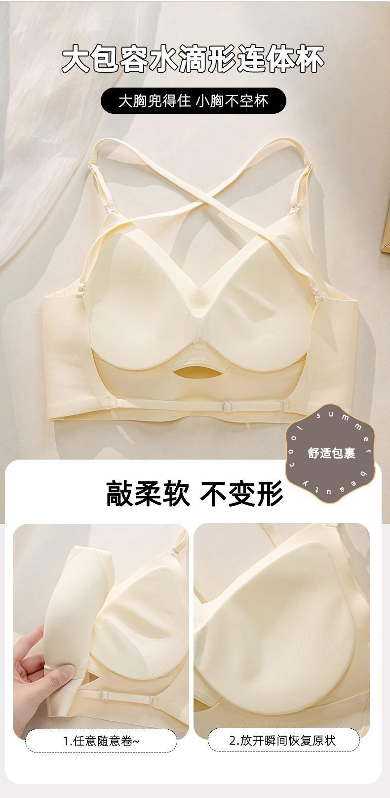 Ropa interior de verano fina y hermosa para mujer, con fruncido de pecho pequeño, sin marcas, en forma de U, grande, sin espalda, sexy y transpirable.