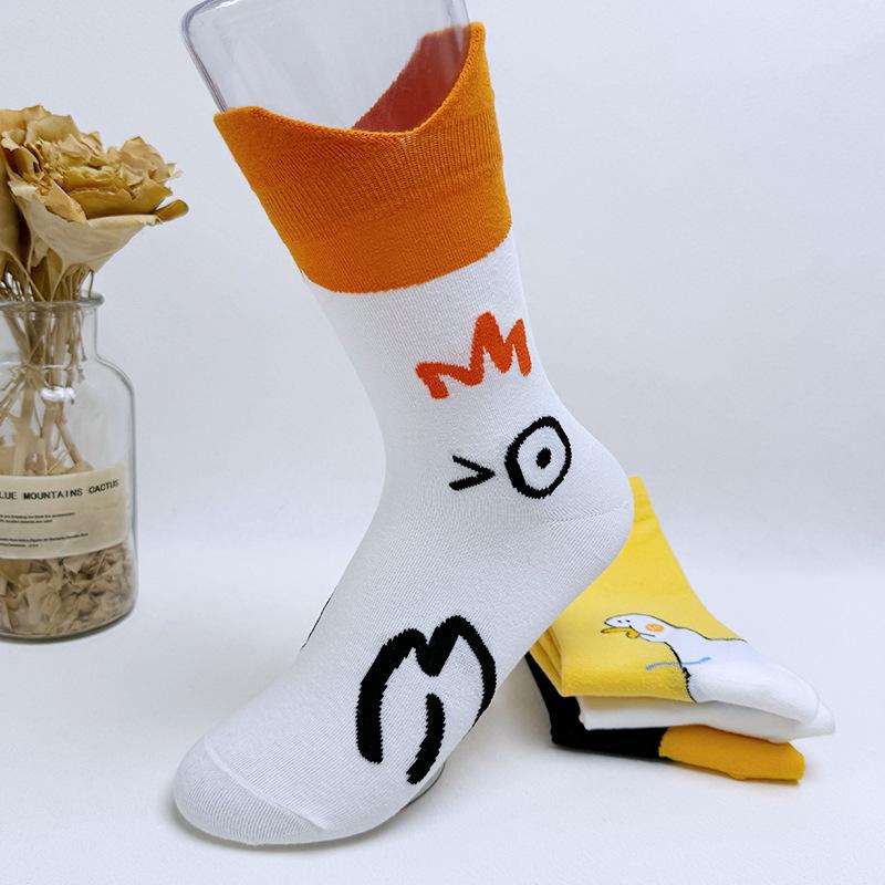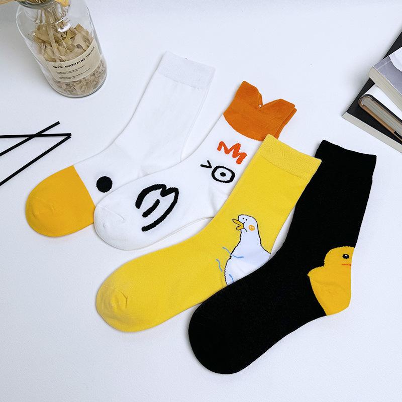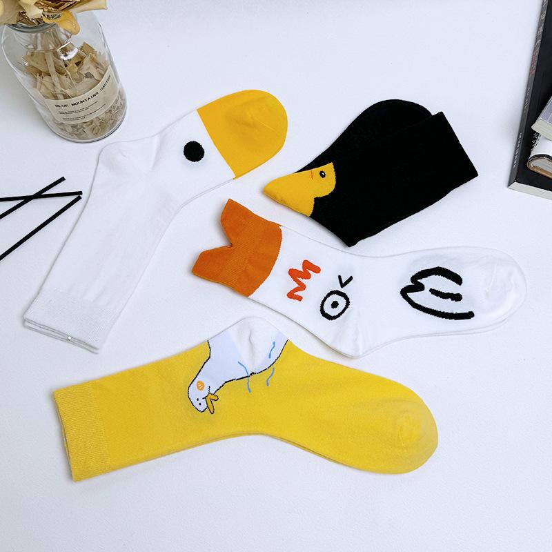 Calcetines de Verano para Mujer con Dibujo de Pato de Dibujos Animados hasta Media Pantorrilla, Calcetines de Algodón Absorbentes de Sudor a la Moda, Calcetines Largos Japoneses Lindos, Calcetines Casuales para Mujer