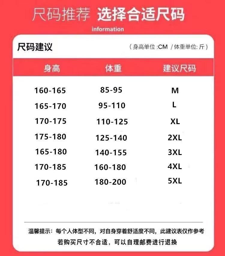 M, L, XL, 2XL, 3XL, 4XL, 5XL