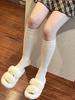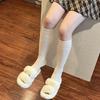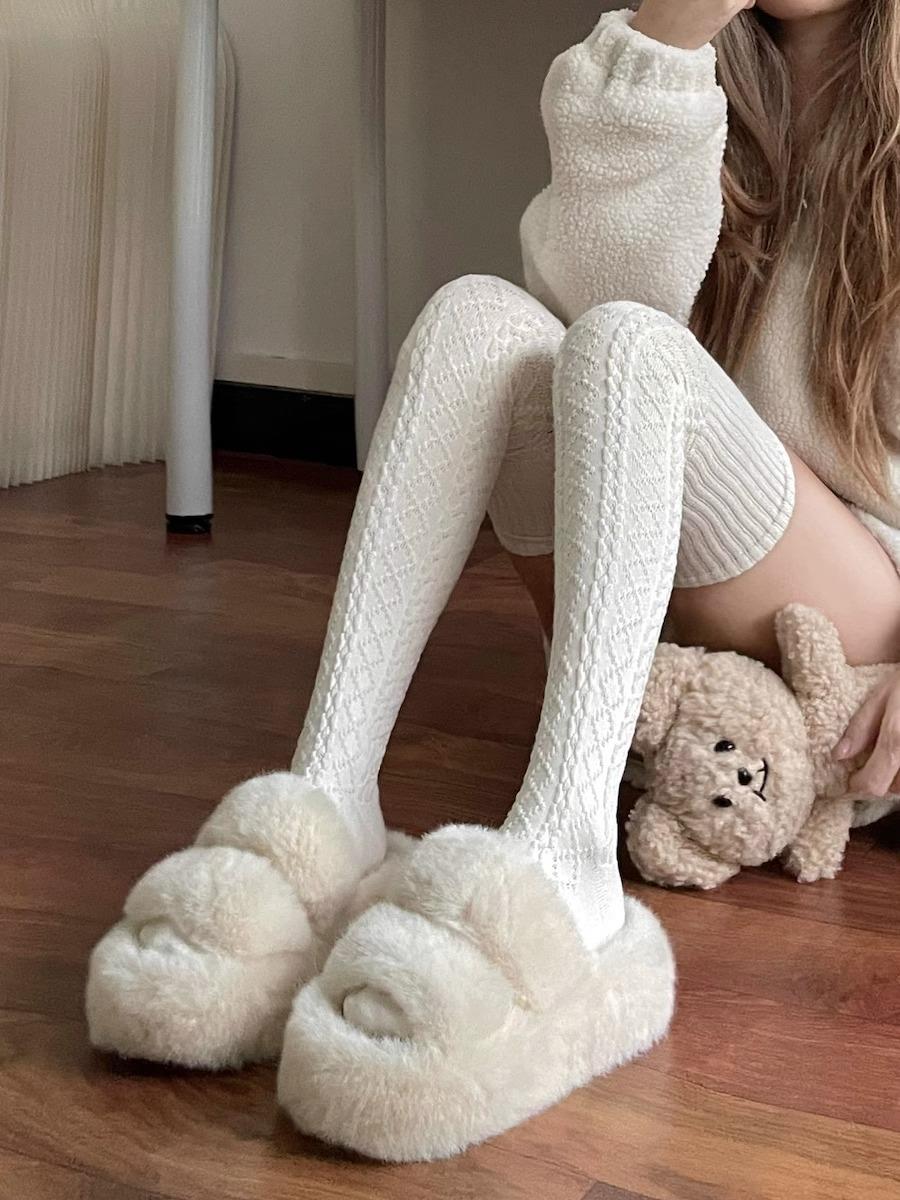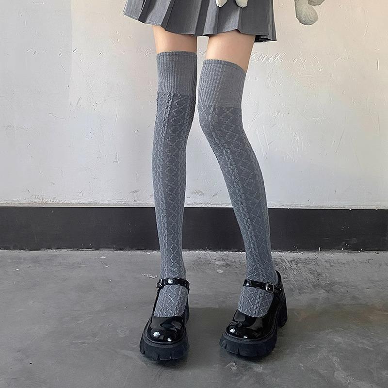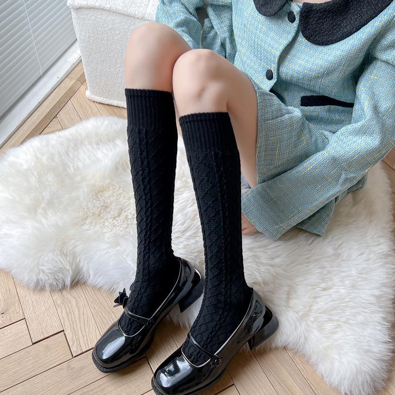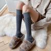 Calcetines por encima de la rodilla, otoño e invierno, medias blancas para mujer, calcetines japoneses Lolita hasta la pantorrilla, calcetines de pelo con patrón de cáñamo de punto, calcetines de pantorrilla