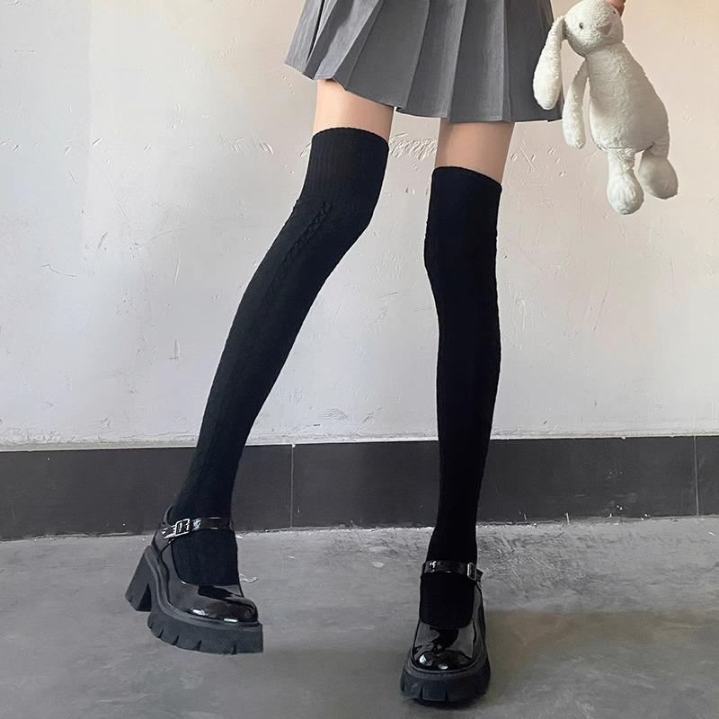 Milky White-knee socks, Beige-over-the-knee socks, Gray-over-the-knee socks, Black-knee socks, Milky White-cal...