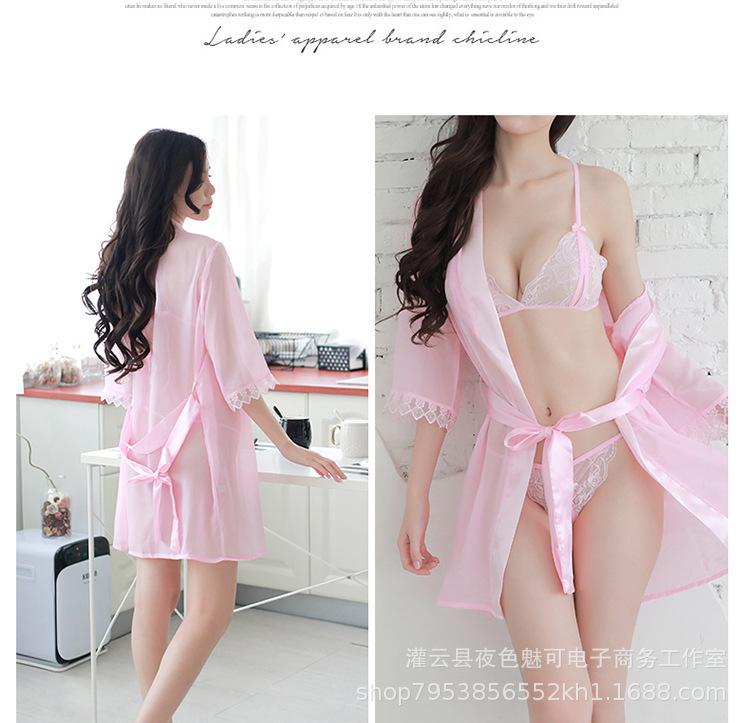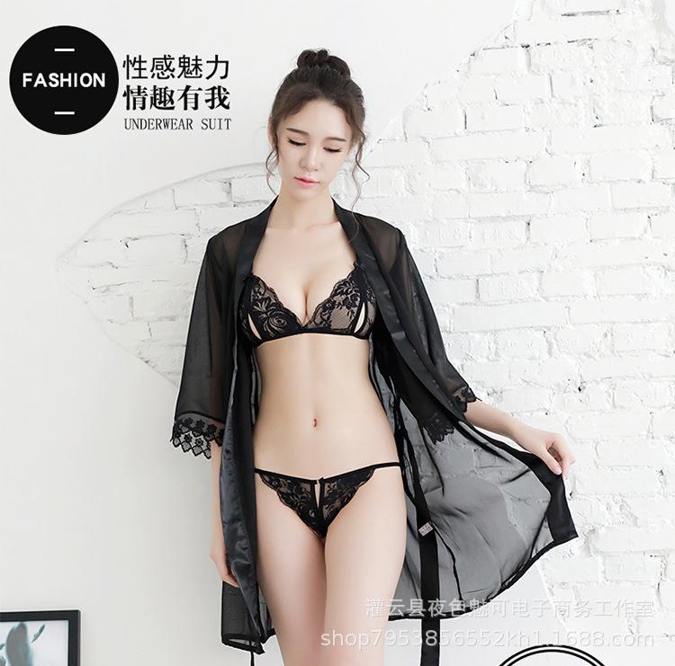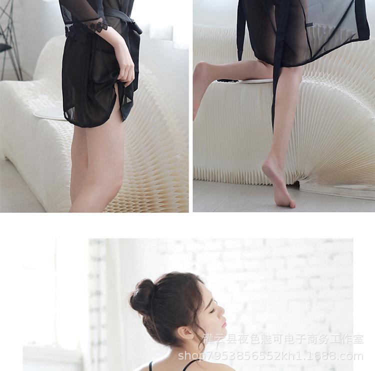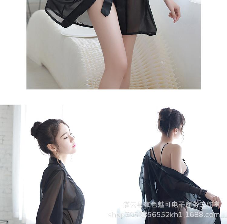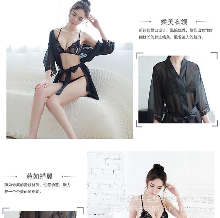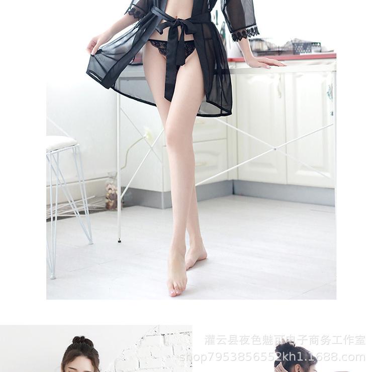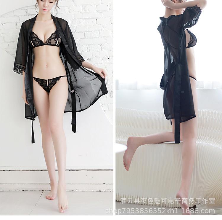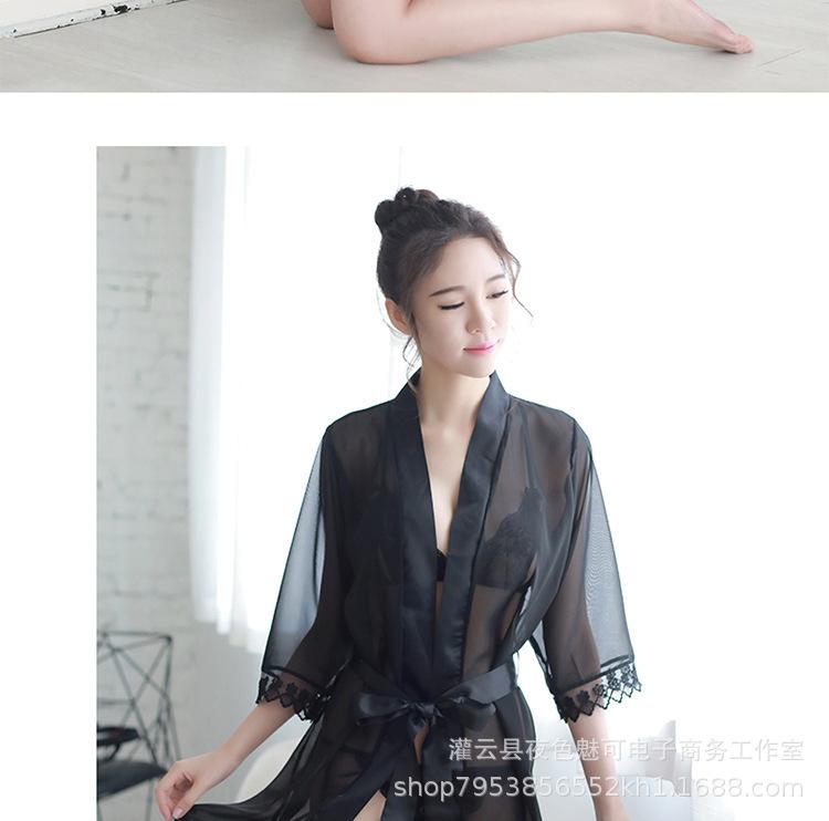 Ropa interior sexy perspectiva bata de baño sexy encaje gasa cárdigan conjunto caliente tentación pijamas comercio exterior al por mayor