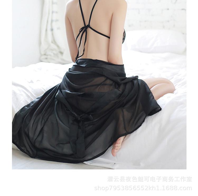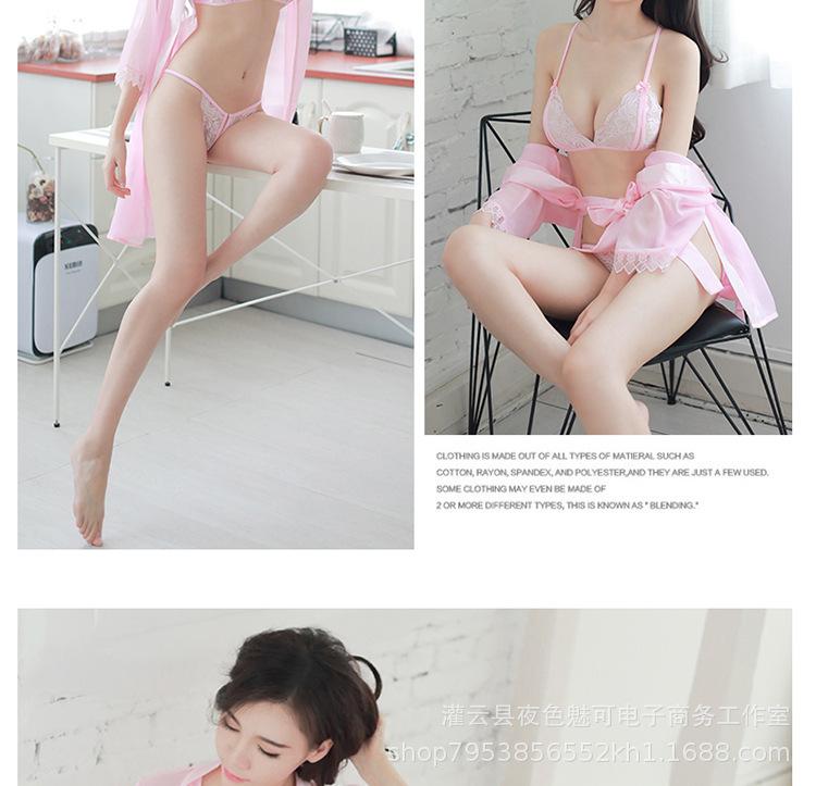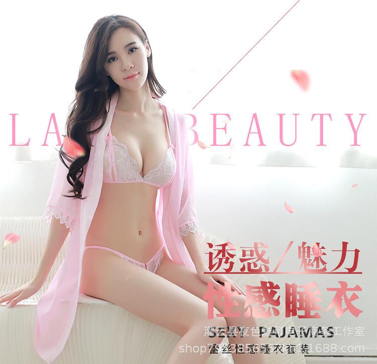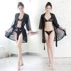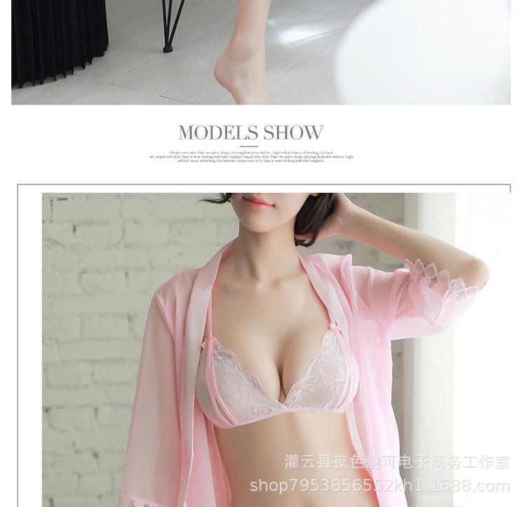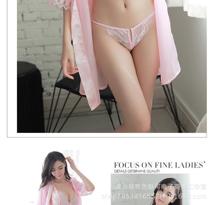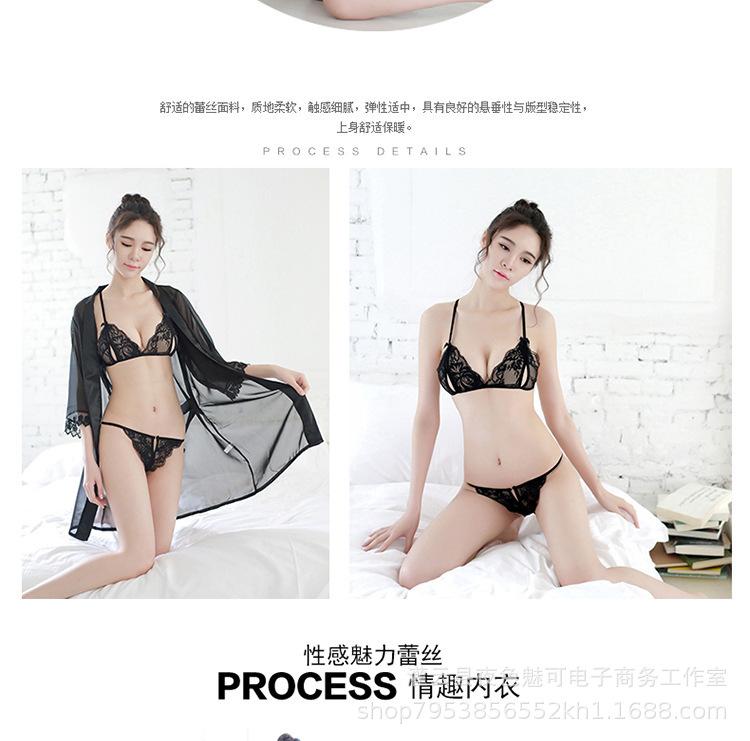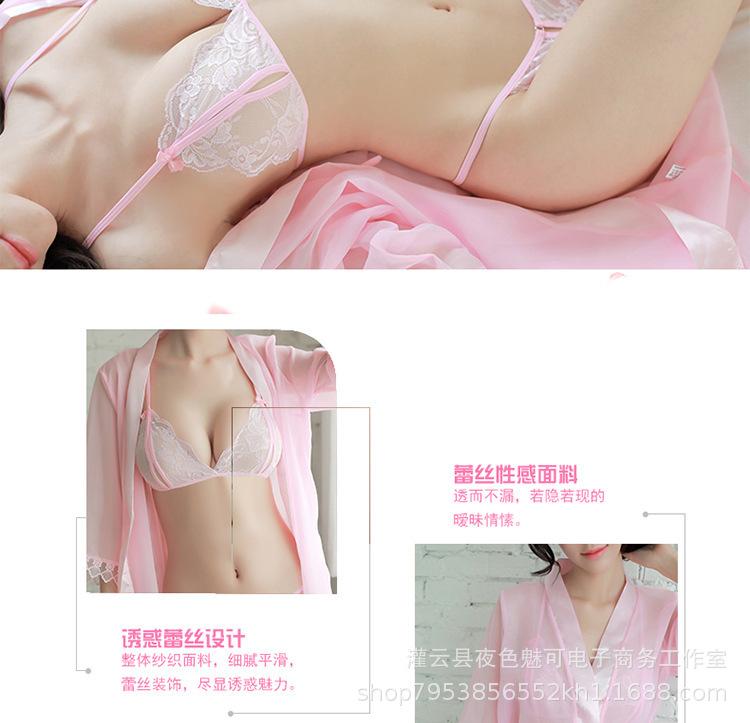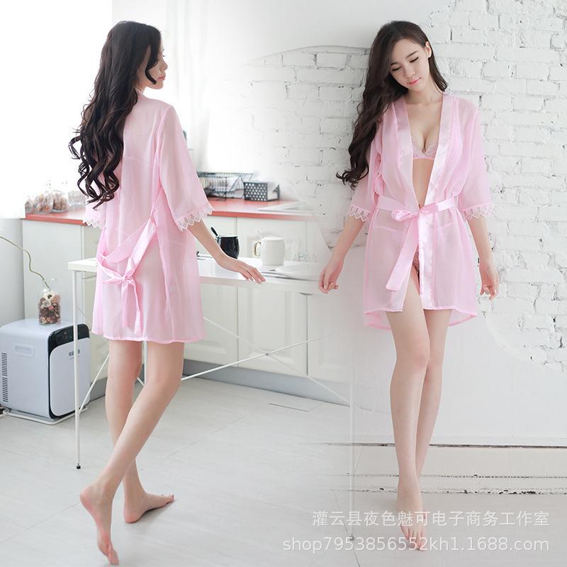 Ropa interior sexy perspectiva bata de baño sexy encaje gasa cárdigan conjunto caliente tentación pijamas comercio exterior al por mayor