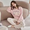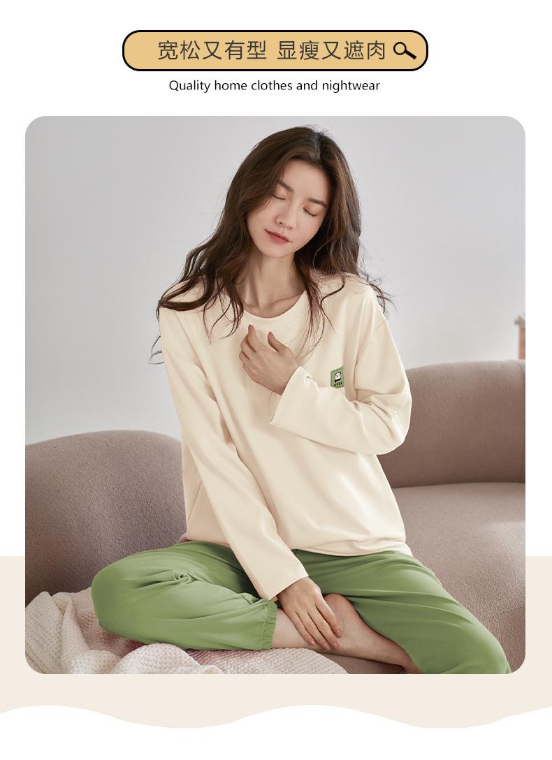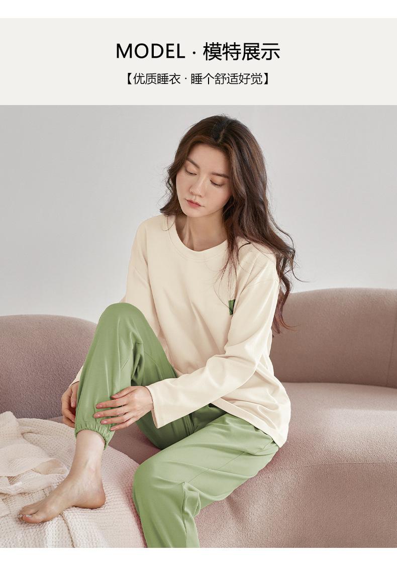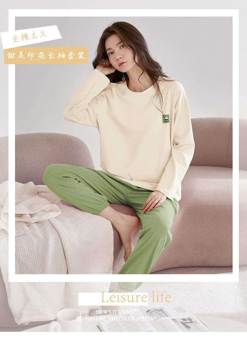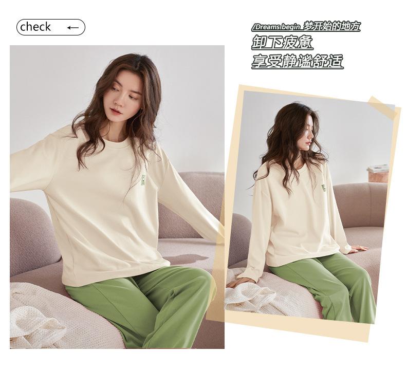 Tienda física Pijamas Mujer Primavera y Otoño Algodón Manga Larga Pantalones Sencillo Casual Cuello Redondo Recién Llegado Transmisión Ropa para el Hogar Traje