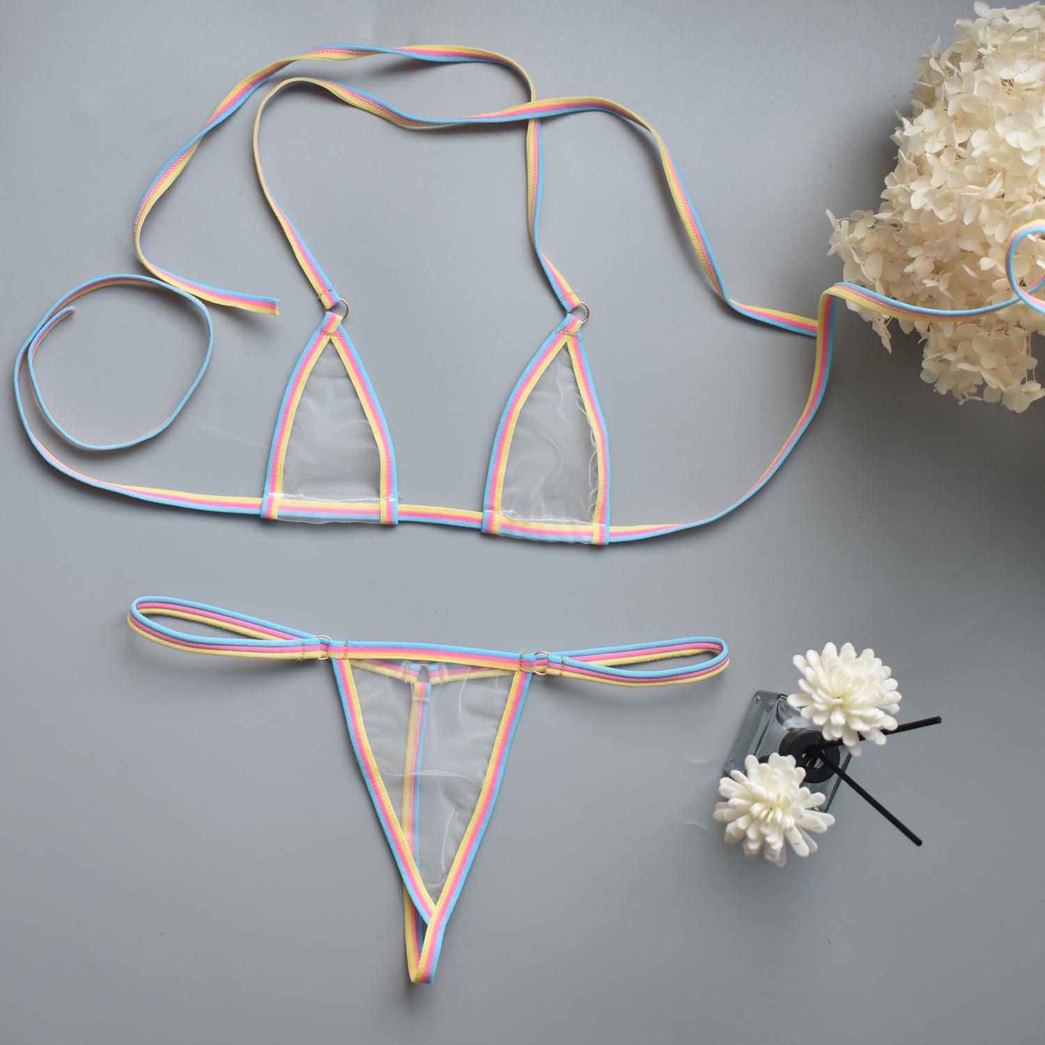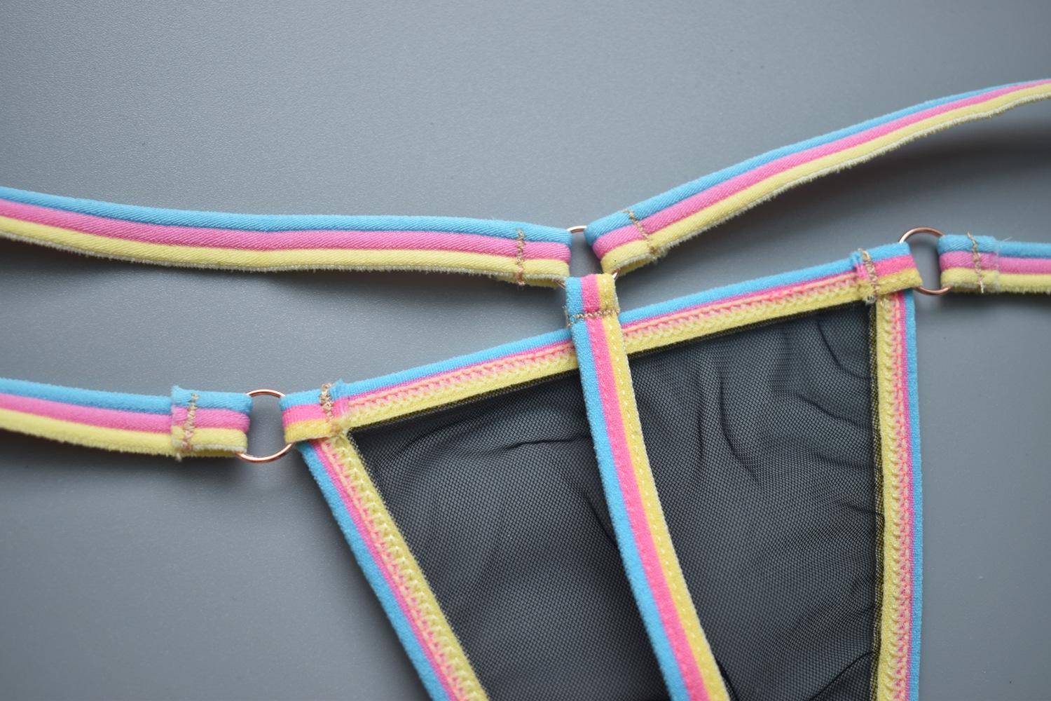 [Descripción] Malla súper transparente, bordes coloridos, tu estado de ánimo será tan alto como esta ropa interior colorida y la pretina tiene buena elasticidad.