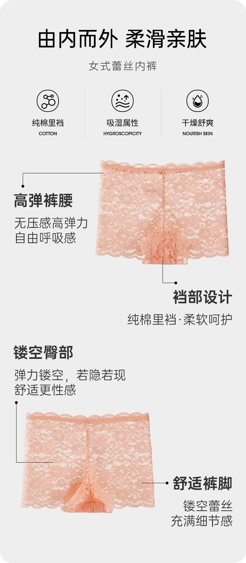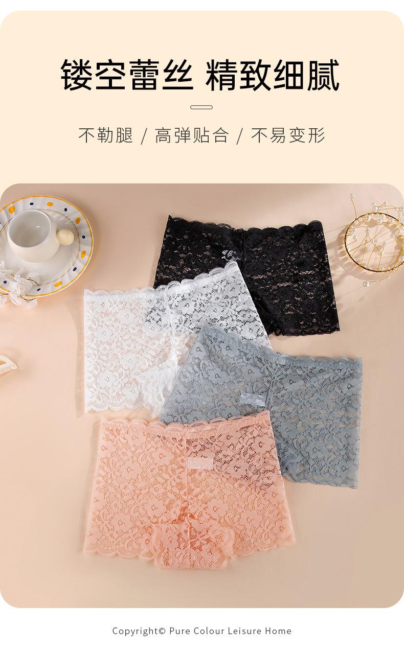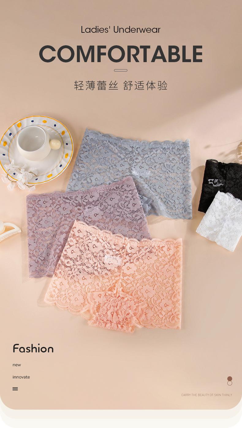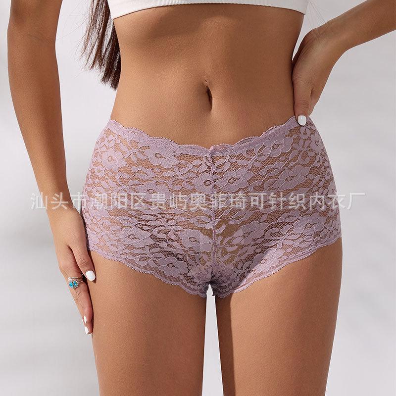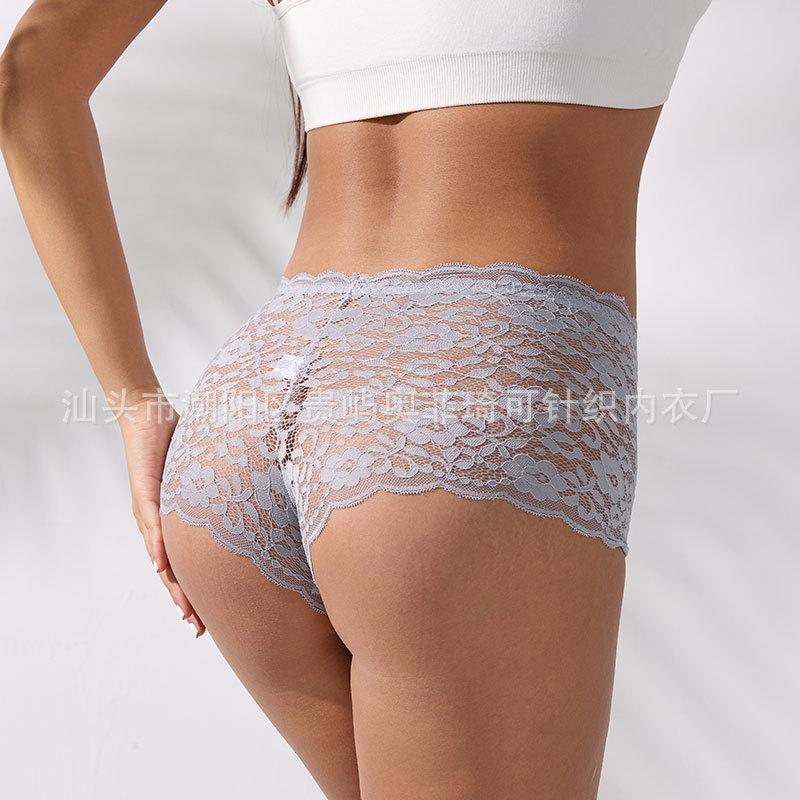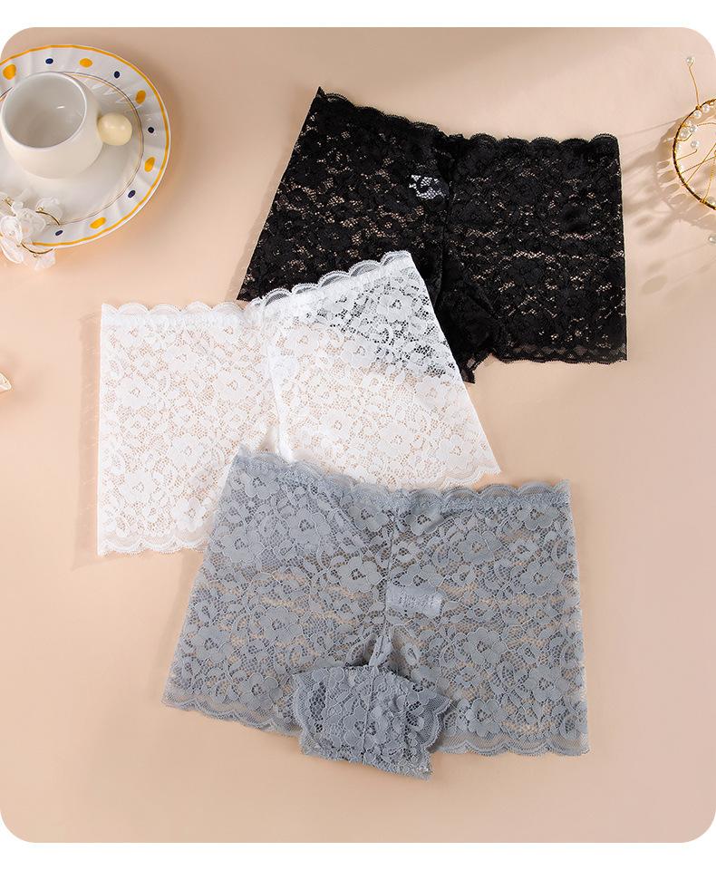Nuevos Bóxers para Mujer Hollow Temptation Ropa Interior Sexy de Encaje Europeo y Americano Cintura Media Cadera Transpirable Tallas Grandes Shorts