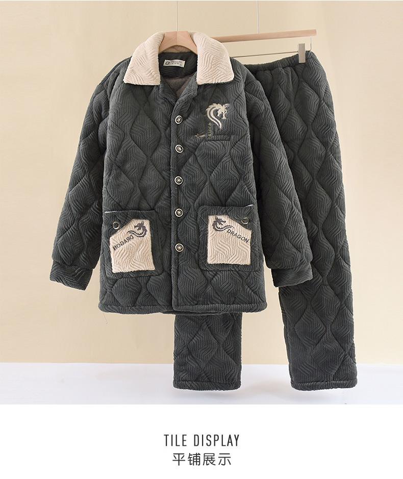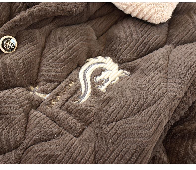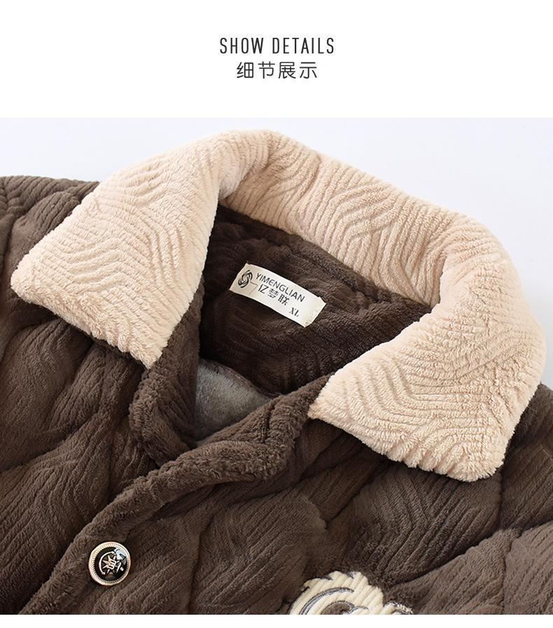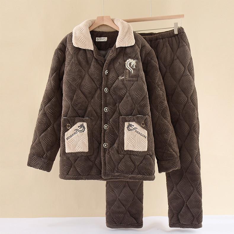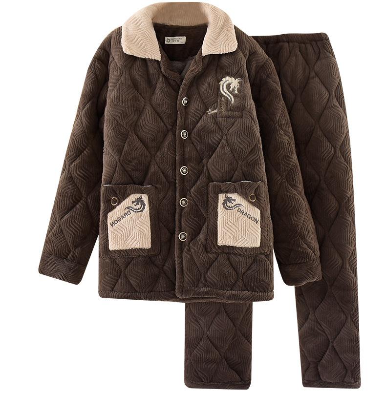 Pijamas de franela para hombre, otoño e invierno, forro polar grueso, acolchado de tres capas, cálido forro polar coral, ropa para el hogar, traje de talla grande
