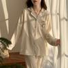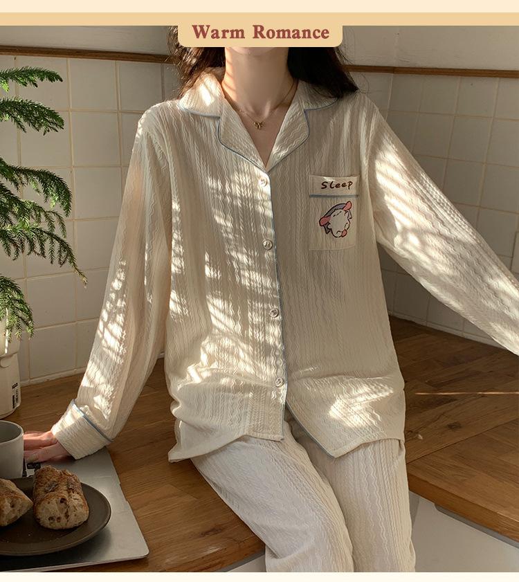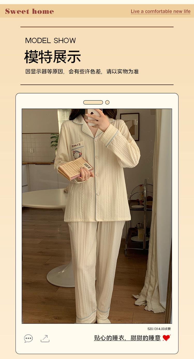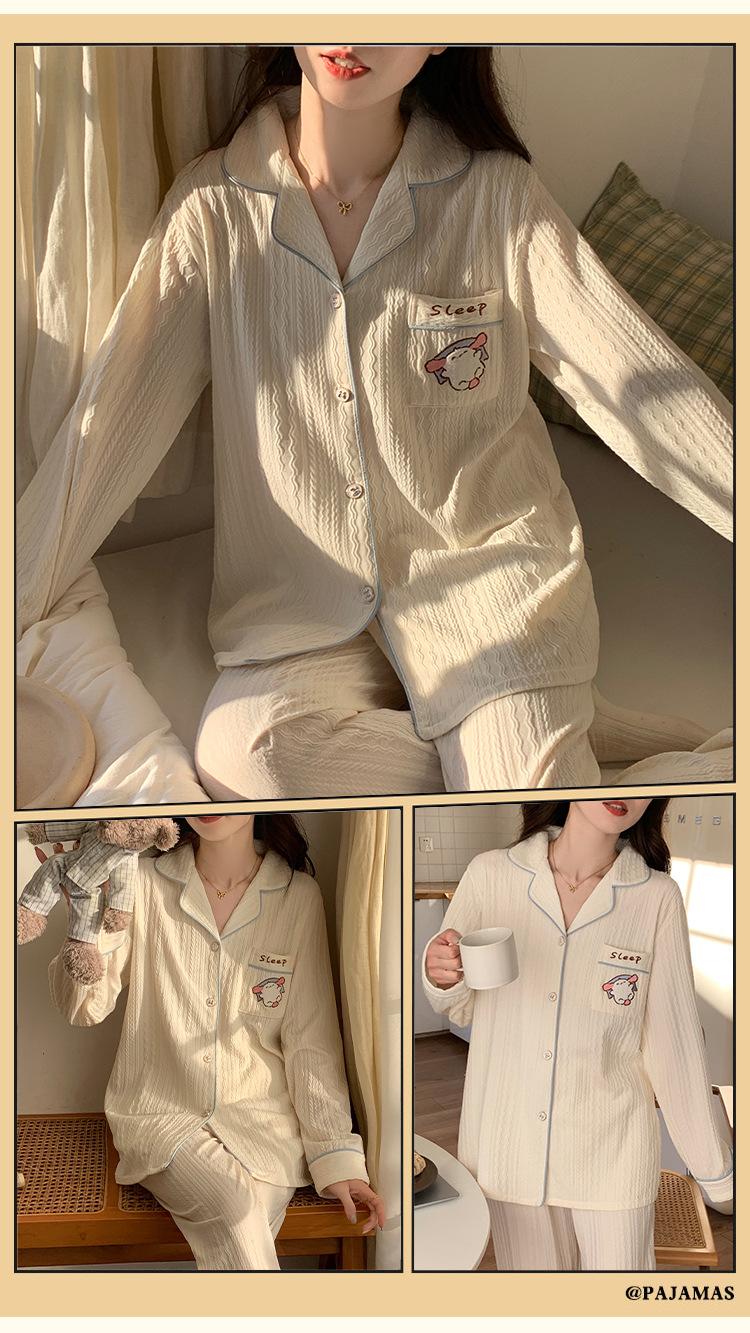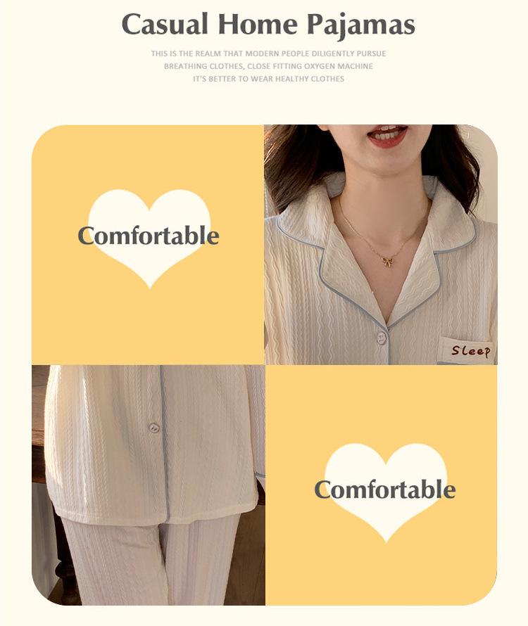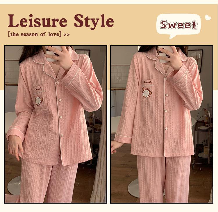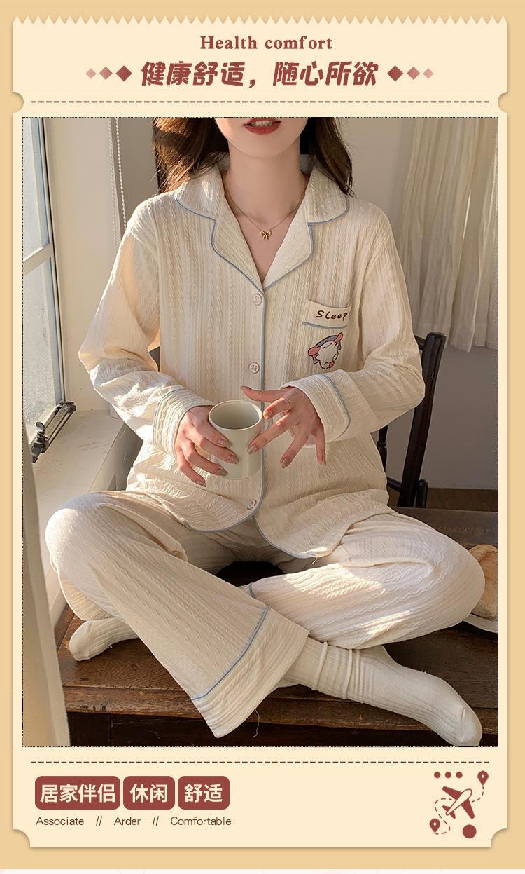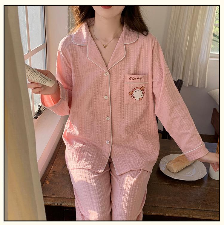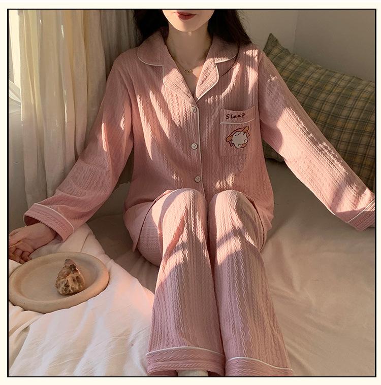 Pijamas de mujer otoño nuevo 6535 algodón jacquard manga larga estilo Chanel cárdigan estilo coreano dulce ropa informal para el hogar traje