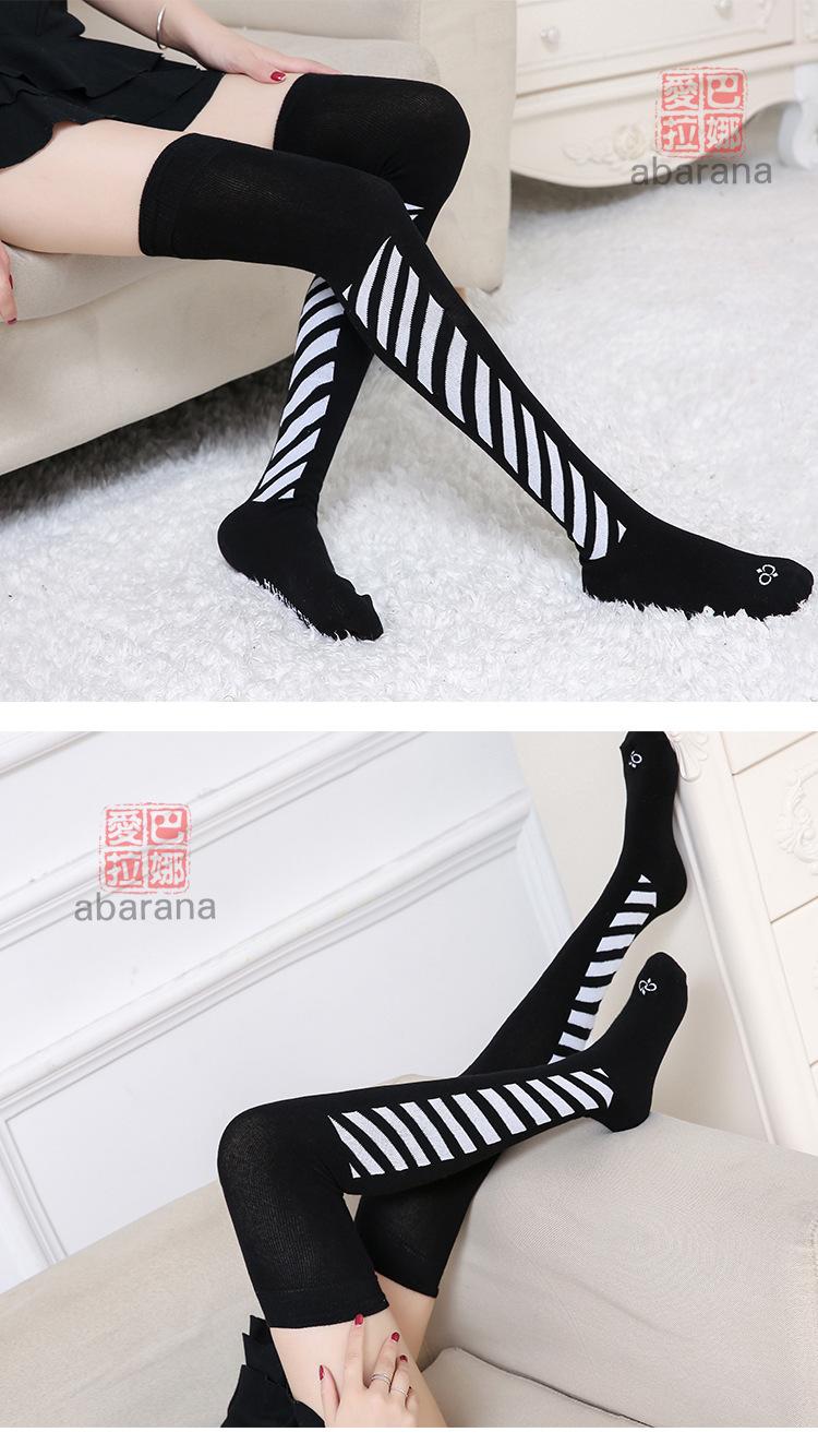 Calcetines a rayas por encima de la rodilla de otoño e invierno para mujeres estudiantes japonesas medias sobre la rodilla calcetines deportivos personalizados de punto hasta el muslo primavera y otoño al por mayor