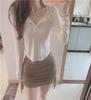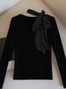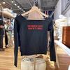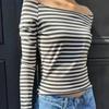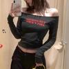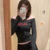 Camiseta de manga larga con cuello rizado negro estilo BM, estilo Spice Girl, corte entallado, sexy, con hombros descubiertos, para mujer.
