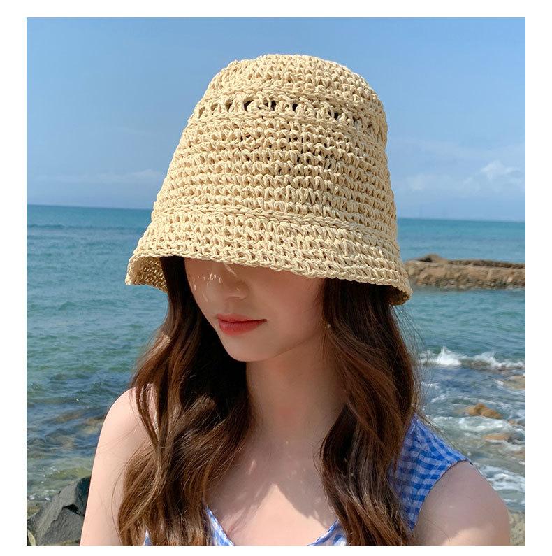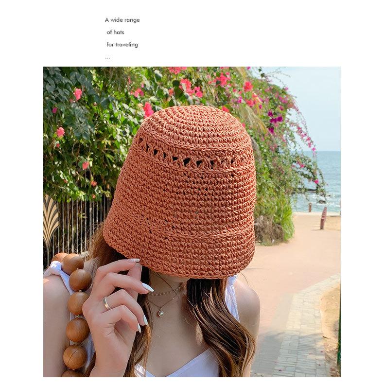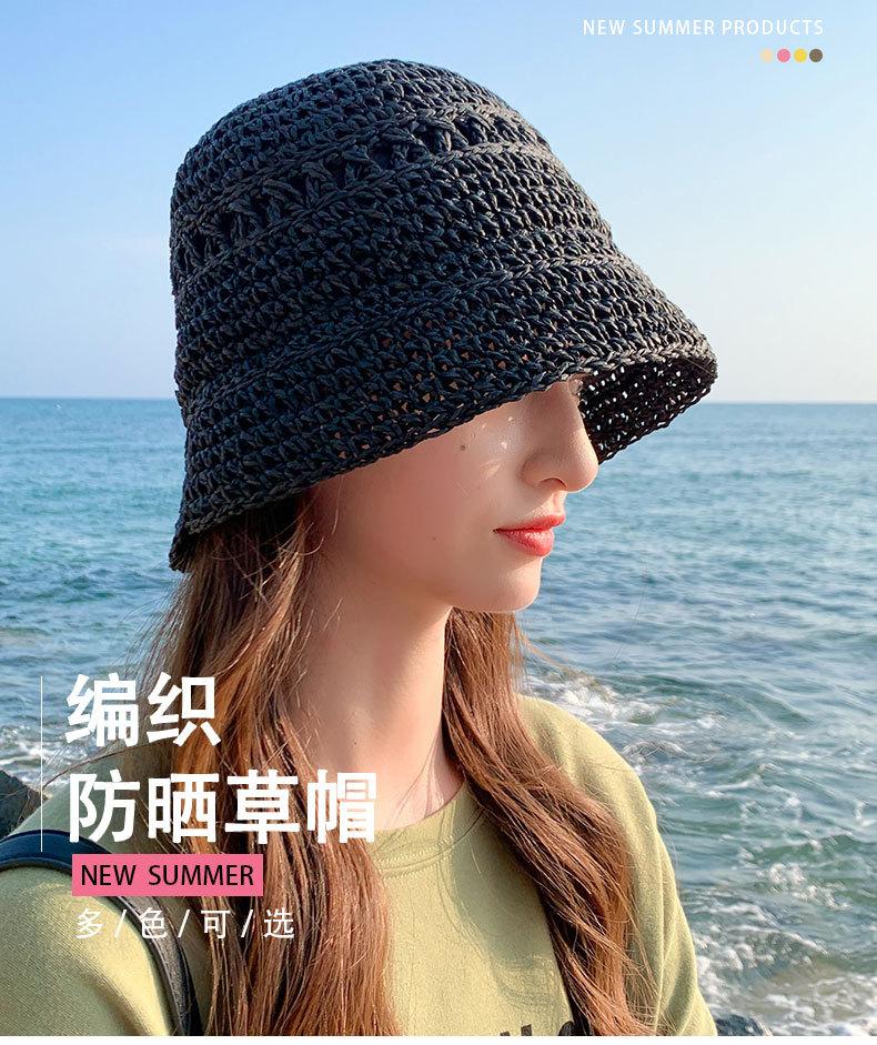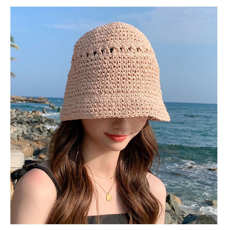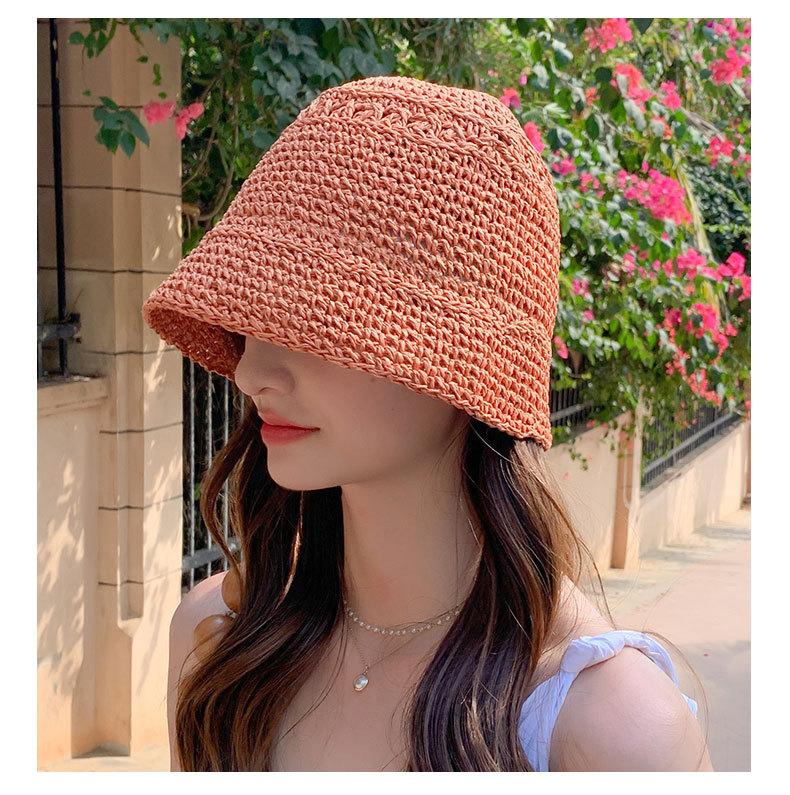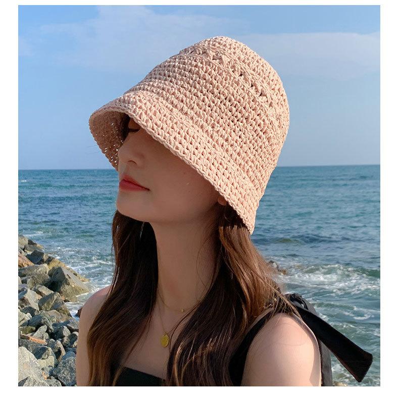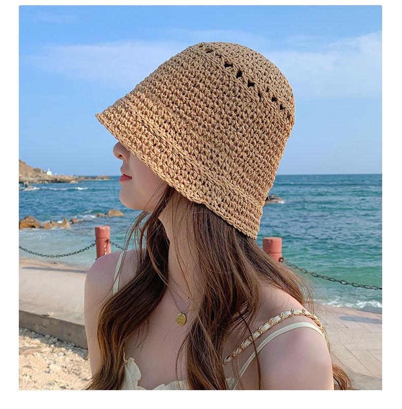 Sombrero de paja para mujer, sombrero de verano para protección solar, sombrero japonés para cubrir el rostro, sombrero pequeño tipo barril, sombrero de paja coreano tipo cubo, sombrero de pescador al por mayor