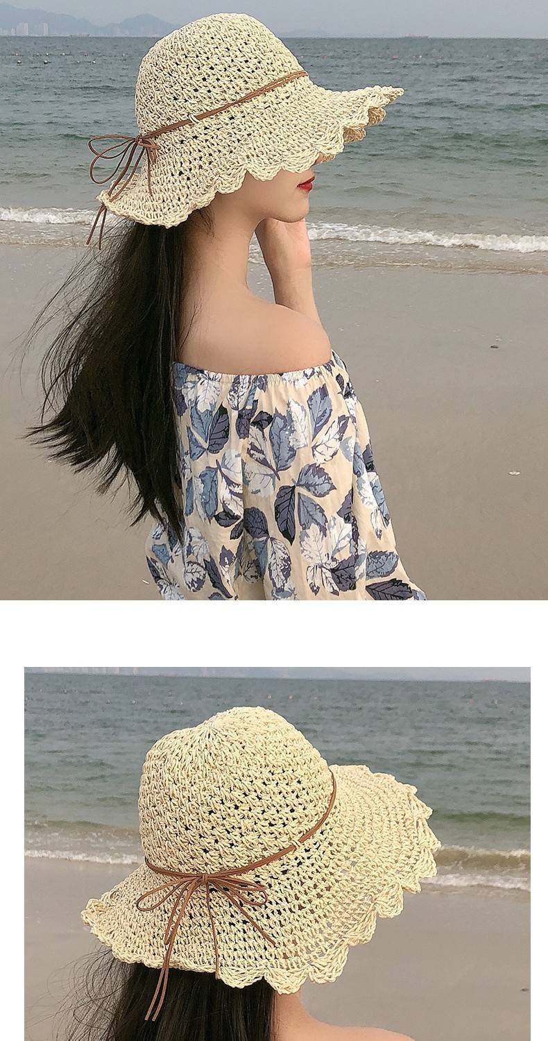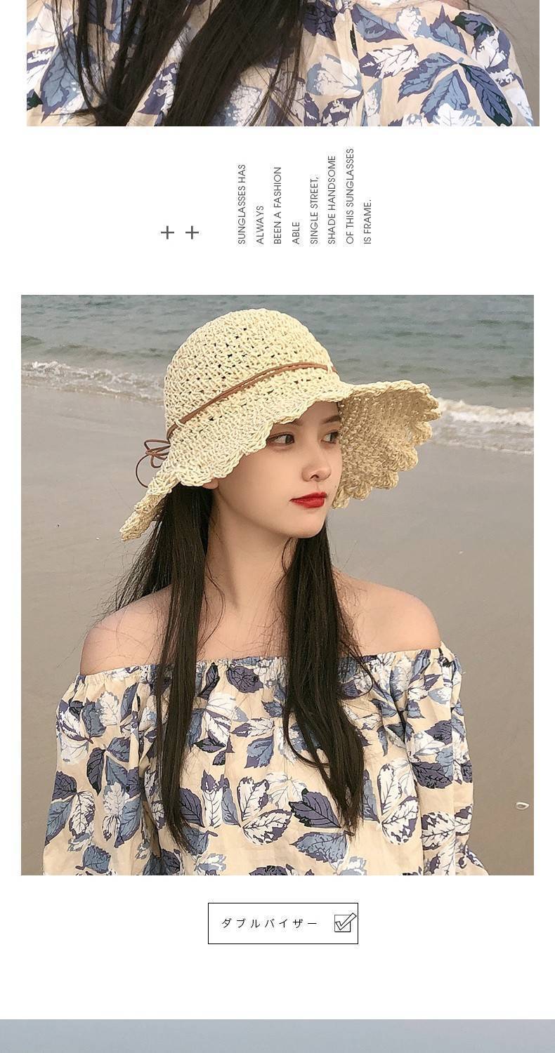 Sombrero de Paja con Lazo para Mujer Sombrero de Playa Plegable Fresco de Verano Sombrero para la Playa Sombrero para el Sol con Visera para Mujer