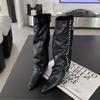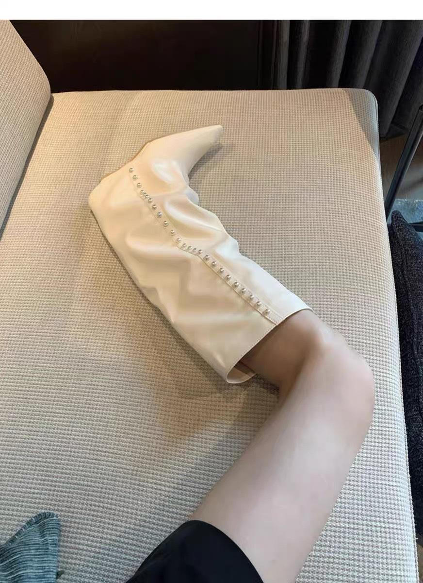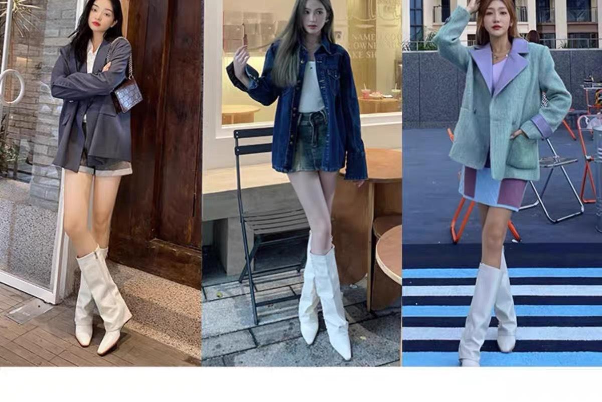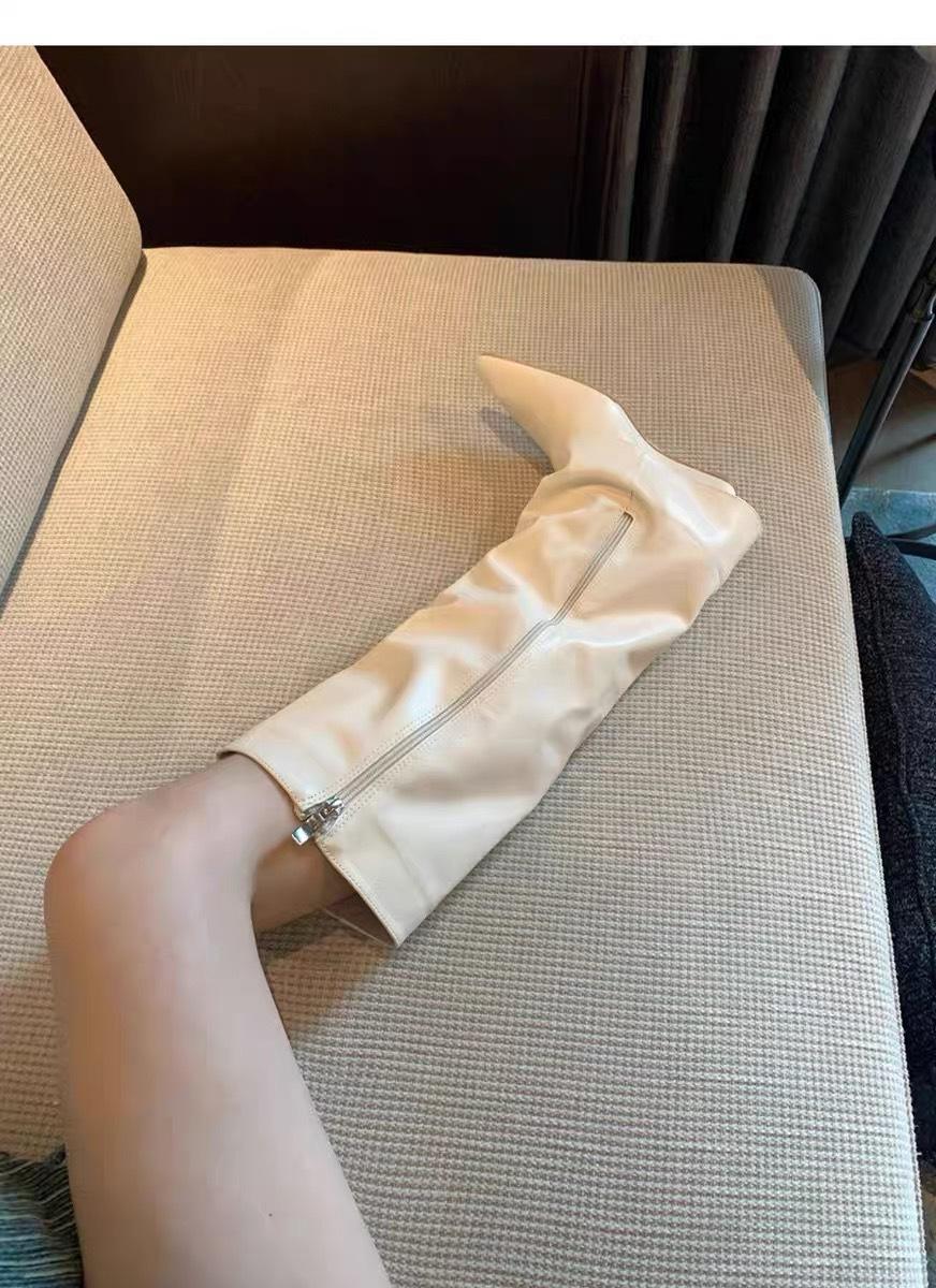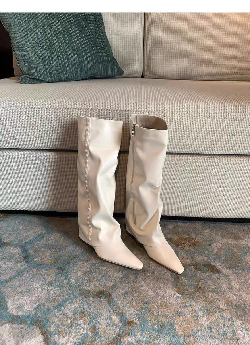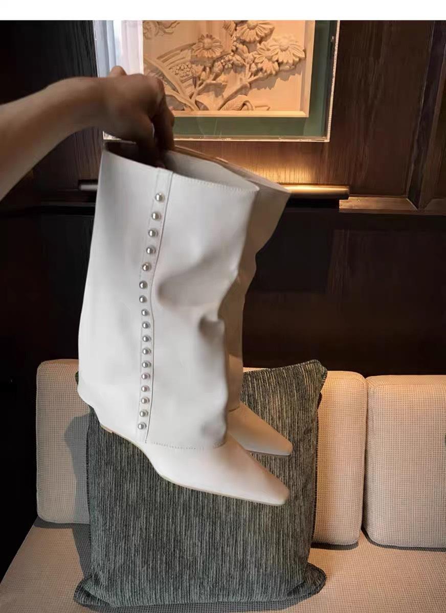 ¡Muestra tus piernas más delgadas! Botas Pantalón Blancas Nuevas Populares Gruesas mm Punta Puntiaguda Cuña Botas Altas sobre la Rodilla para Mujer