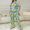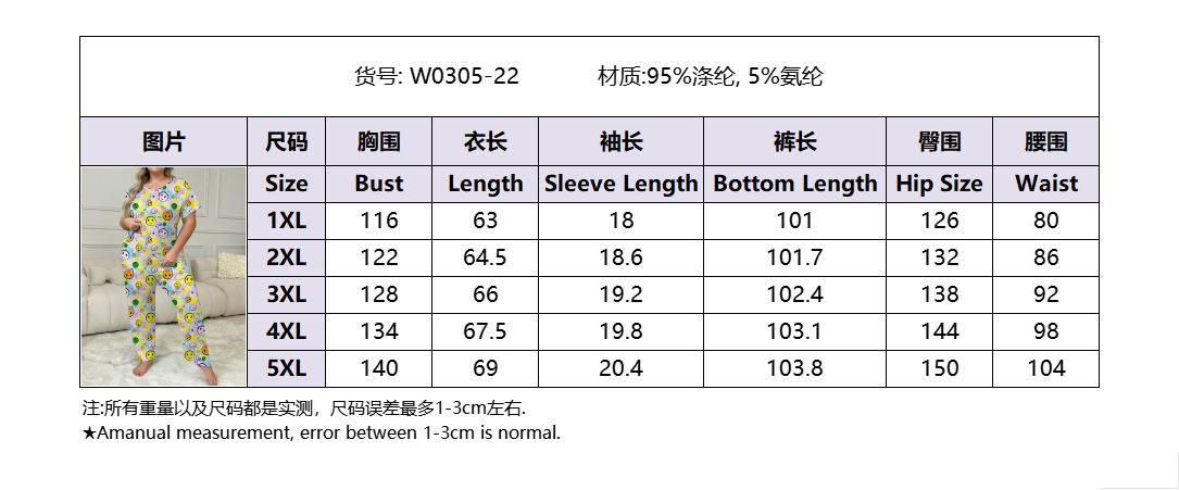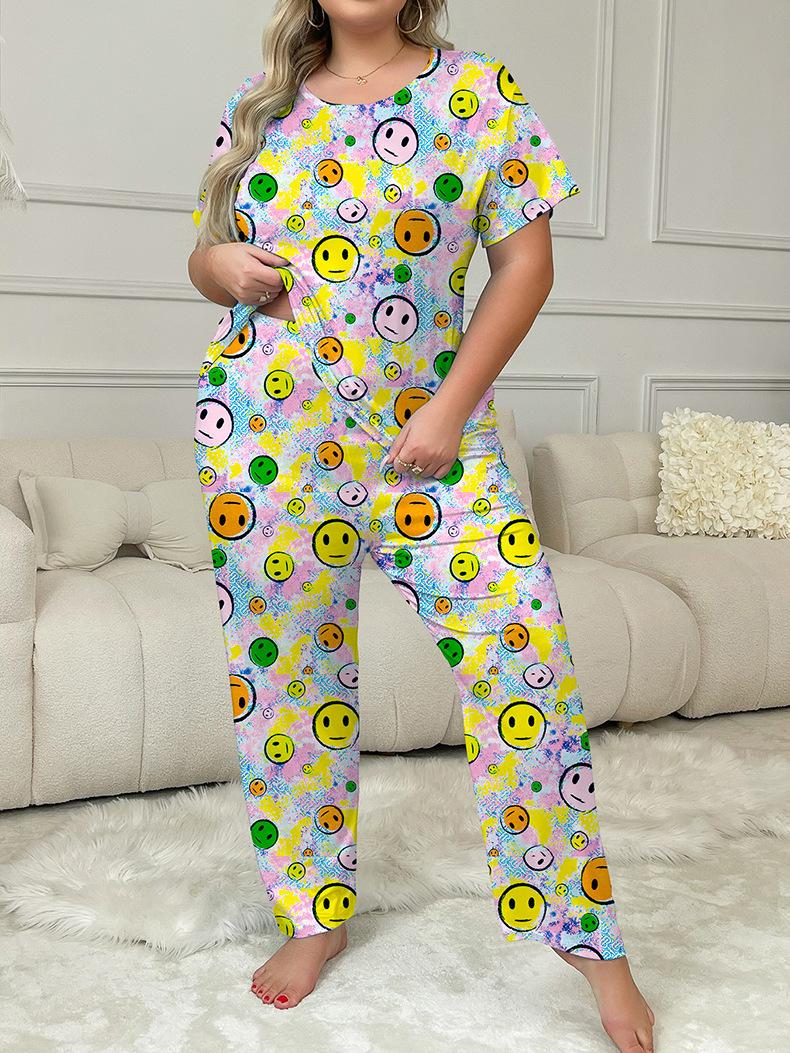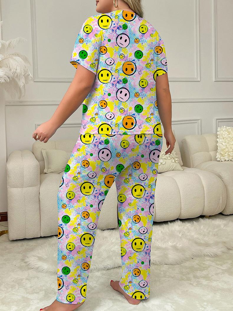 Europa y Estados Unidos transfronterizos 2024 nuevo traje de pantalón de manga corta con estampado de cara sonriente puede usar ropa de casa de mujer pijamas de talla grande