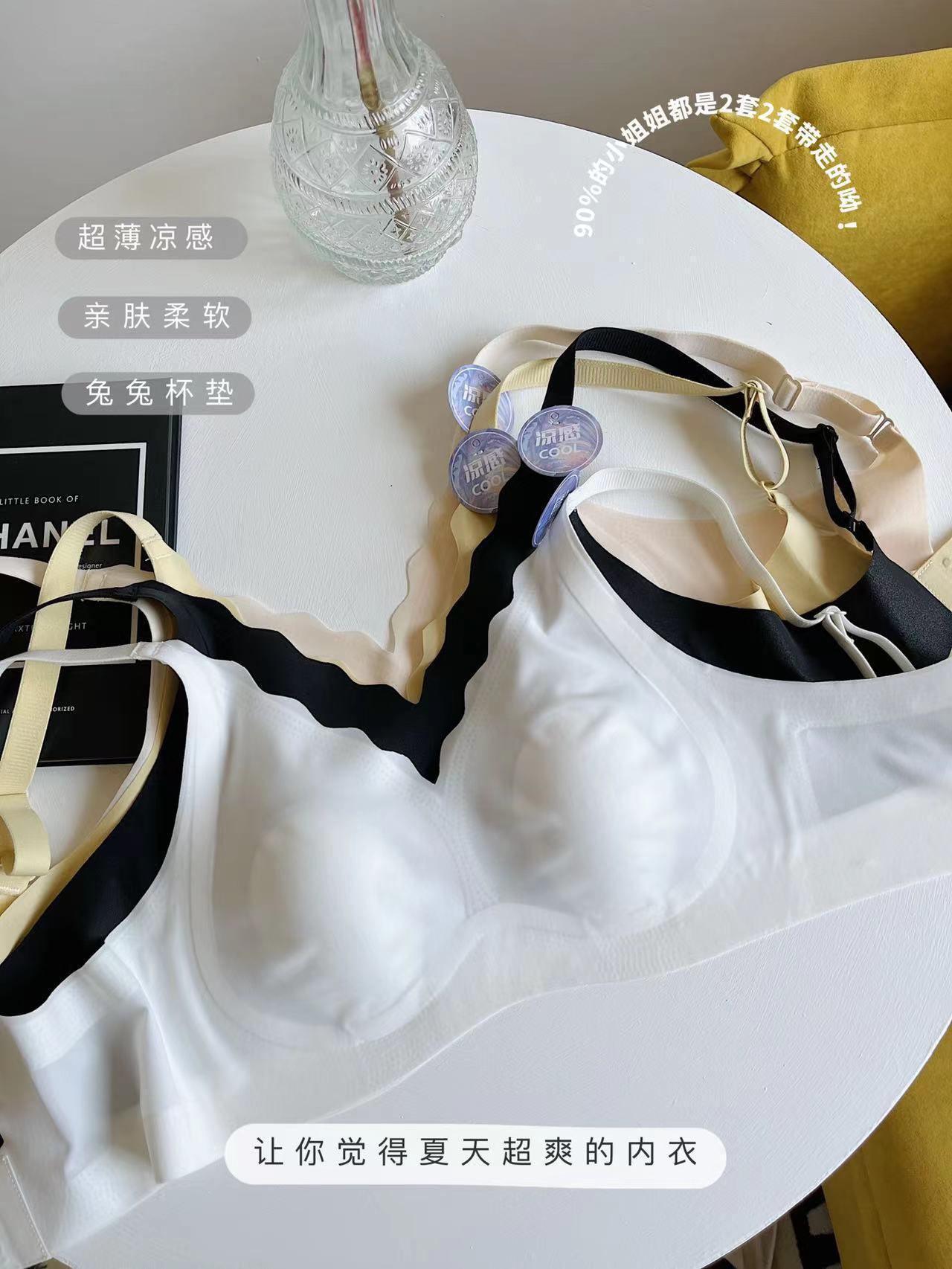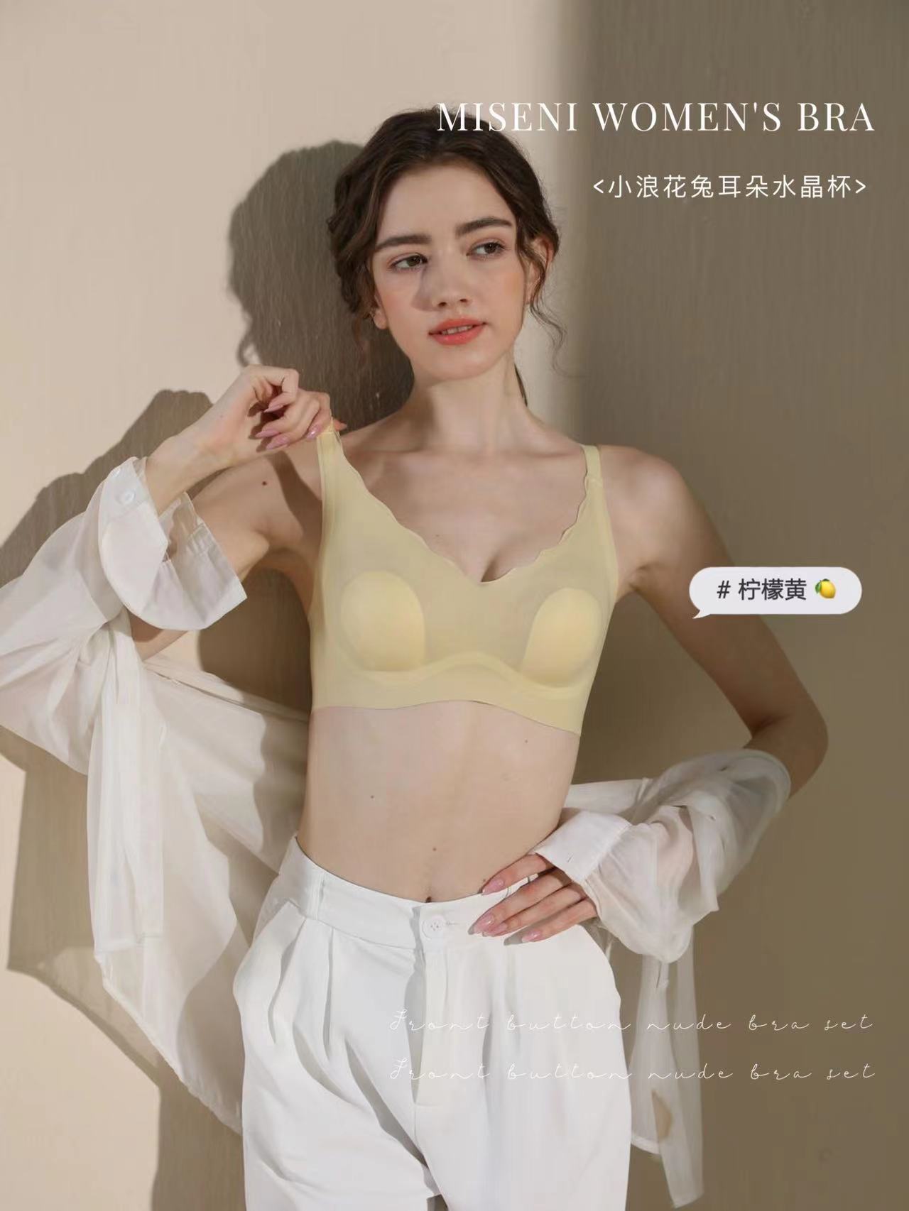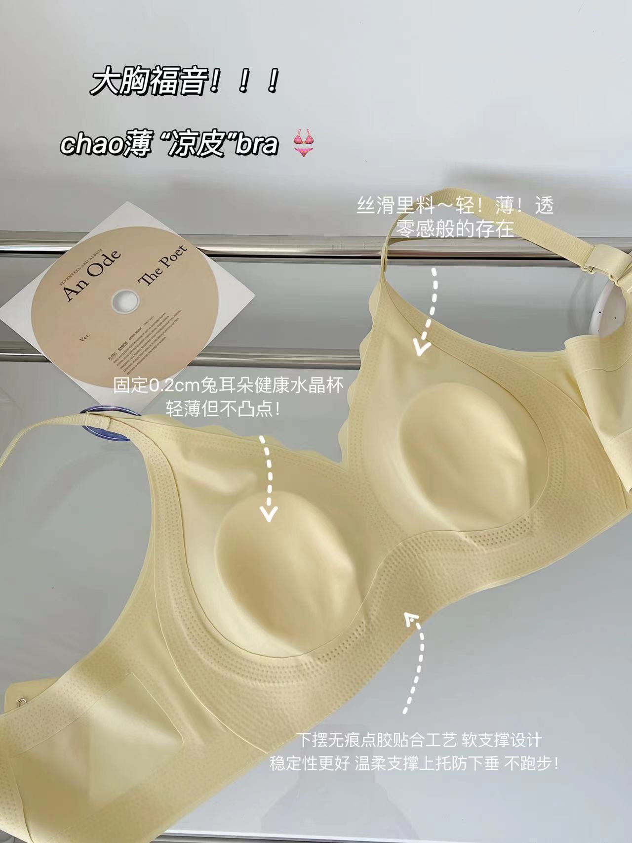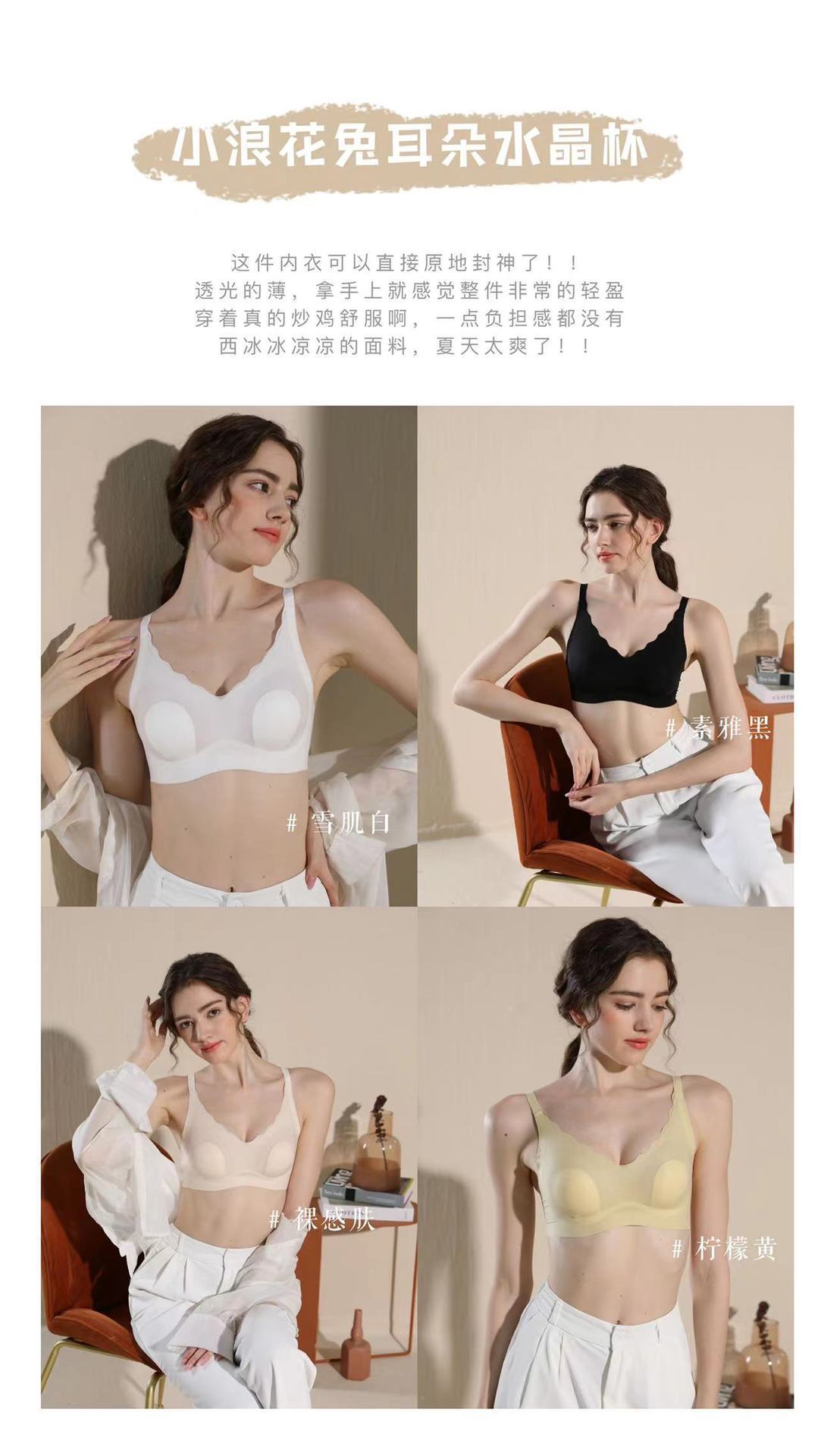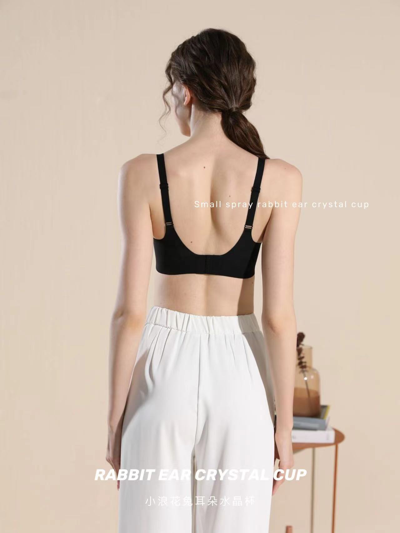 Sujetador de tiras ligero, cómodo y transpirable con copas de cristal y orejas de conejo para mujer.