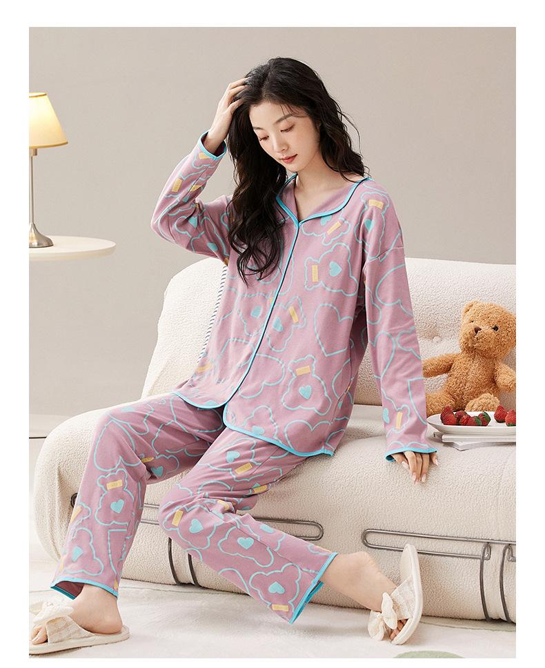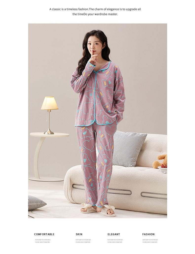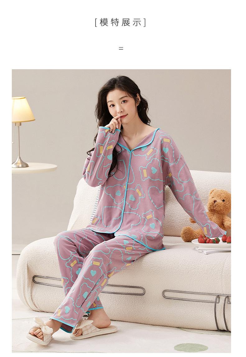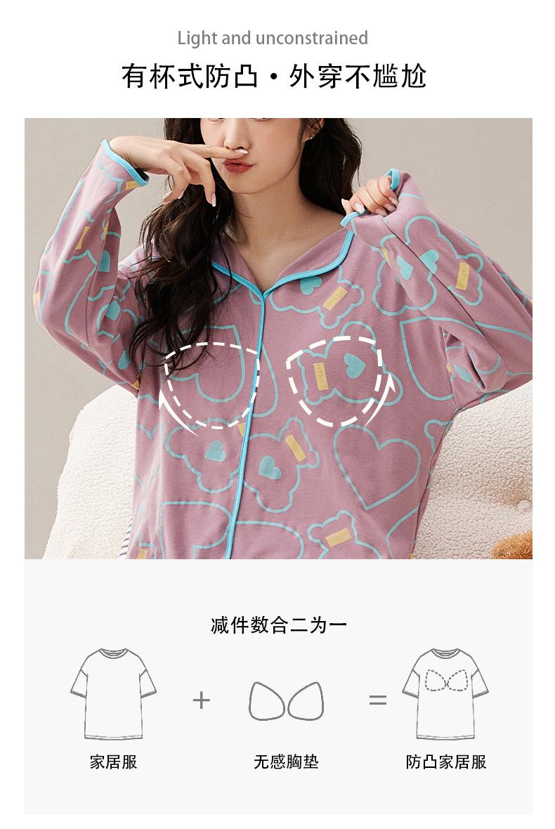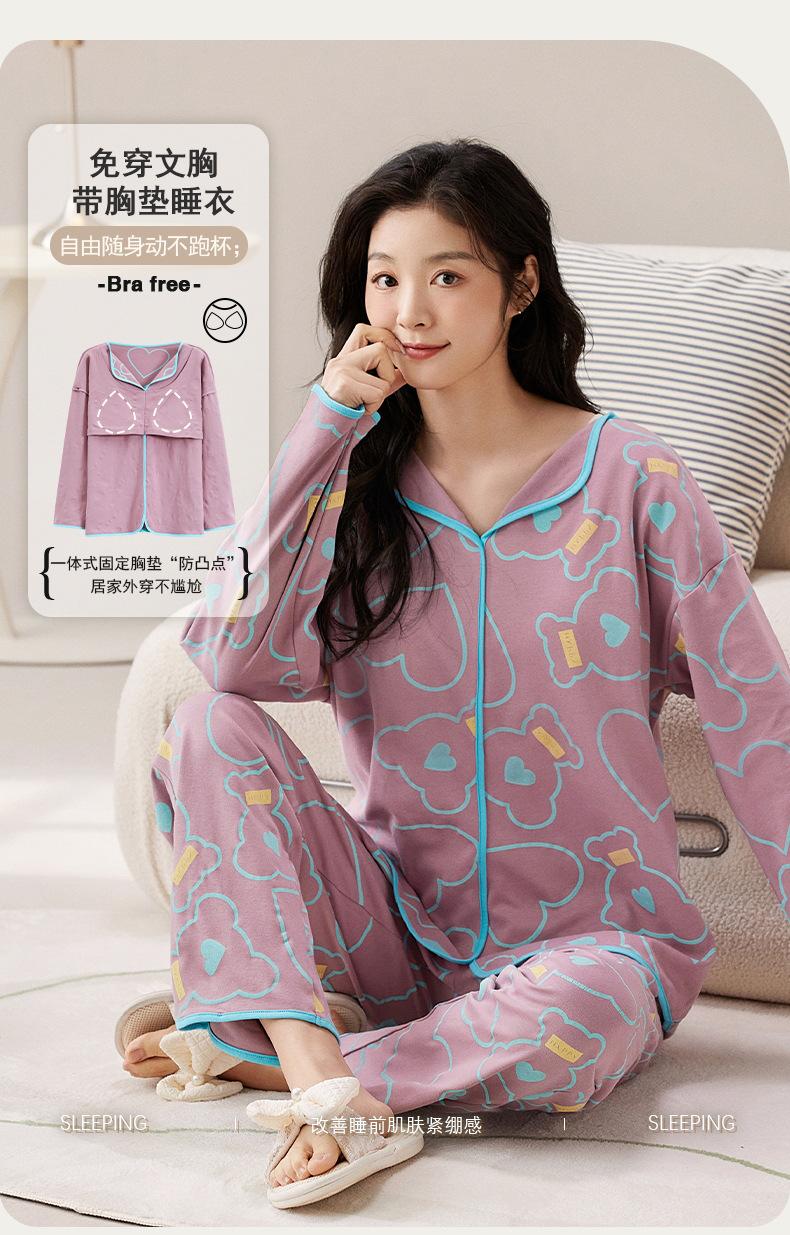 Pijamas de mujer de primavera y otoño 6535, ropa informal de manga larga para el hogar, traje juvenil de otoño, cárdigan con tirantes finos y almohadilla para el pecho.