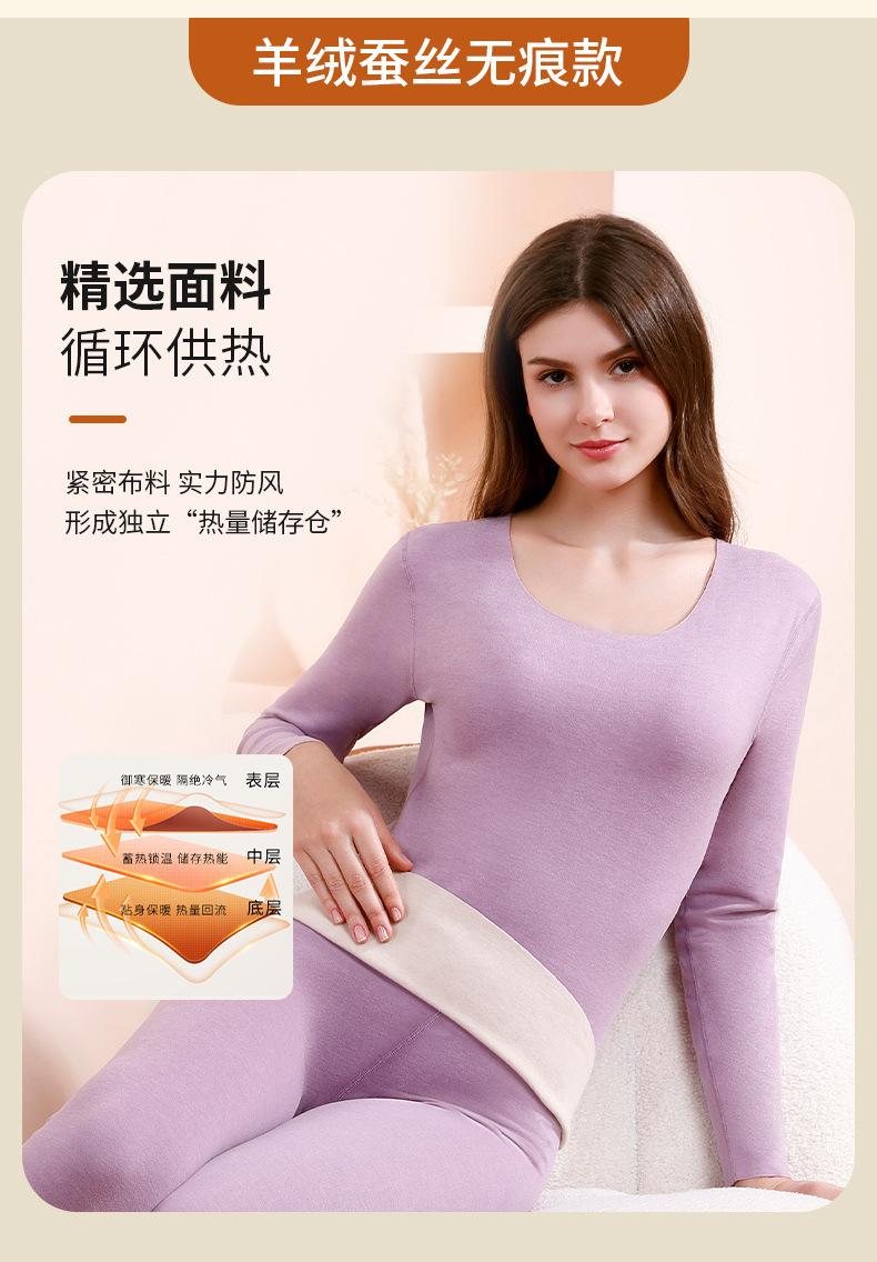 Traje de ropa interior térmica de seda de cachemira para mujer, invierno, fondo de terciopelo sin costuras con calefacción, ropa de otoño, pantalones largos, ropa cálida para hombre