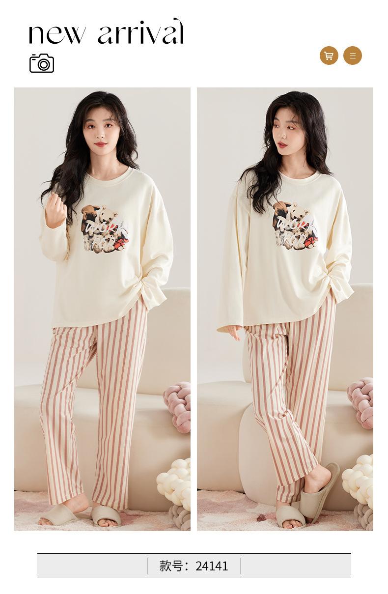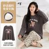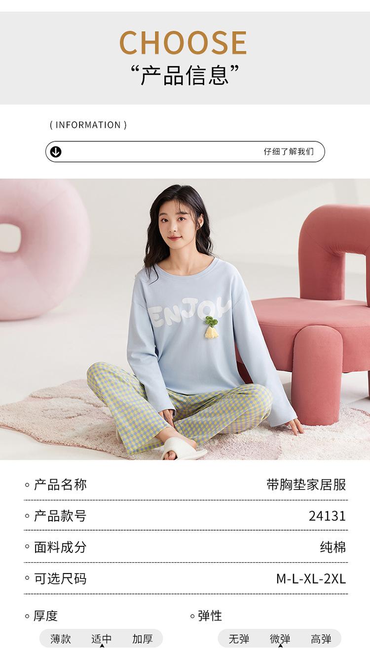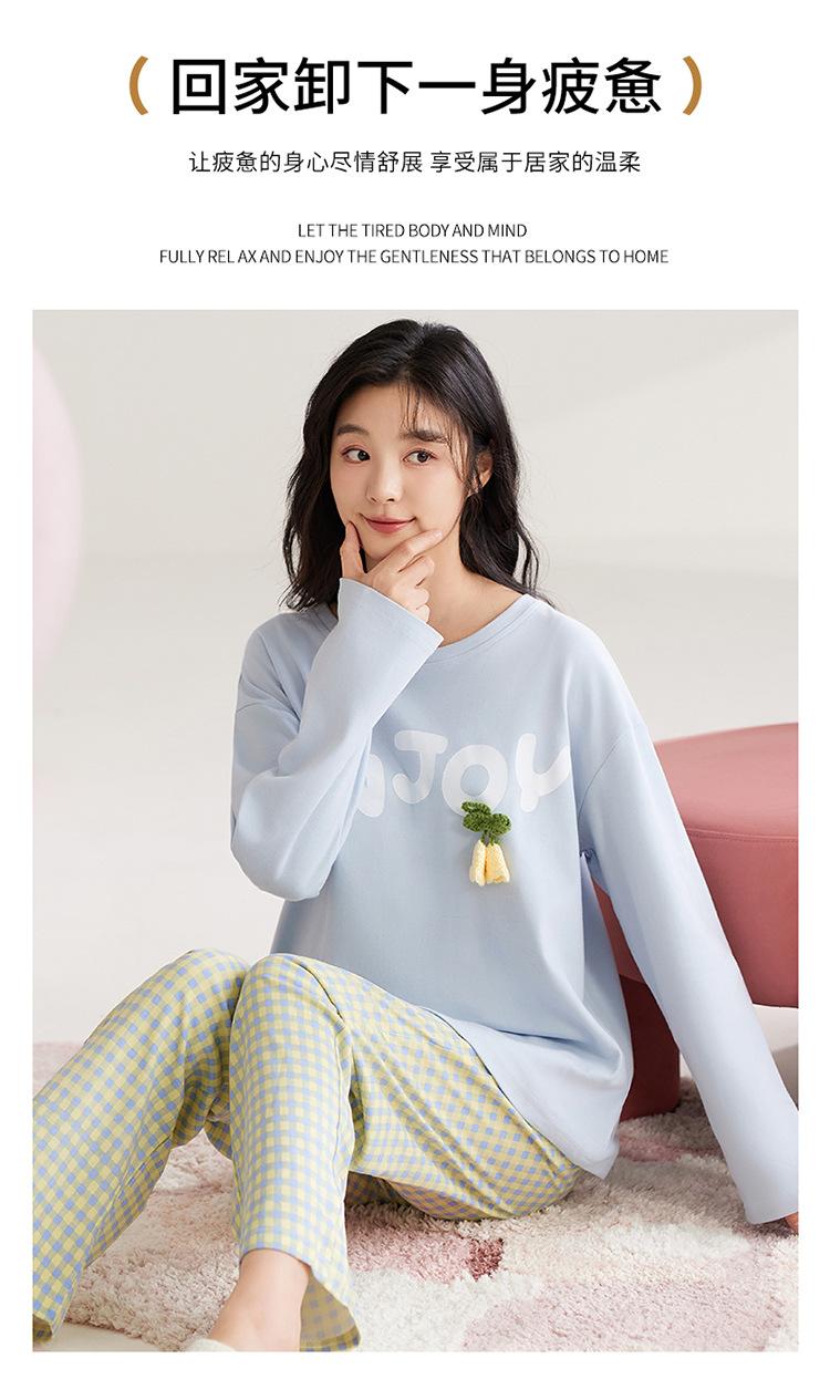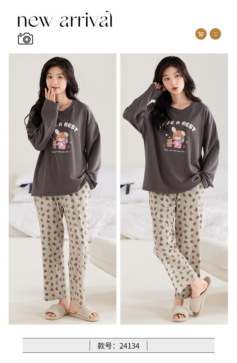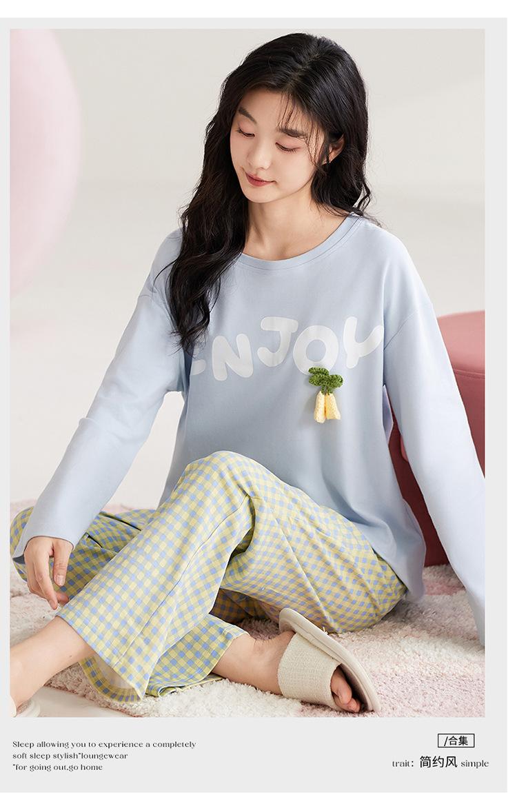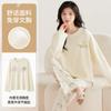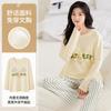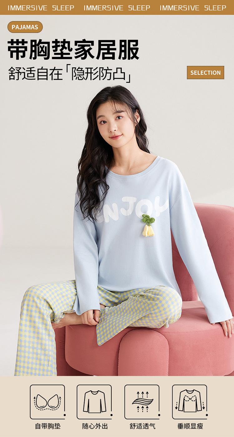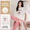 Pijamas para mujer de primavera y otoño con almohadilla para el pecho, manga larga, finos, letras de dibujos animados, prendas de vestir exteriores, pantalones de otoño, ropa de casa, traje
