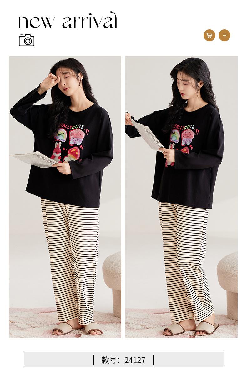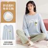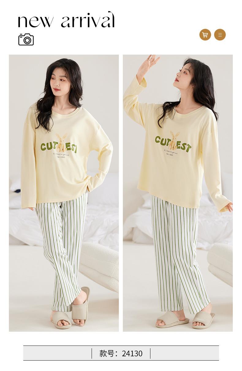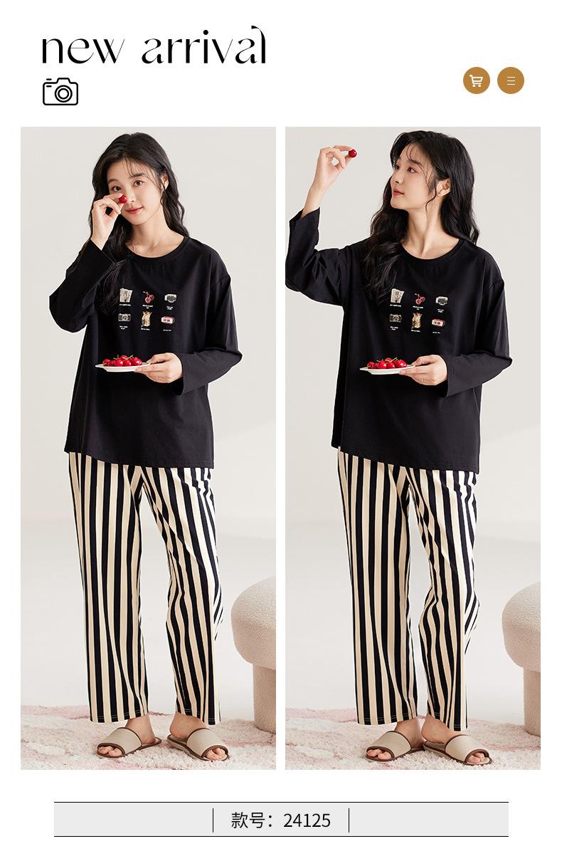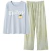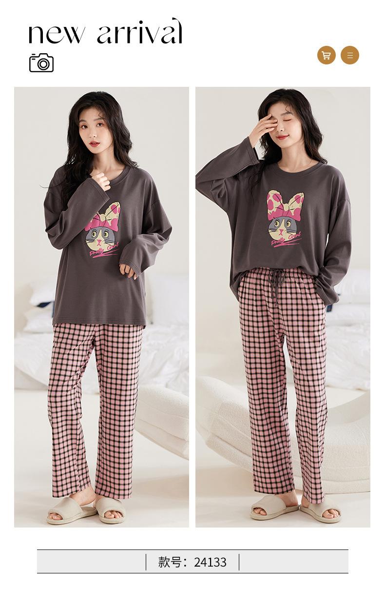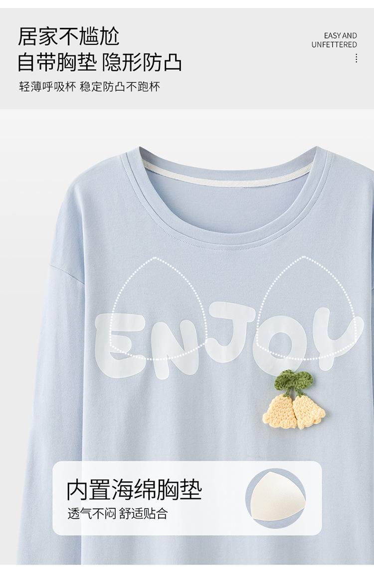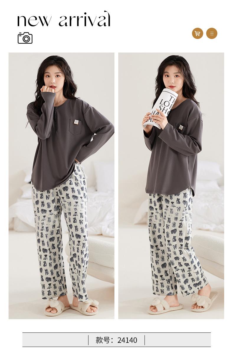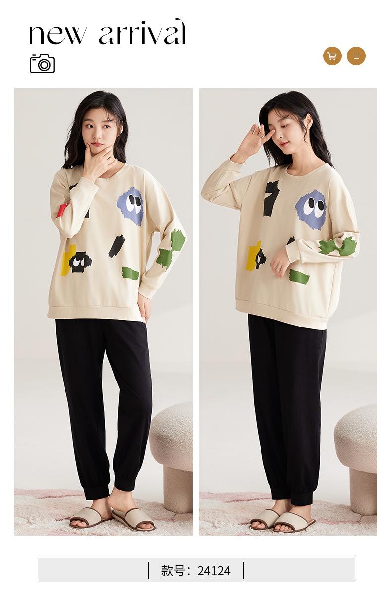 Pijamas para mujer de primavera y otoño con almohadilla para el pecho, manga larga, finos, letras de dibujos animados, prendas de vestir exteriores, pantalones de otoño, ropa de casa, traje