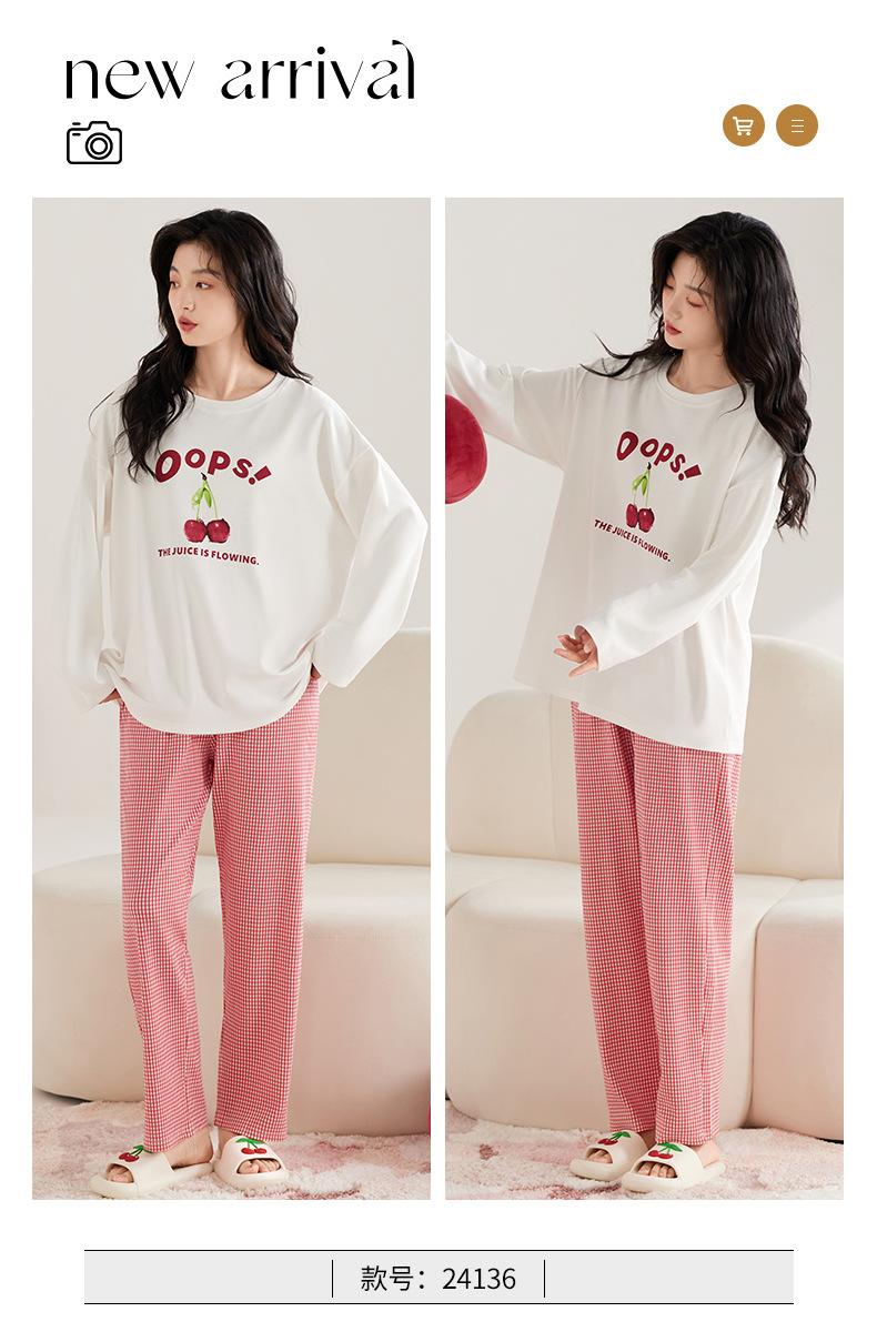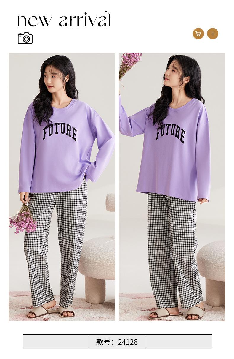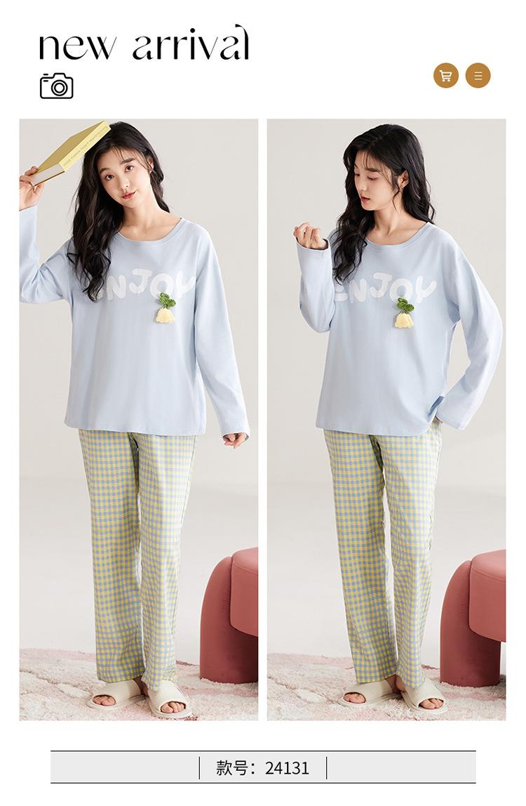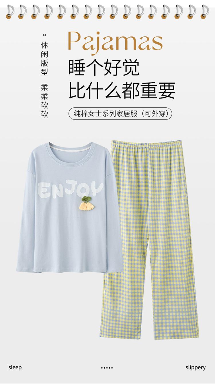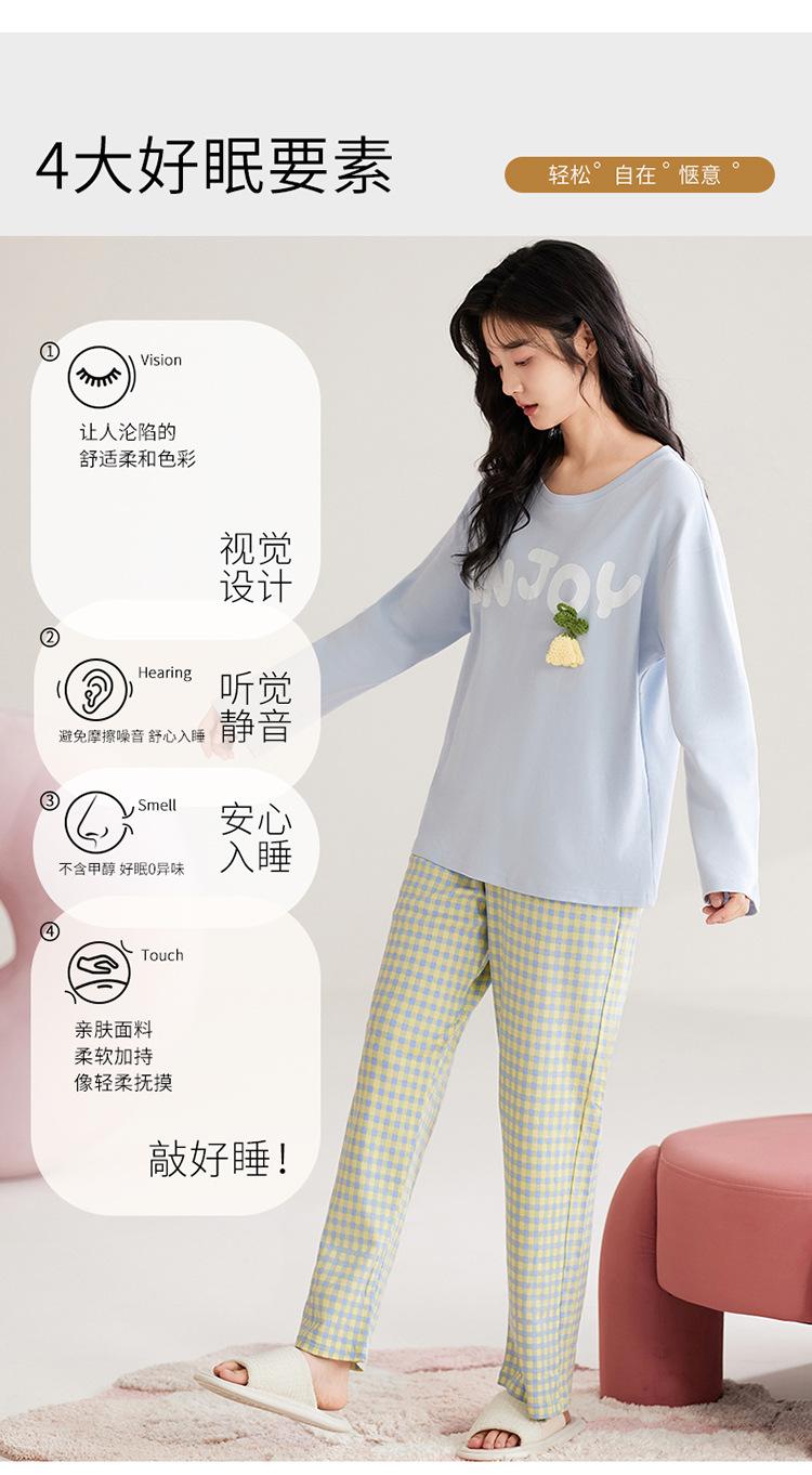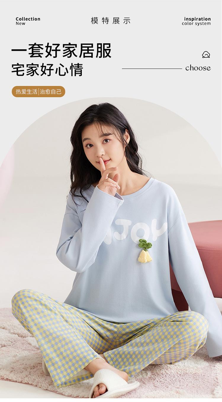 Pijamas para mujer de primavera y otoño con almohadilla para el pecho, manga larga, finos, letras de dibujos animados, prendas de vestir exteriores, pantalones de otoño, ropa de casa, traje