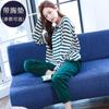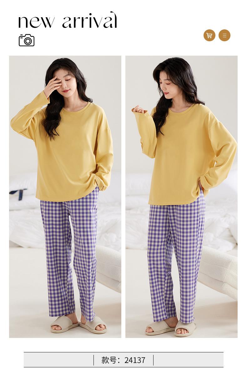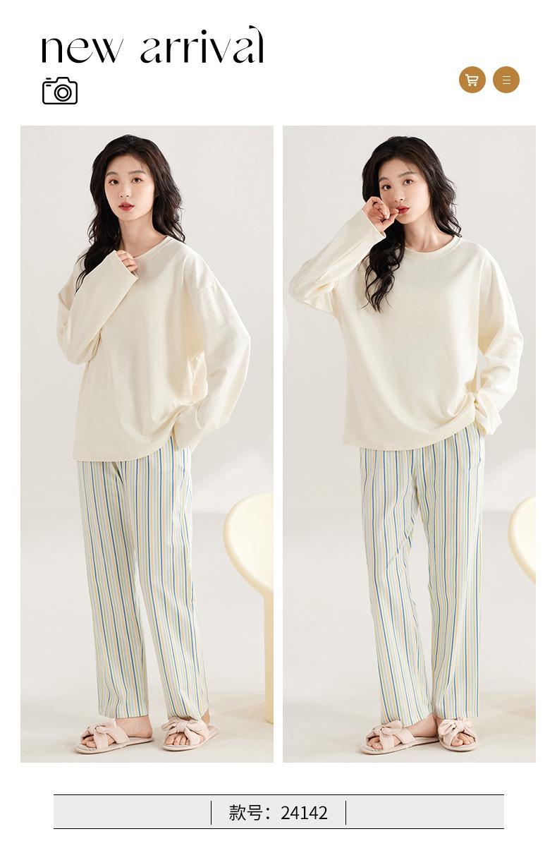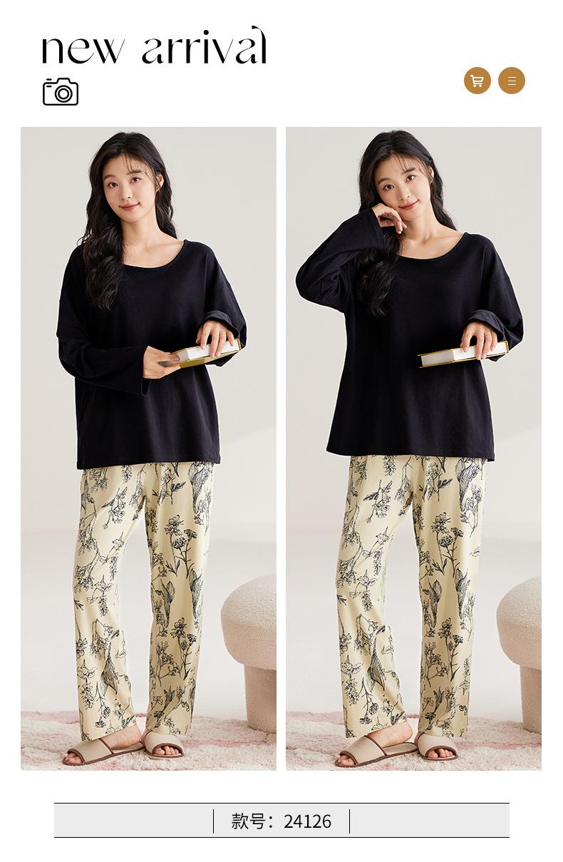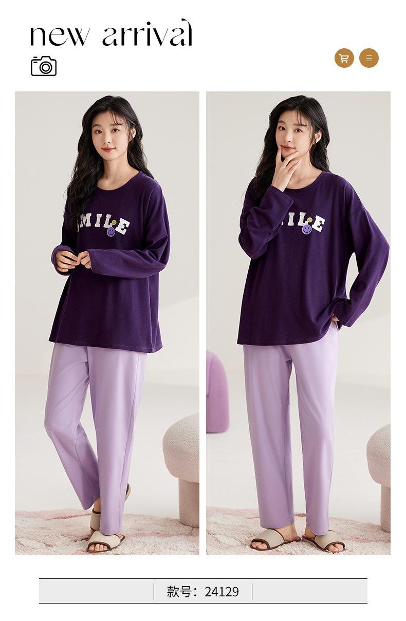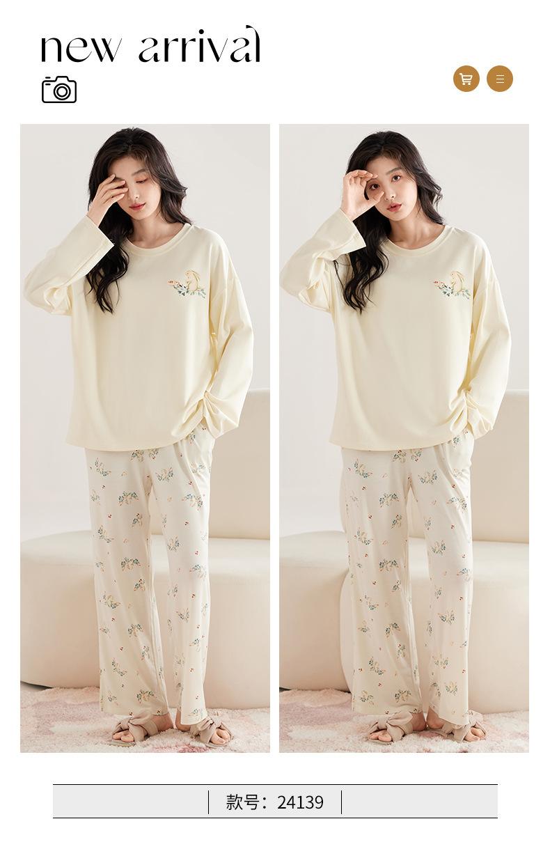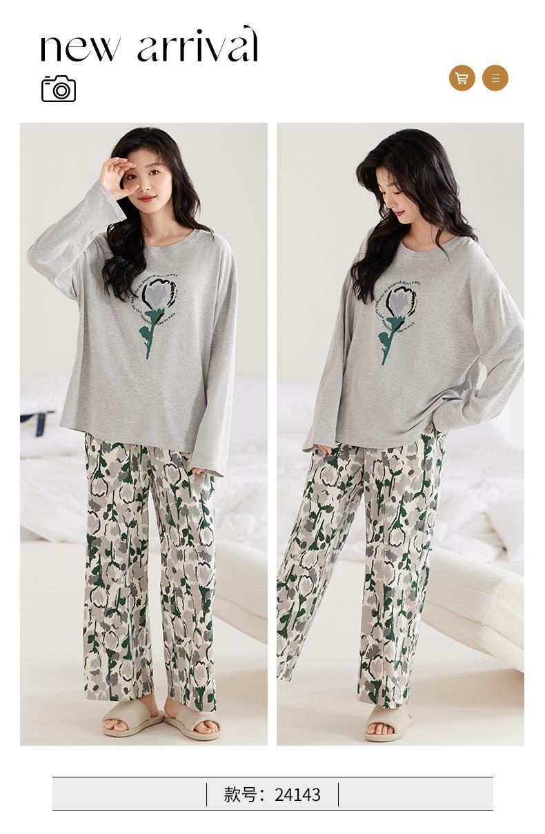 Pijamas para mujer de primavera y otoño con almohadilla para el pecho, manga larga, finos, letras de dibujos animados, prendas de vestir exteriores, pantalones de otoño, ropa de casa, traje