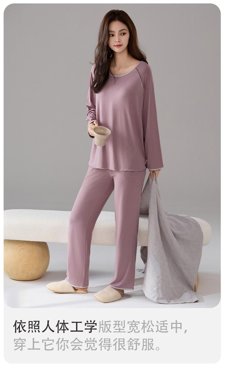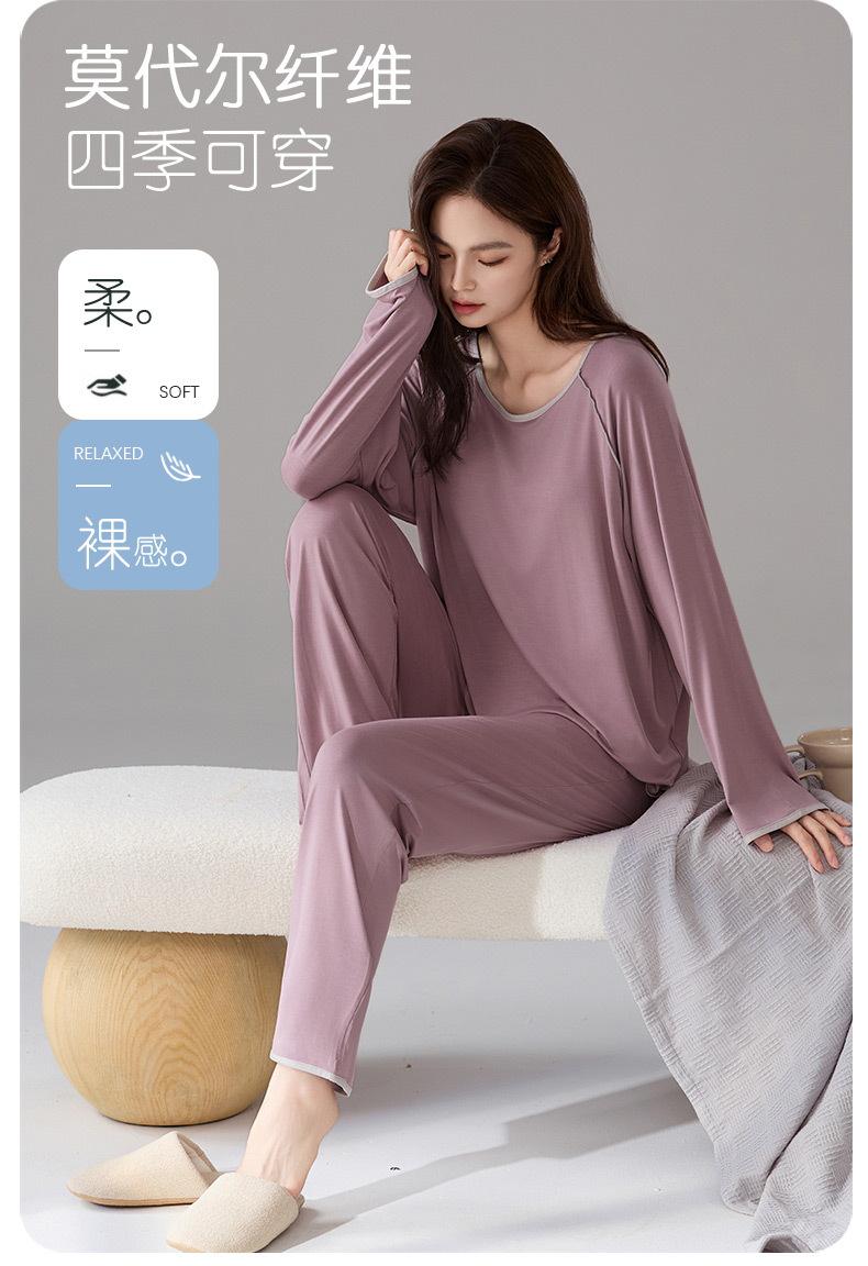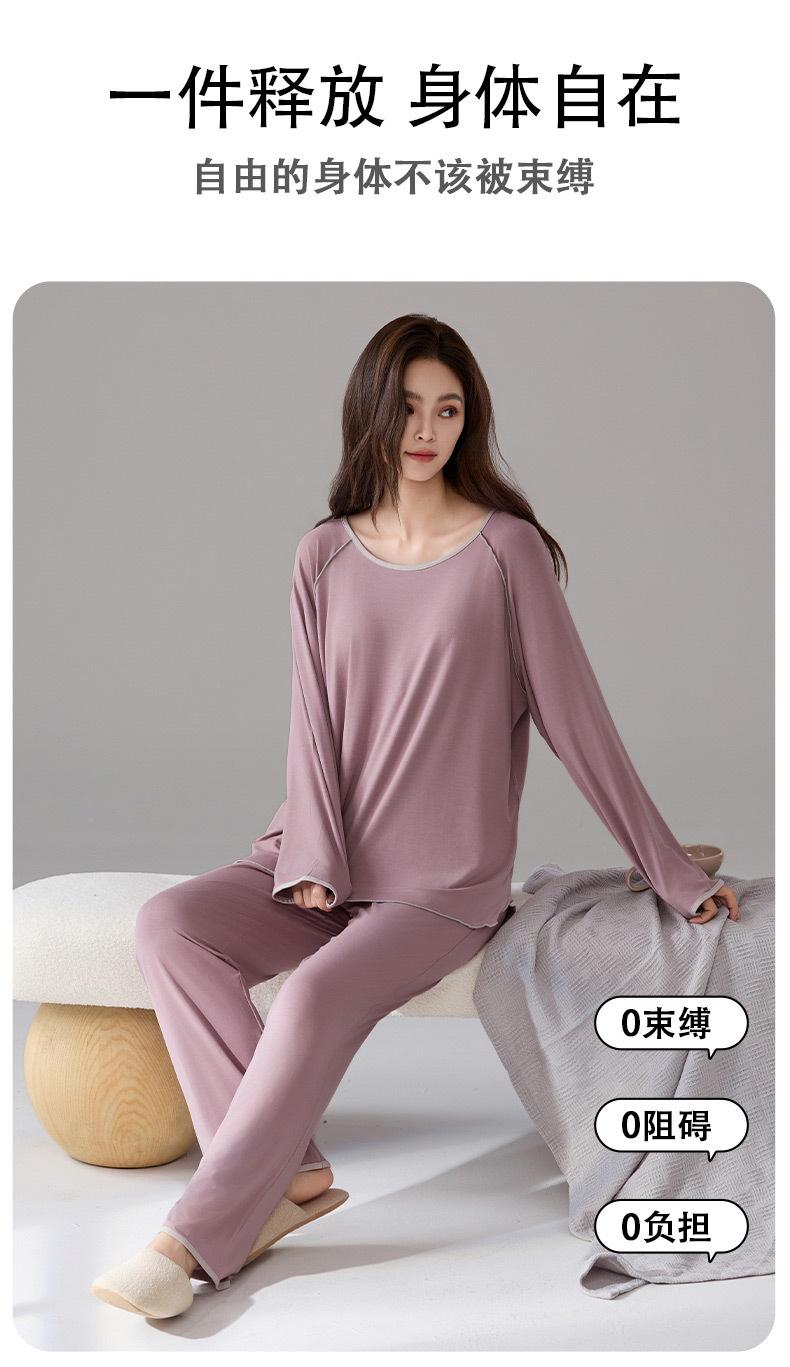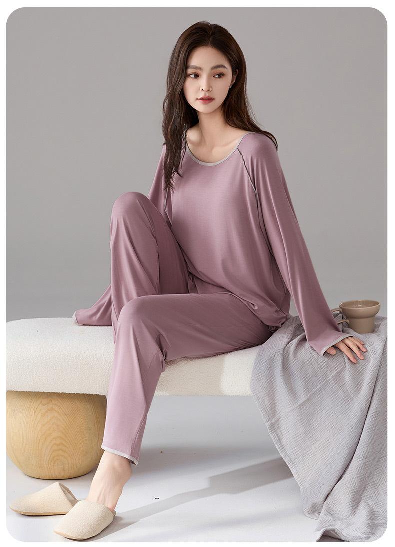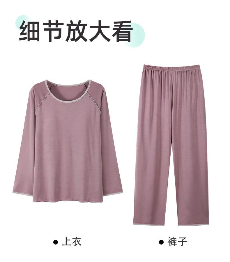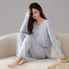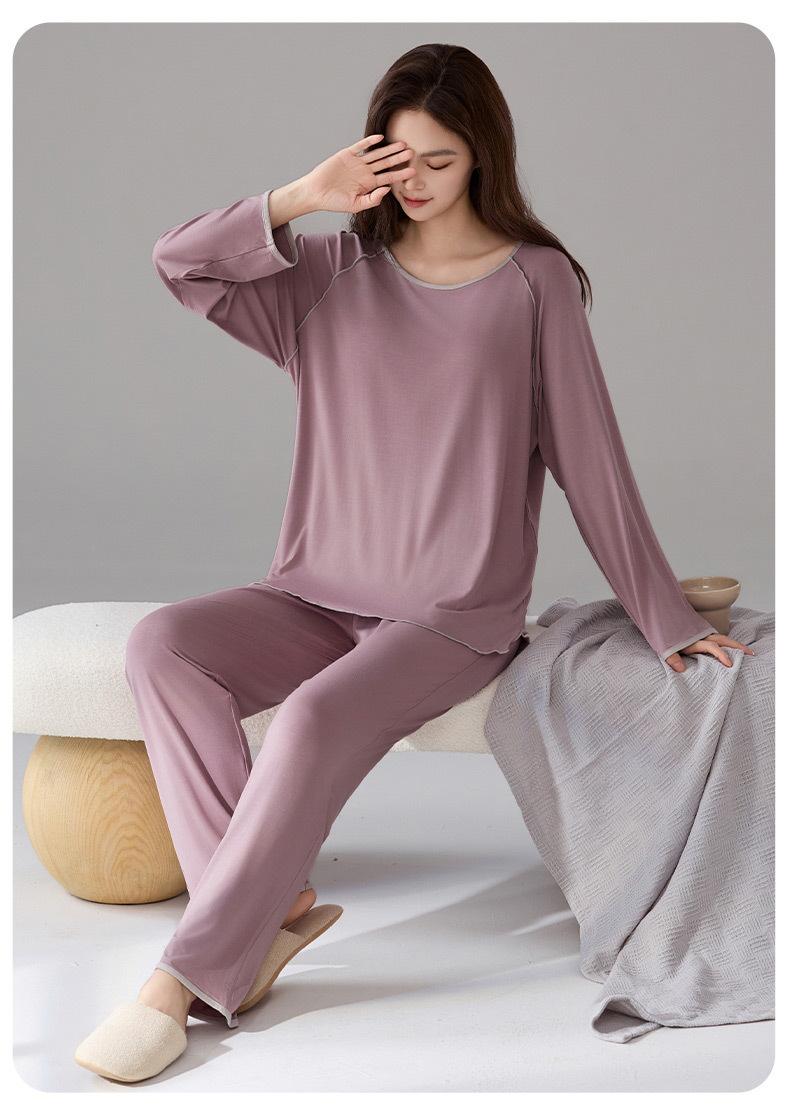 Pijamas de modal con almohadilla para el pecho para mujer, pantalones de manga larga de primavera y verano, se pueden usar en colores sólidos, ropa informal de otoño para el hogar.