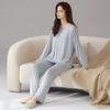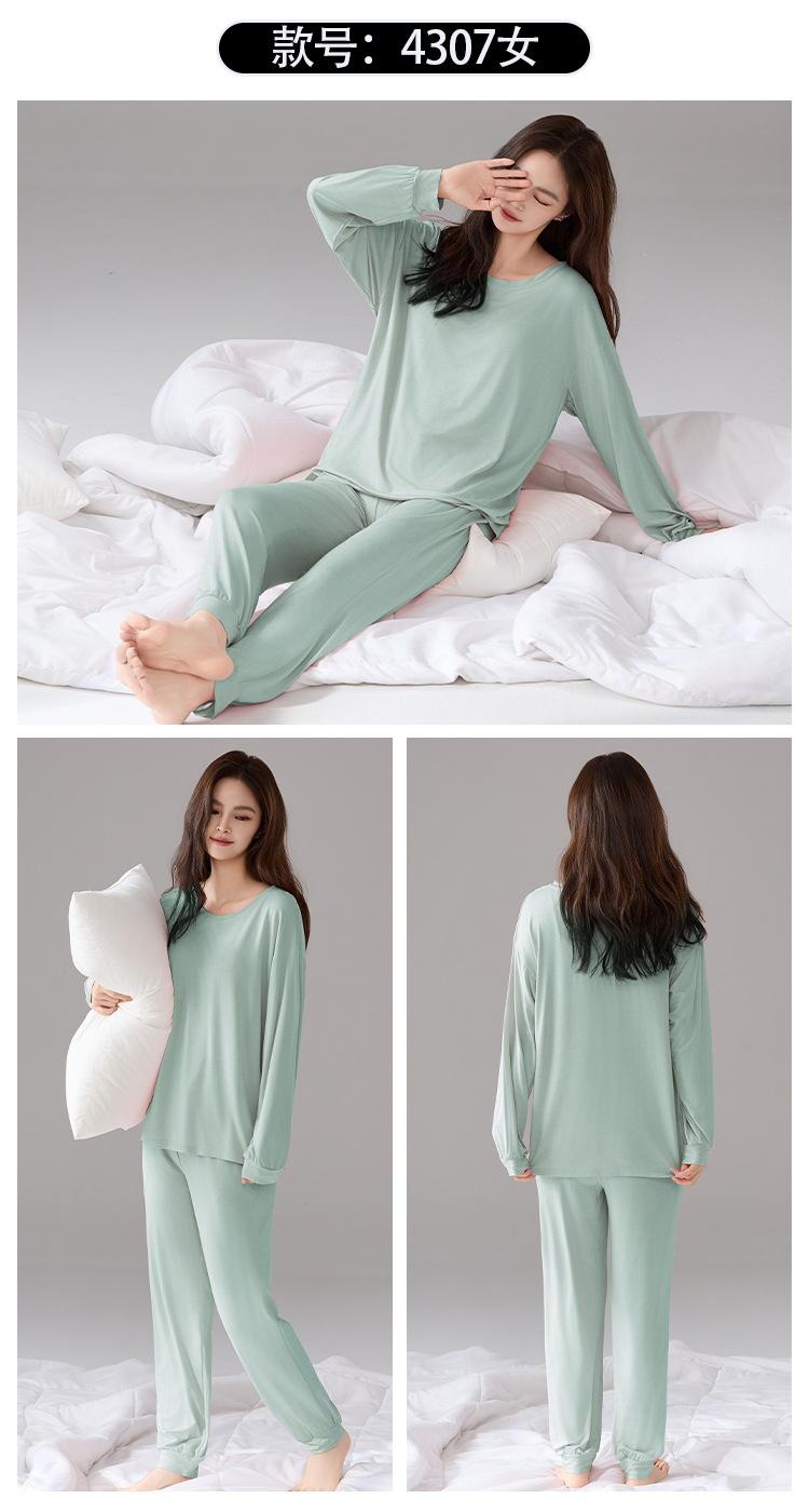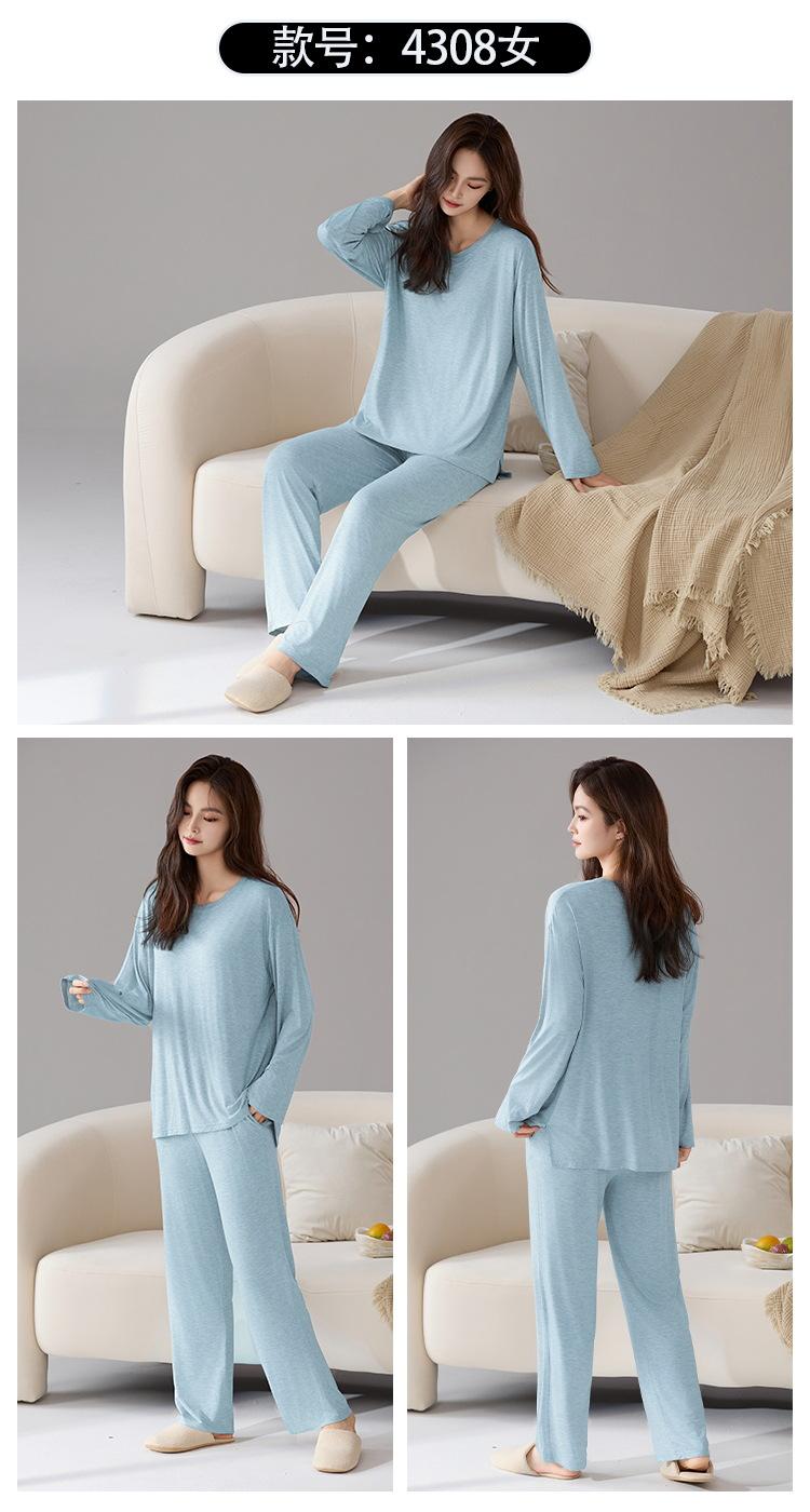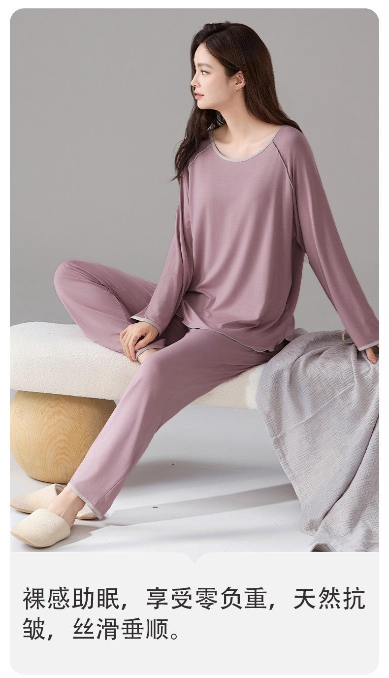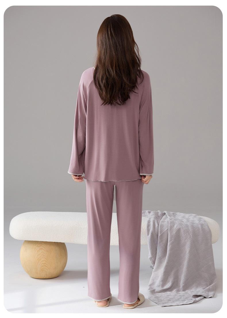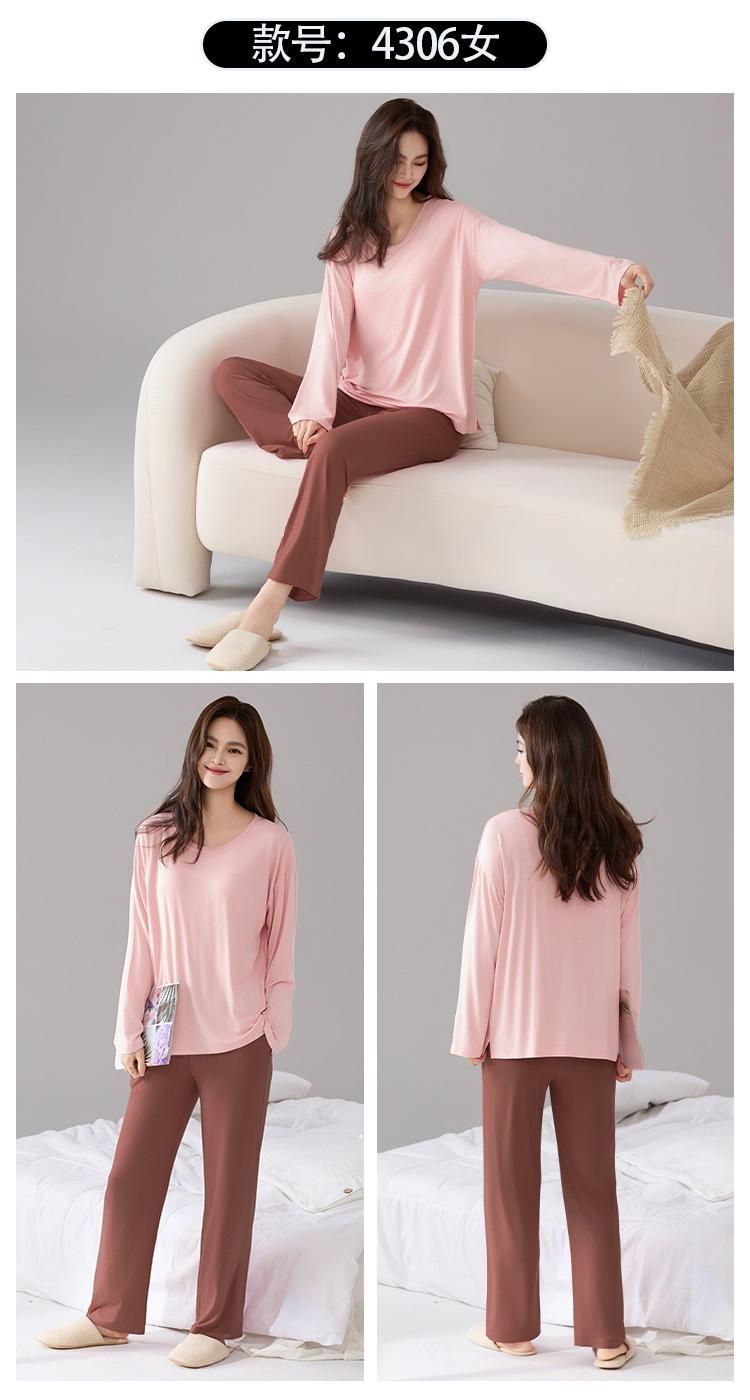 Pijamas de modal con almohadilla para el pecho para mujer, pantalones de manga larga de primavera y verano, se pueden usar en colores sólidos, ropa informal de otoño para el hogar.