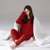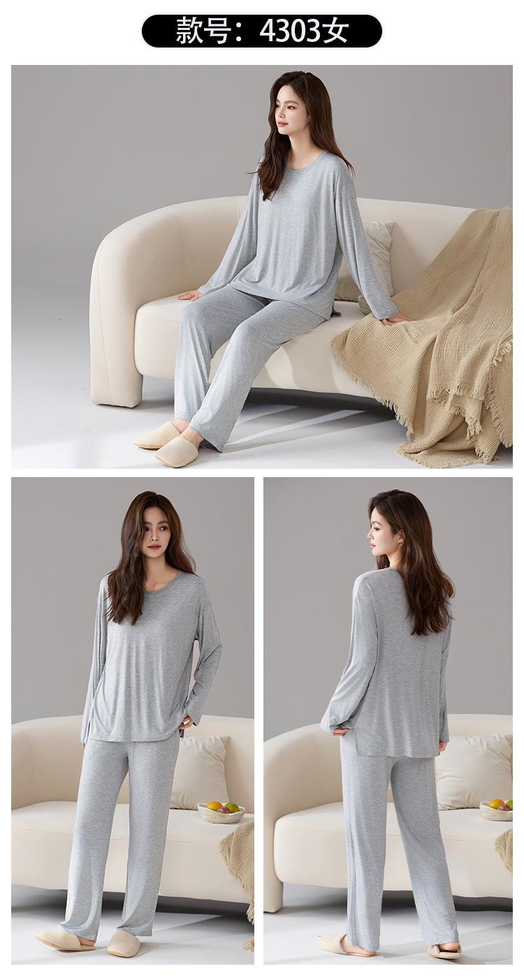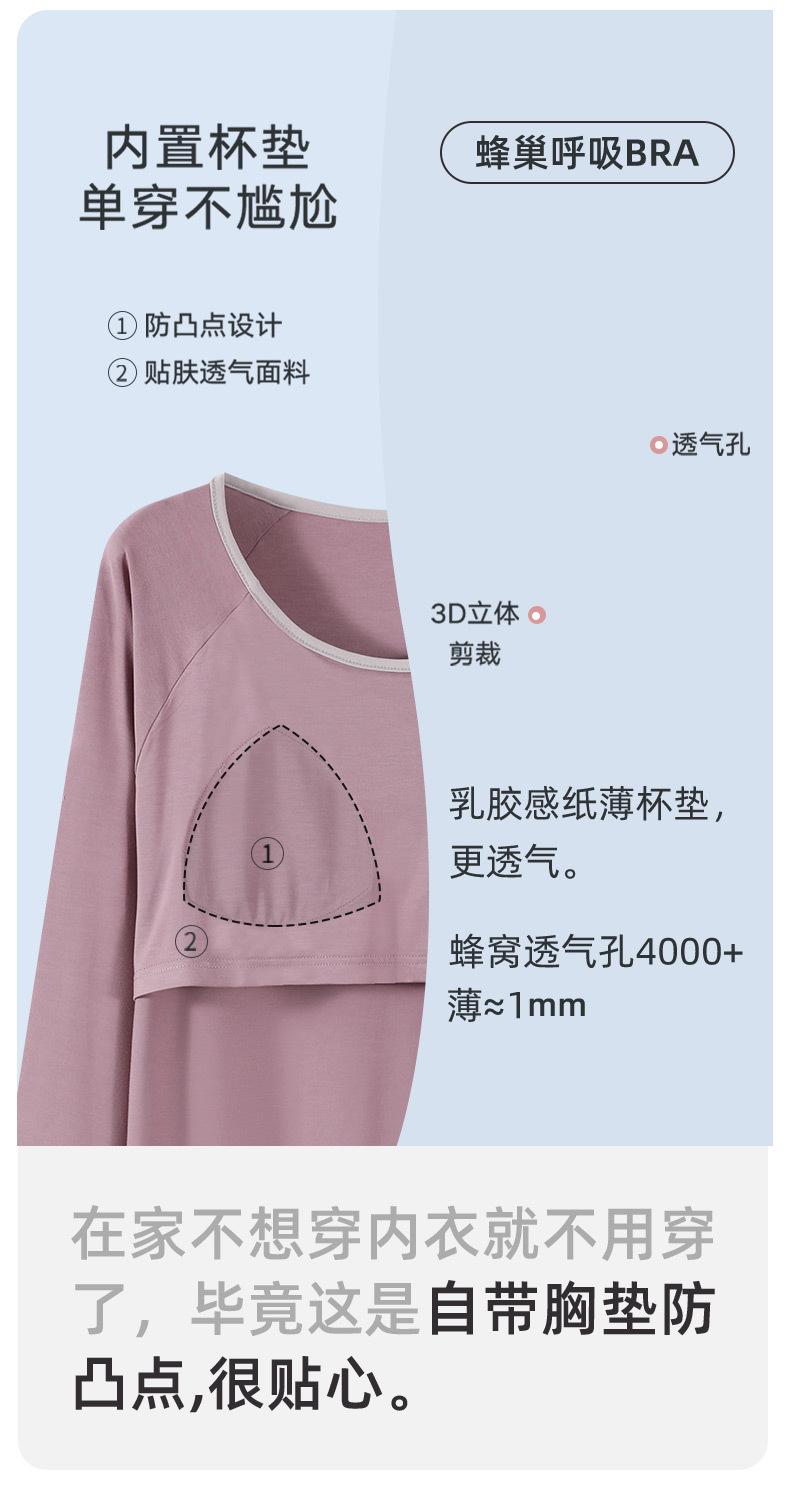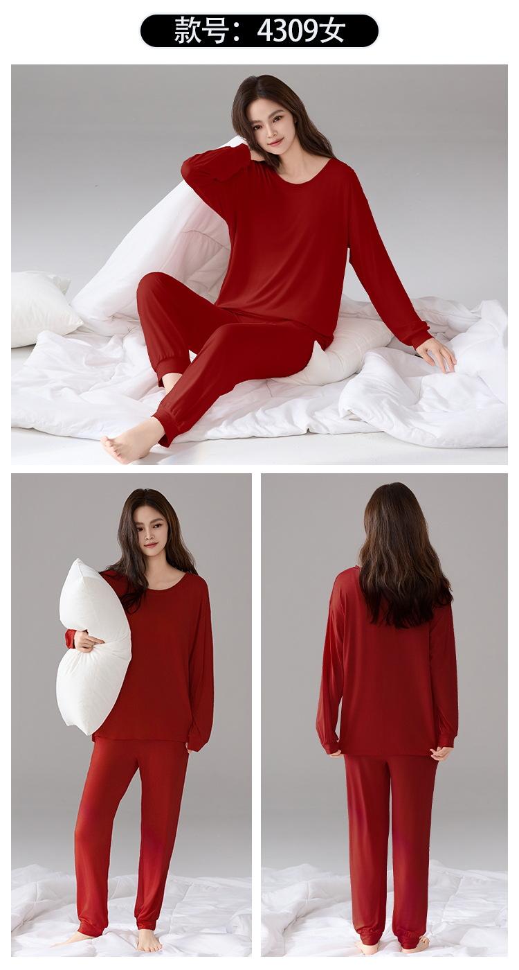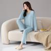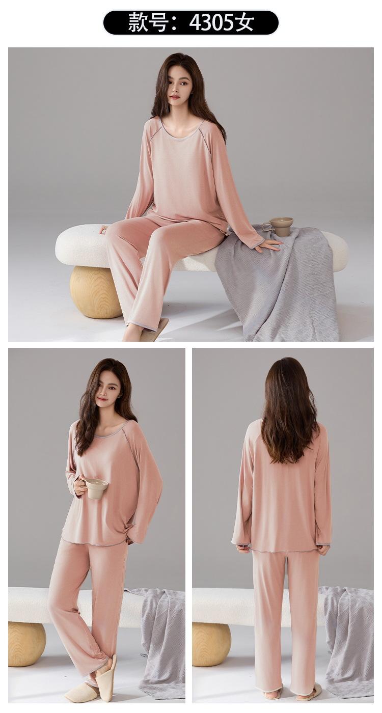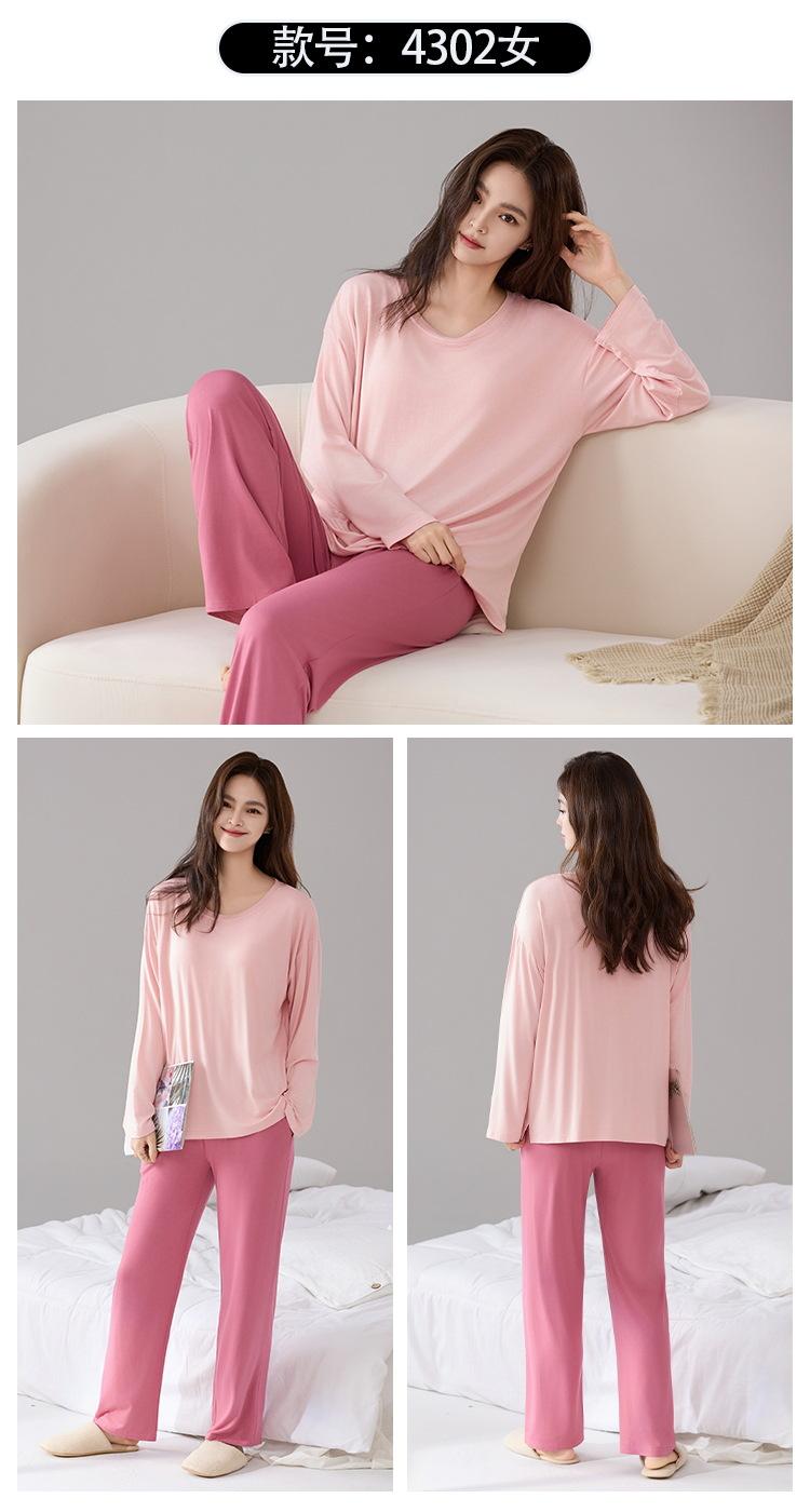 Pijamas de modal con almohadilla para el pecho para mujer, pantalones de manga larga de primavera y verano, se pueden usar en colores sólidos, ropa informal de otoño para el hogar.
