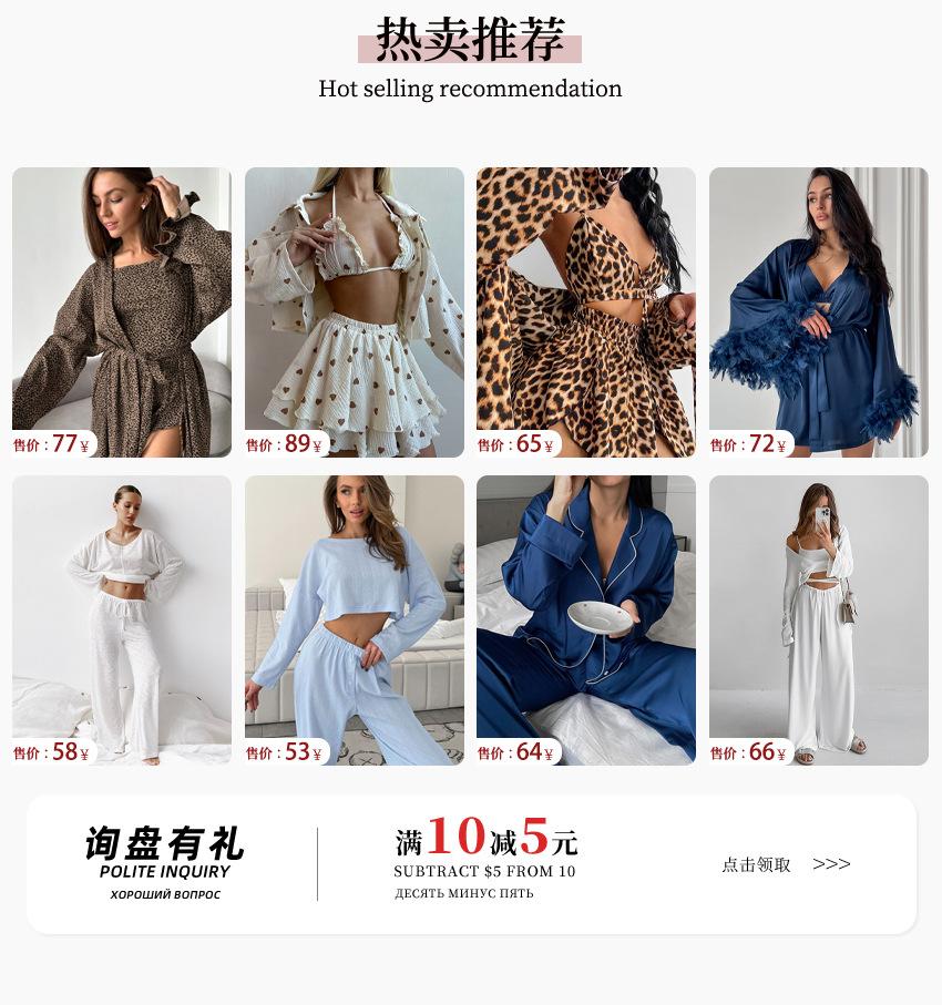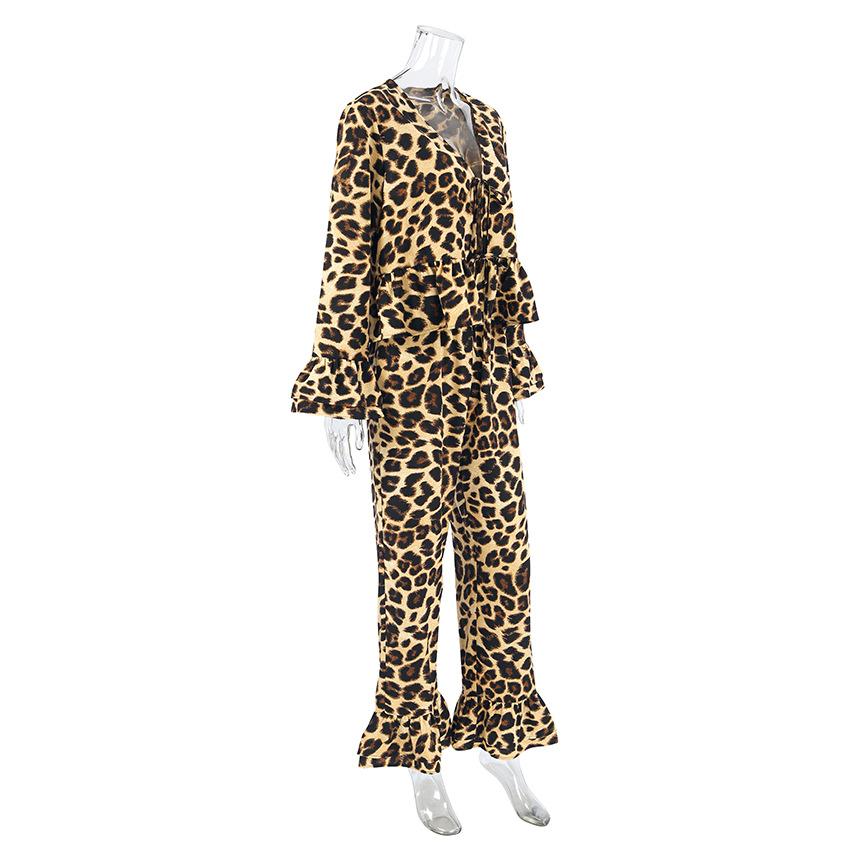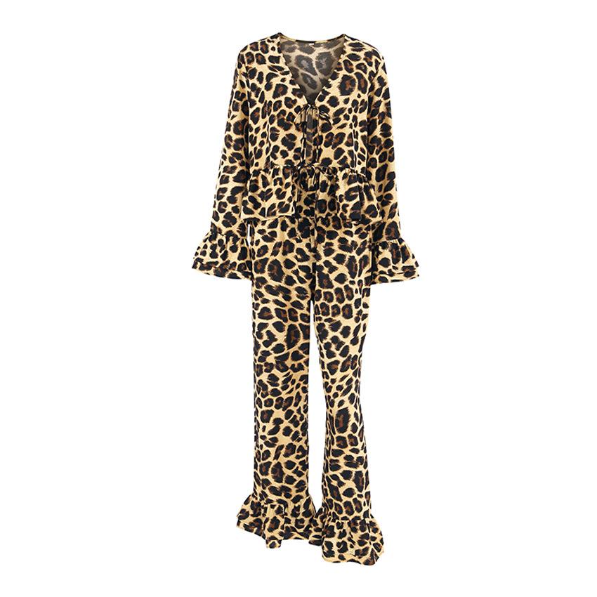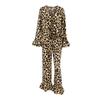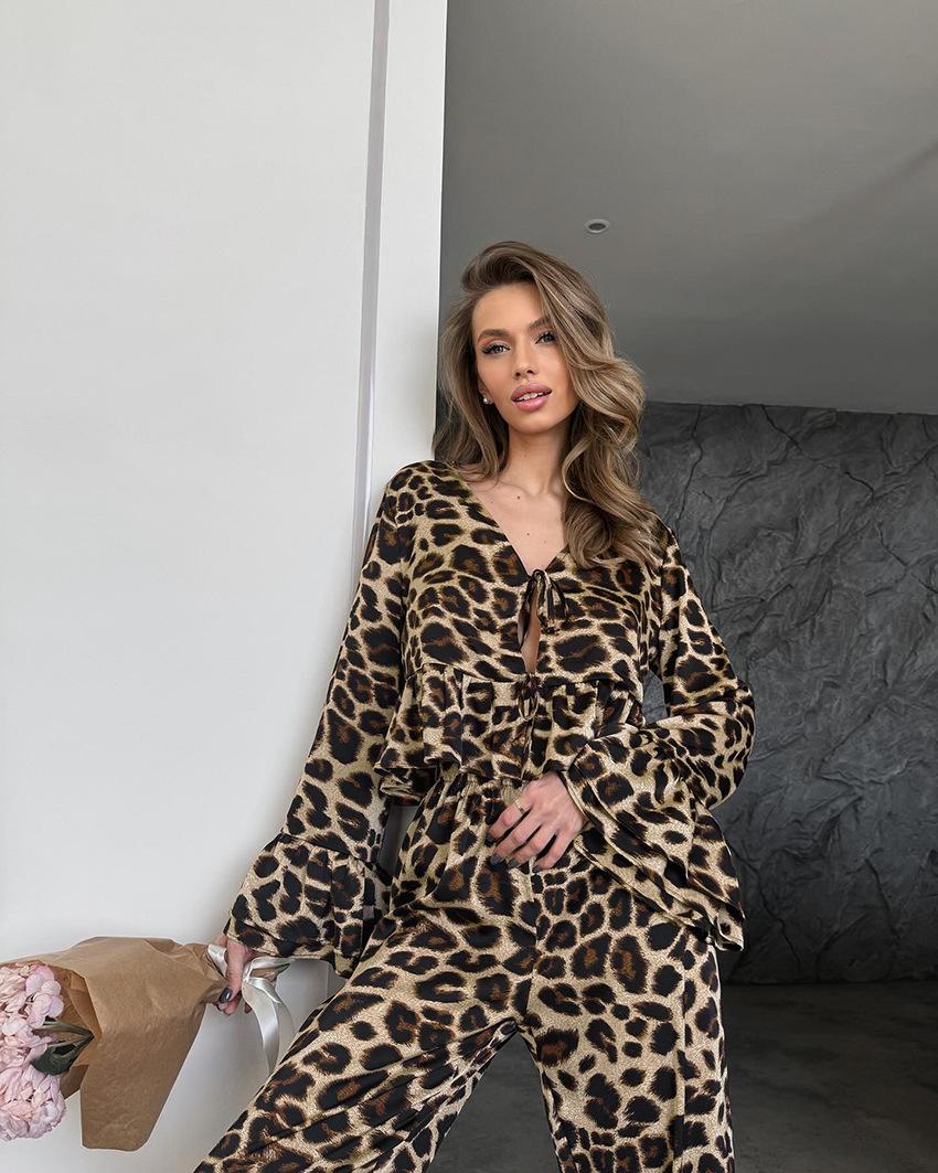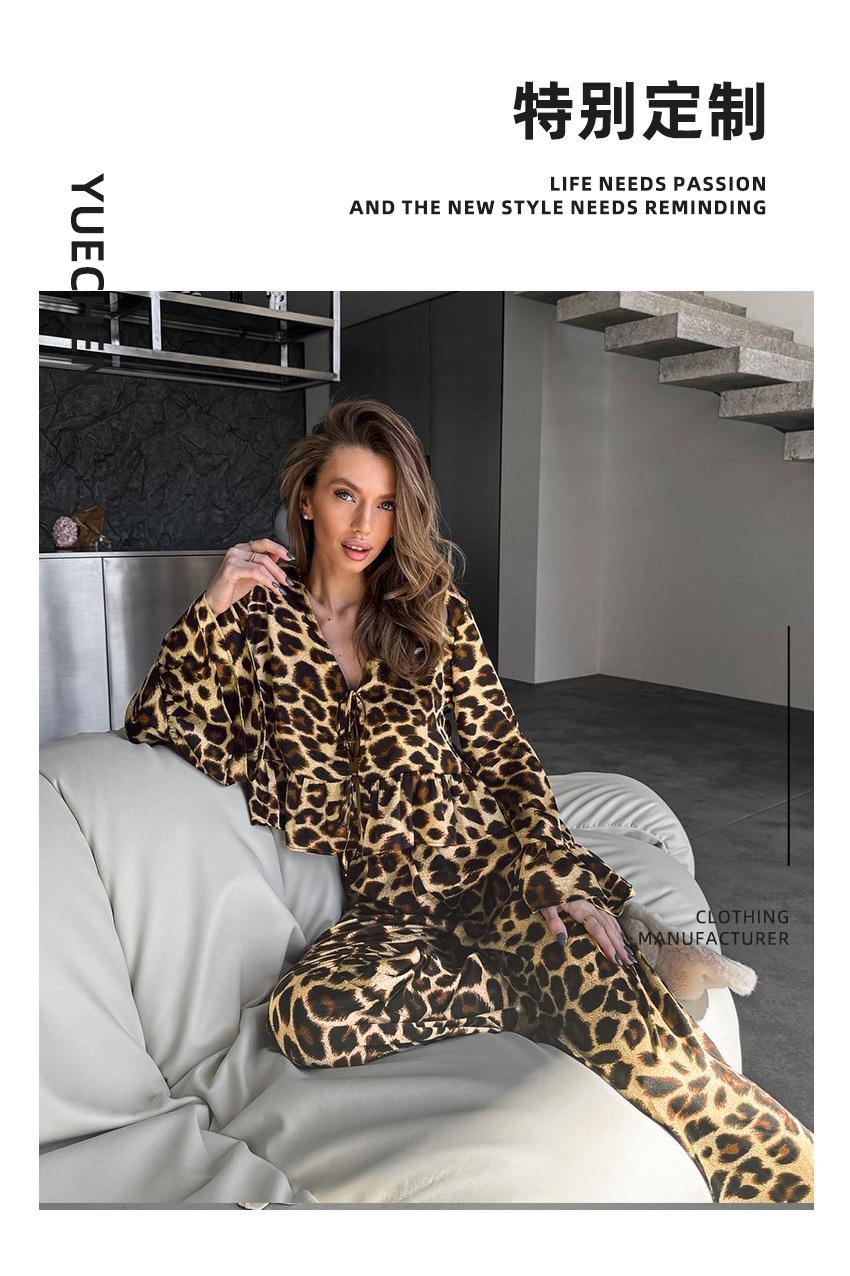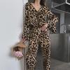 Pijama de manga larga con estampado de leopardo para mujer, ropa de hogar transfronteriza, estilo europeo y americano, para otoño e invierno, holgado y cómodo.