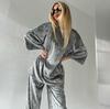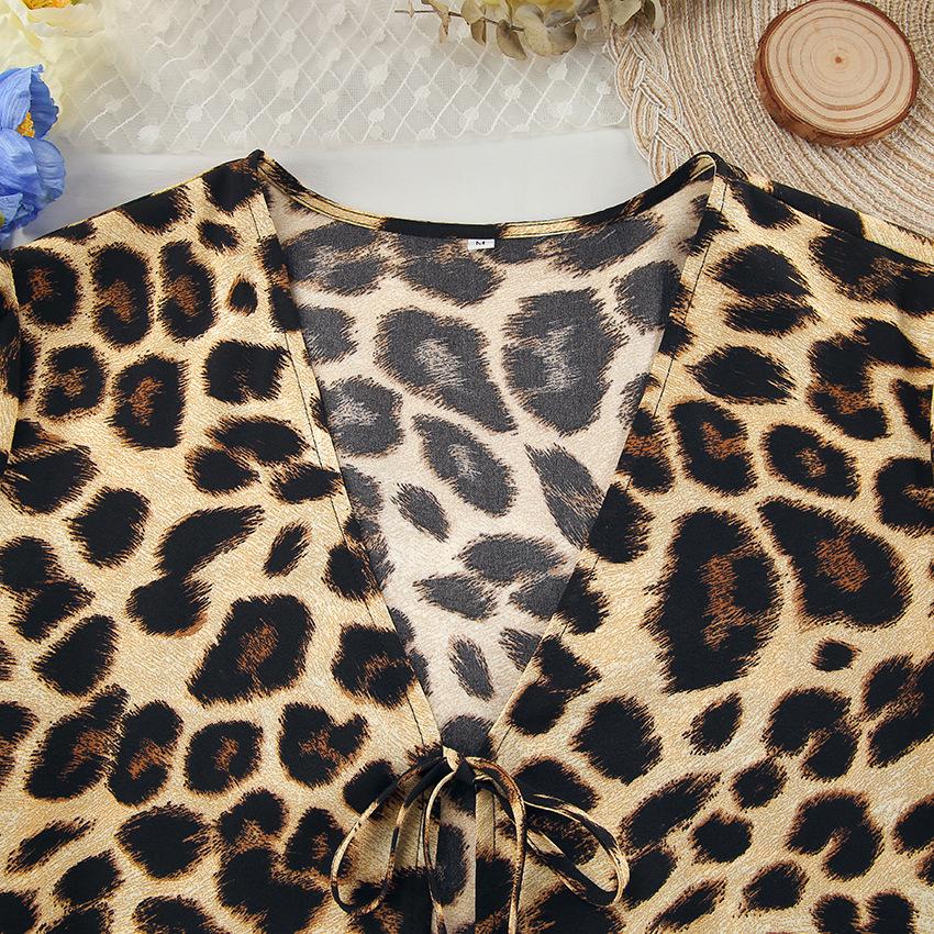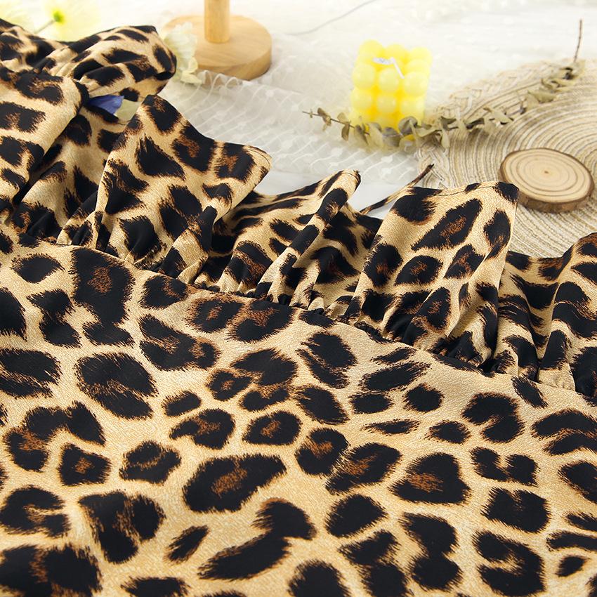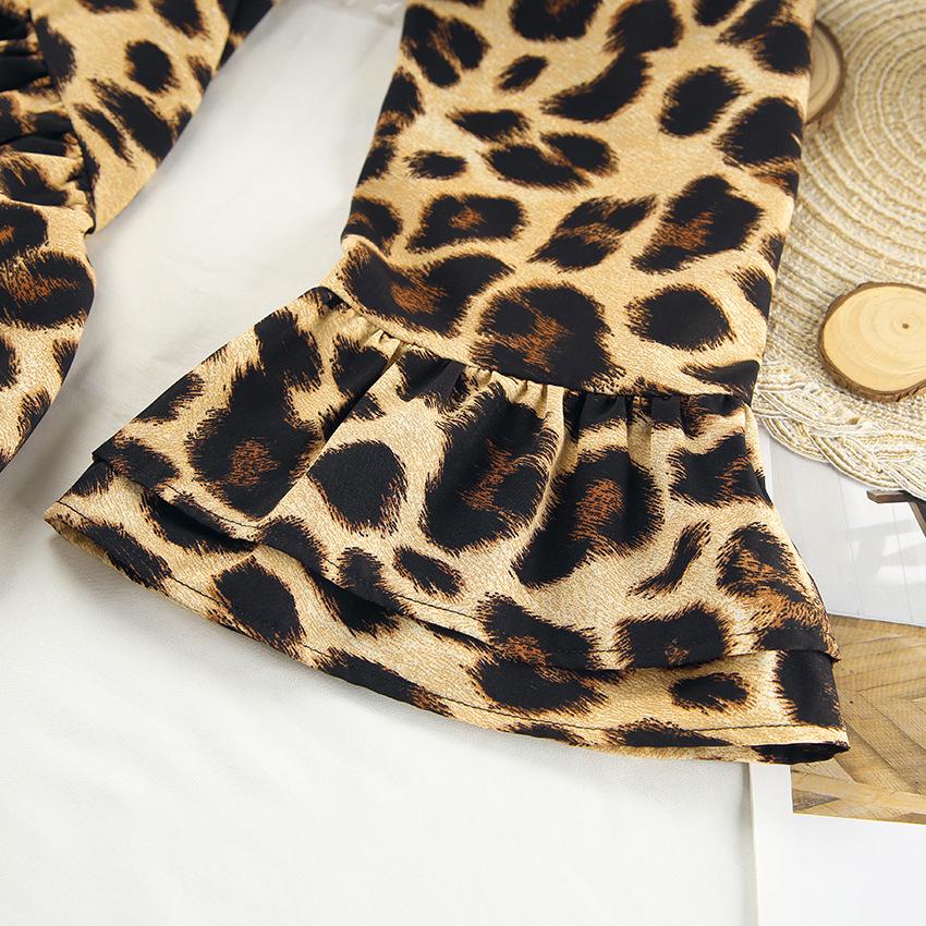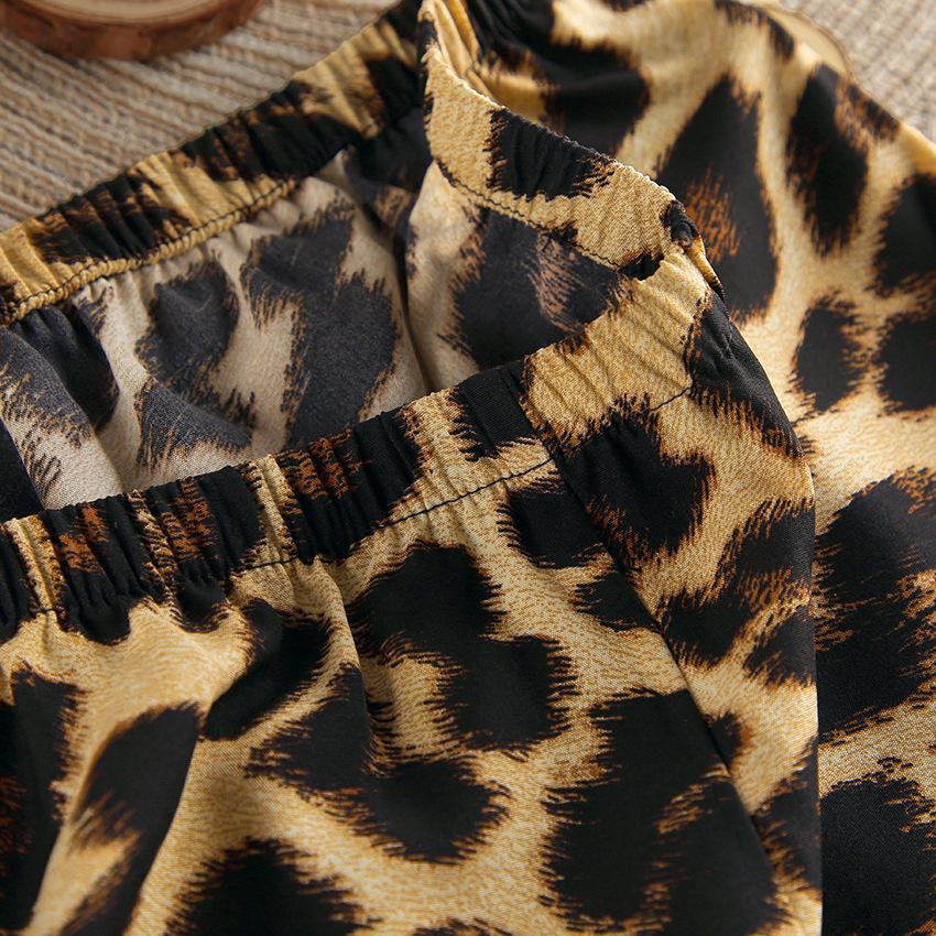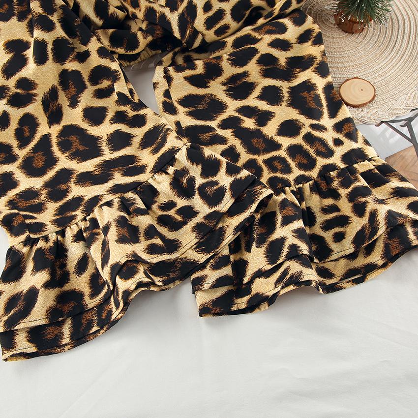 Pijama de manga larga con estampado de leopardo para mujer, ropa de hogar transfronteriza, estilo europeo y americano, para otoño e invierno, holgado y cómodo.