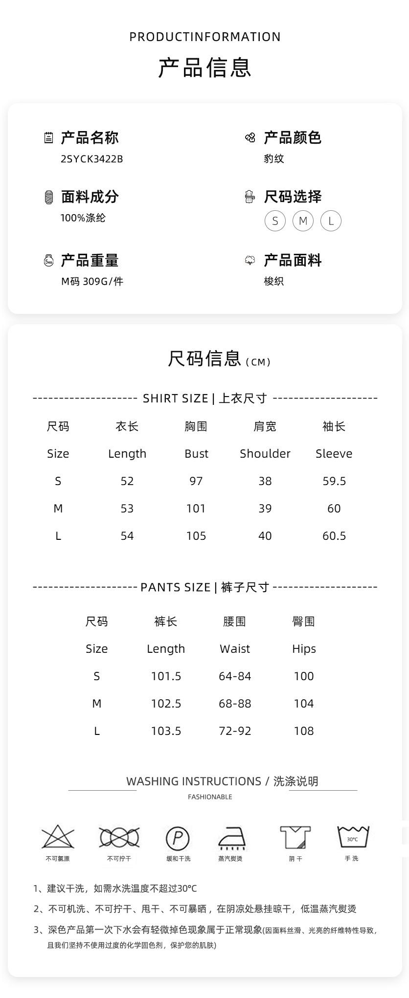 Leopard print, Minimum order of 60 sets for single color mixed code~, Composition: 100% polyester, Weight (m size): 309g