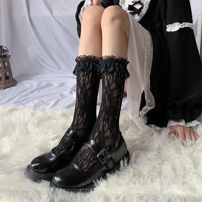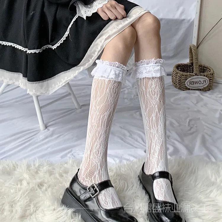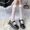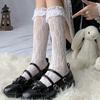 Calcetines de lolita de encaje blanco hasta la pantorrilla para mujer, calcetines largos de encaje japonés JK, medias lolita de media pierna