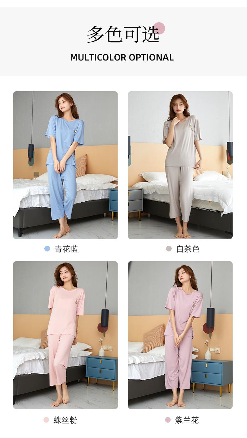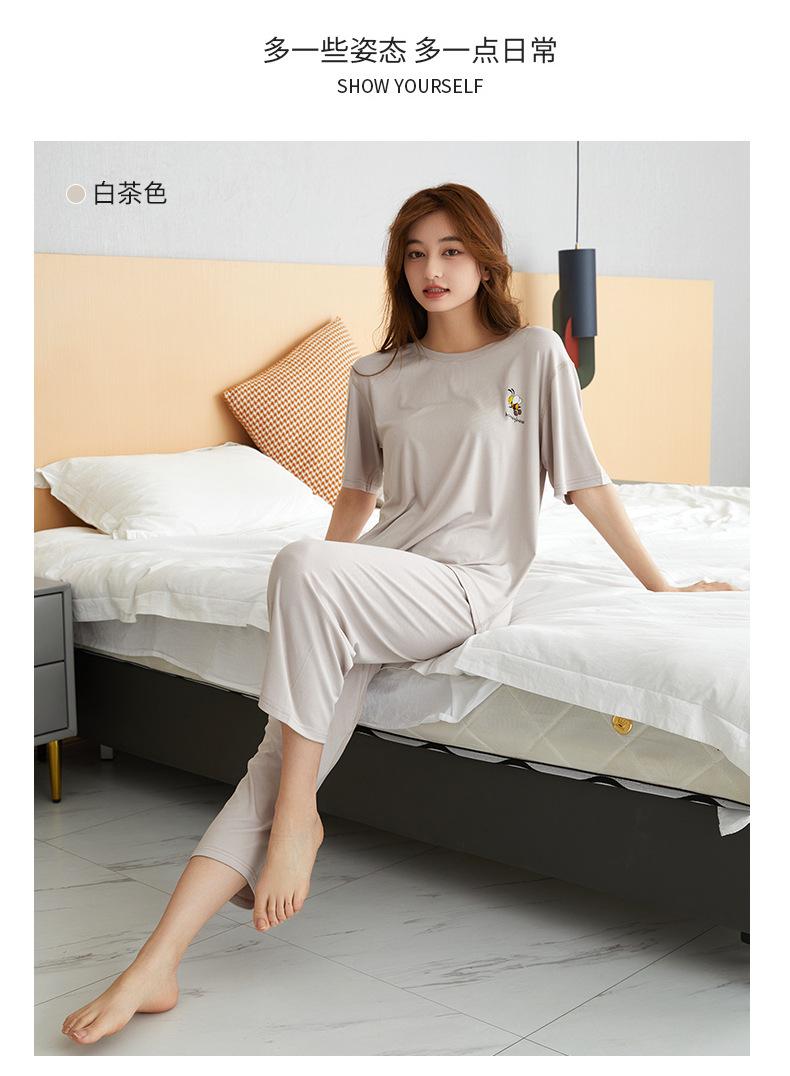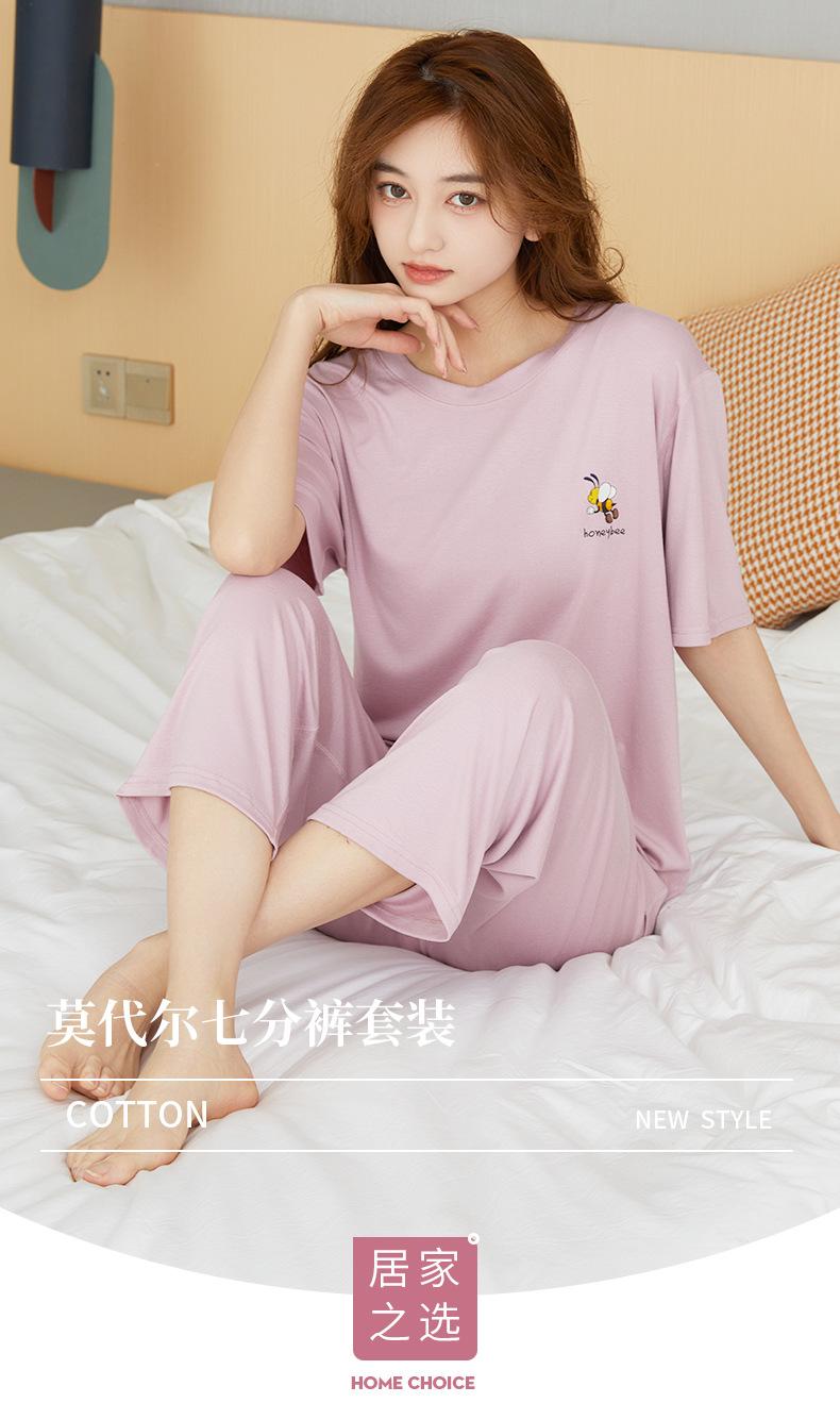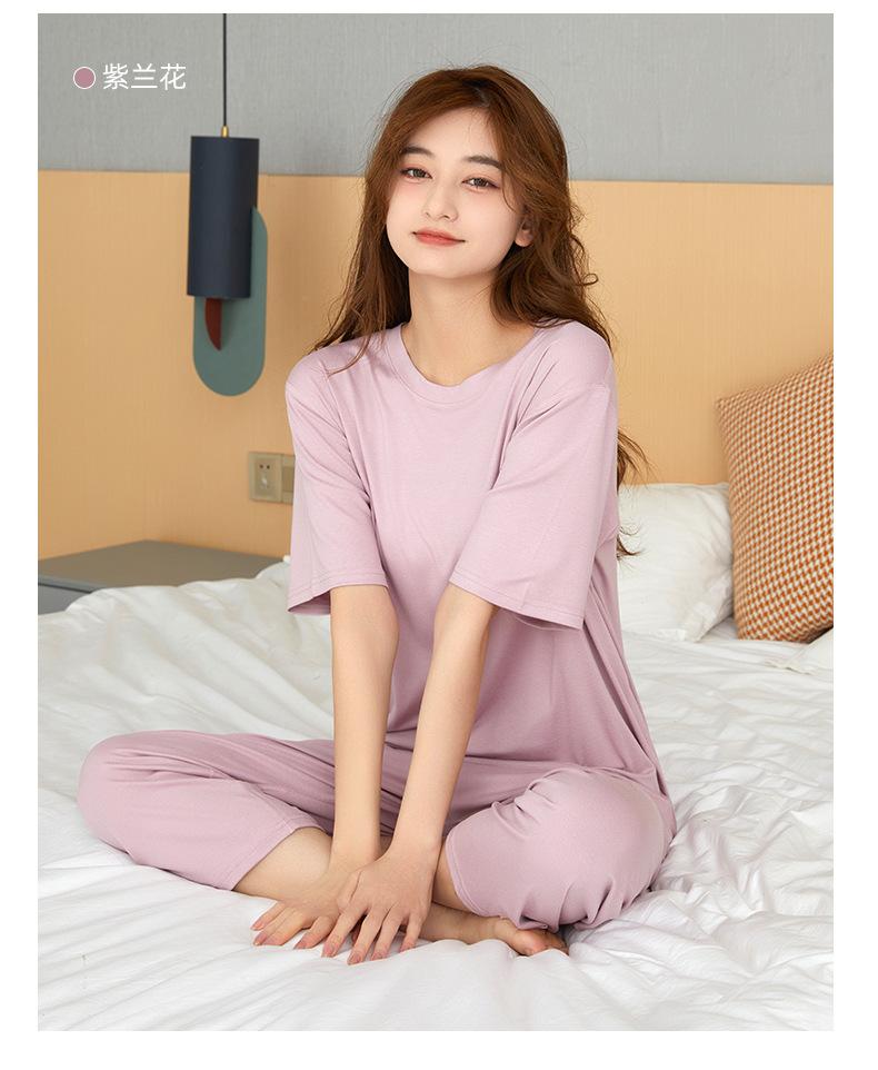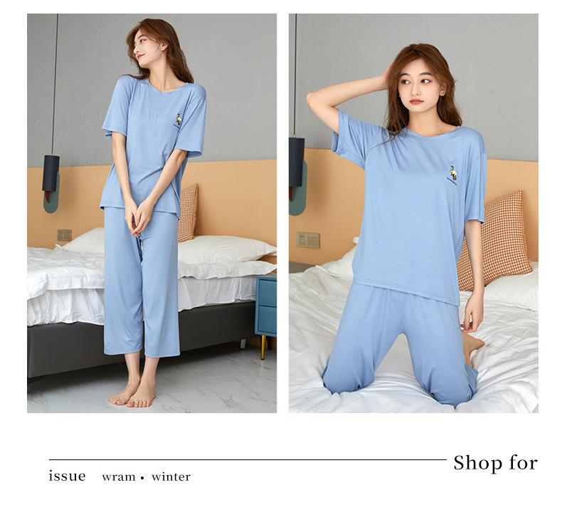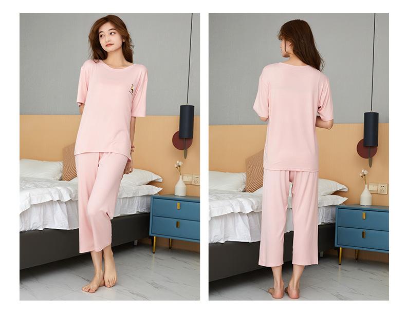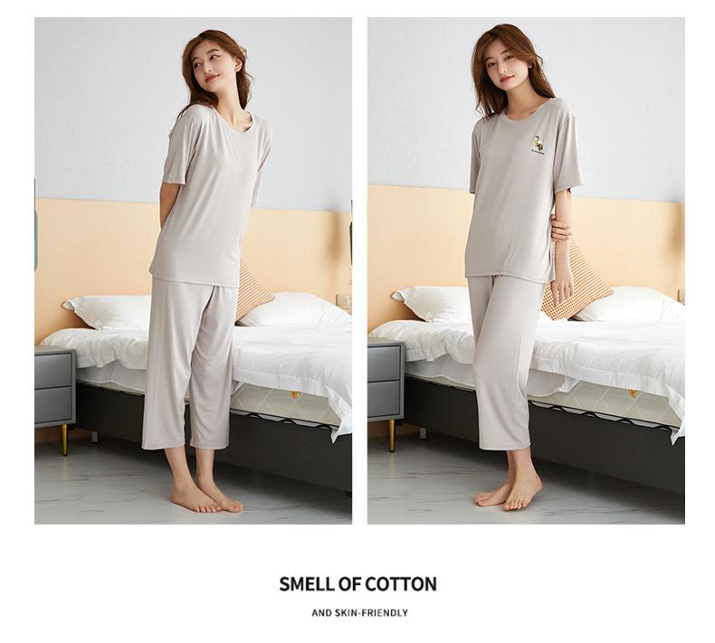 Pijama de algodón modal para el hogar, nuevo conjunto de pijamas de cuello redondo, pantalones capri cómodos e informales.
