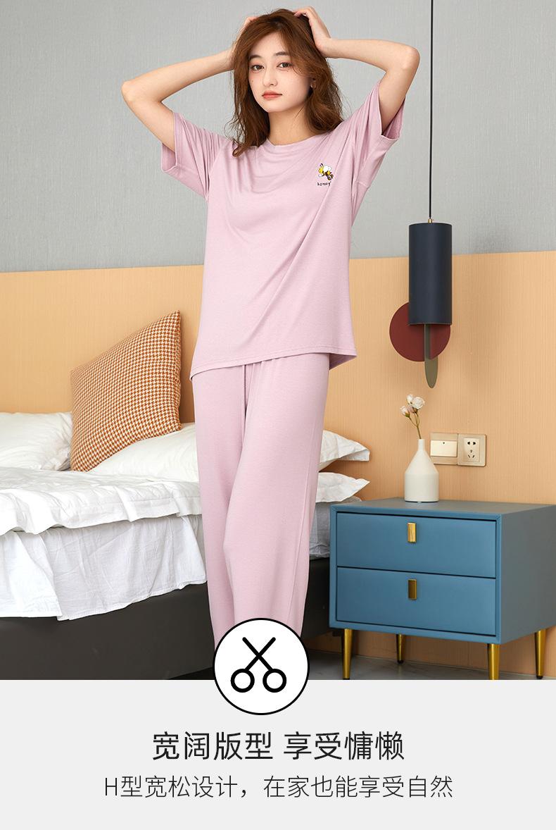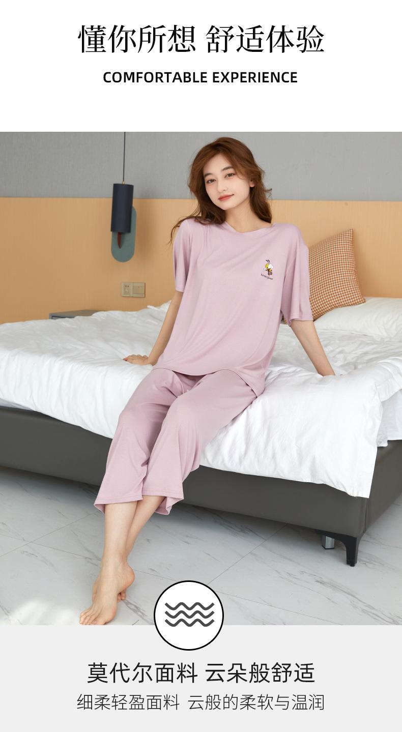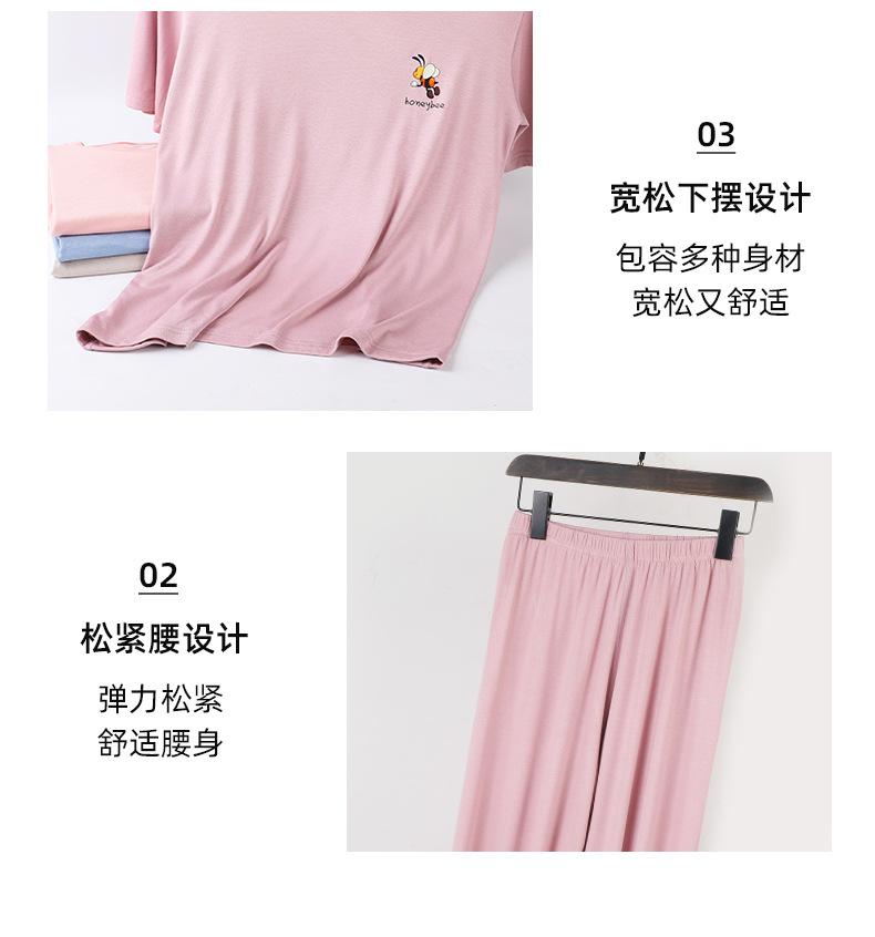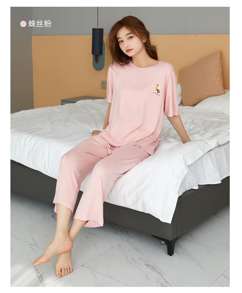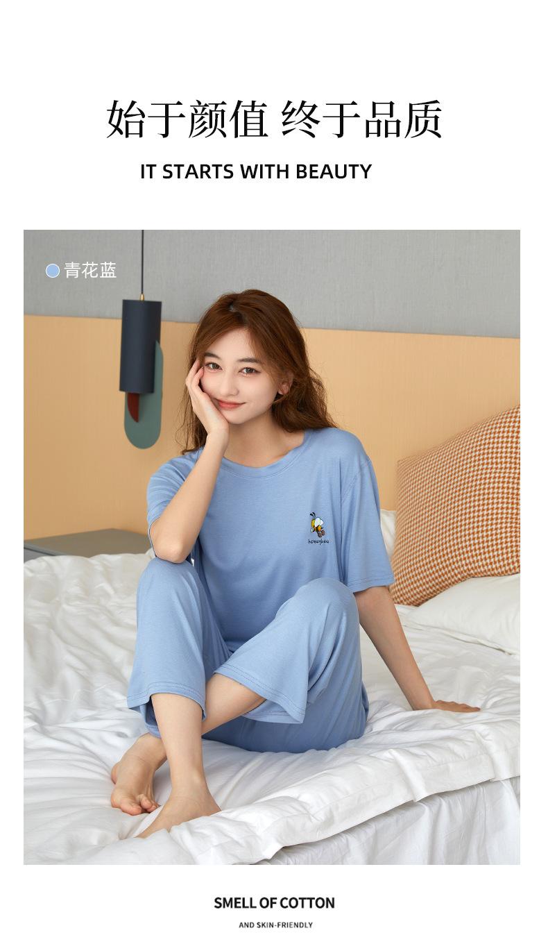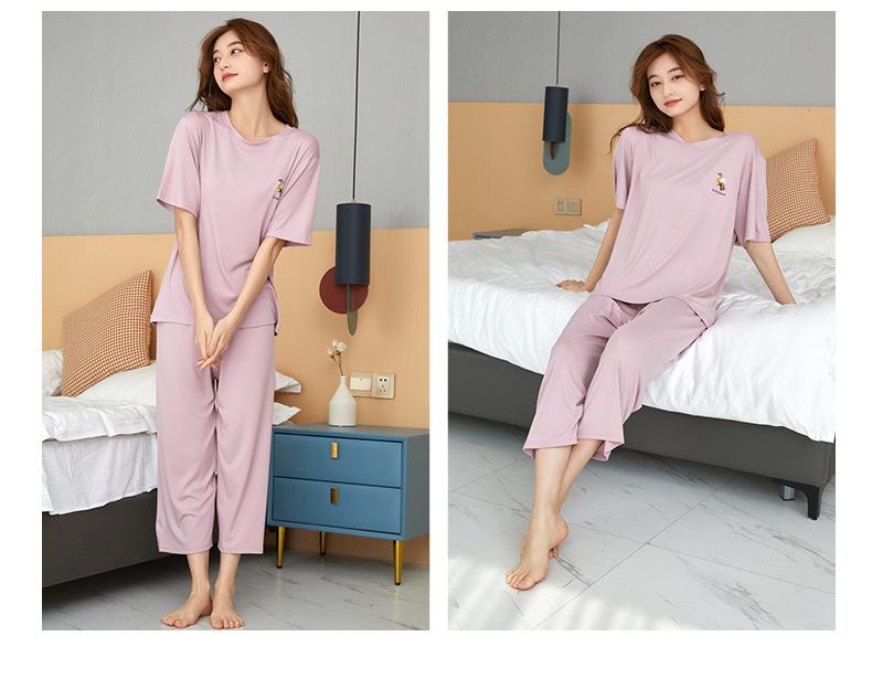 Pijama de algodón modal para el hogar, nuevo conjunto de pijamas de cuello redondo, pantalones capri cómodos e informales.