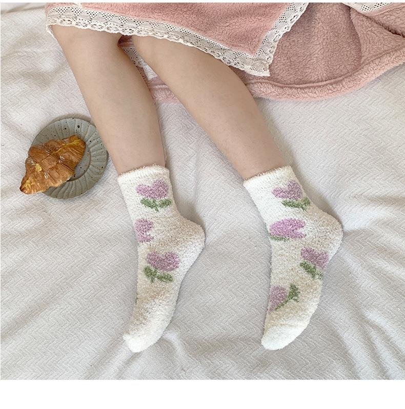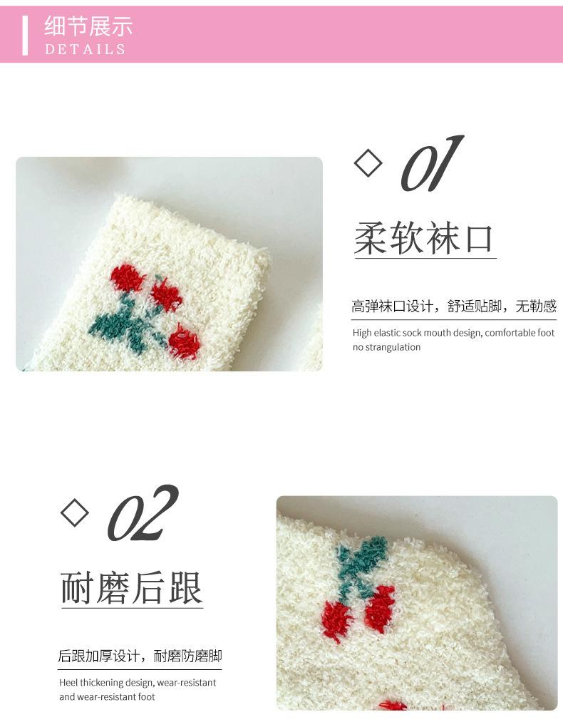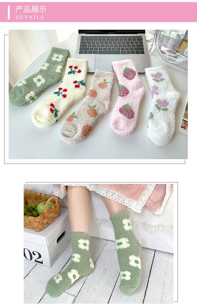 Calcetines de invierno nuevos de vellón coral grueso con forro polar, cálidos, de colores japoneses, con dibujos de frutas, para dormir, para niños, calcetines de suelo