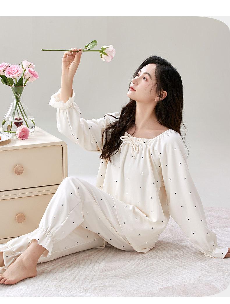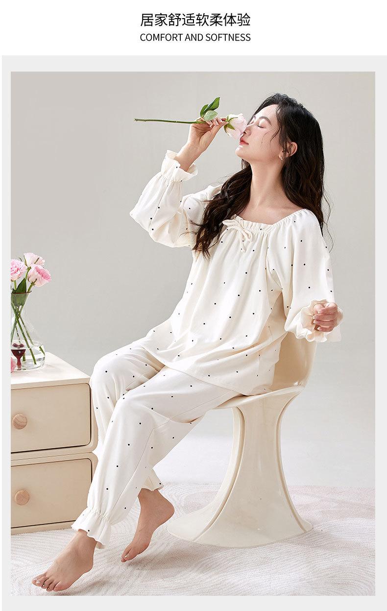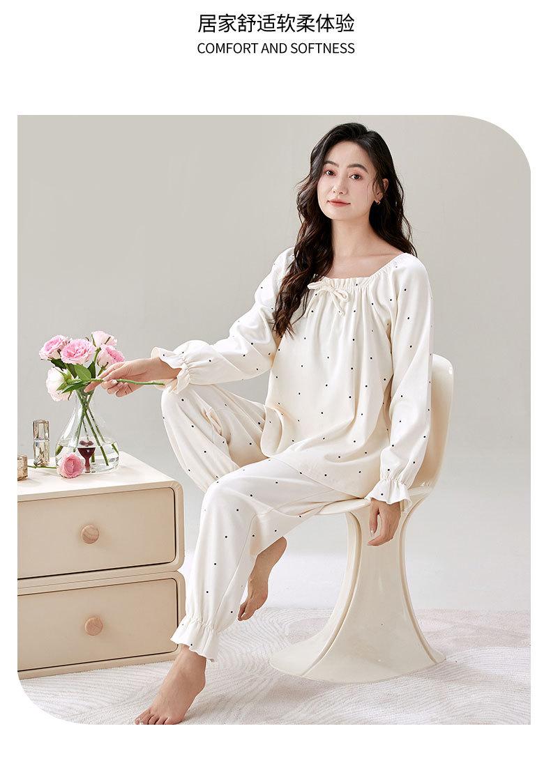 Pijamas de moda de primavera y otoño para mujer, pantalones de manga larga, jersey, ropa para el hogar, traje exterior sencillo, holgado y cómodo.