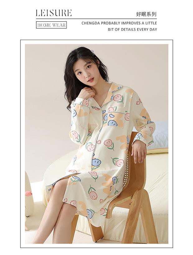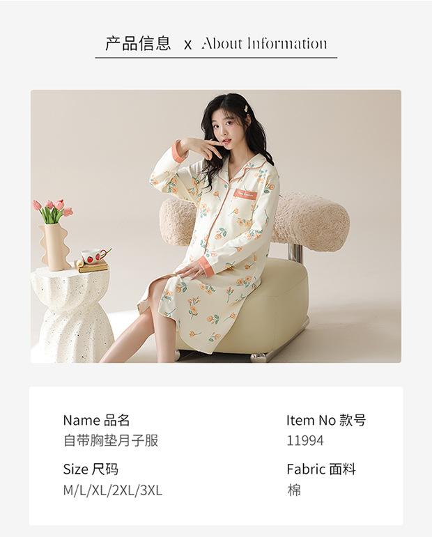 Camisón de mujer con almohadilla en el pecho para mujeres embarazadas en primavera y otoño, lactancia, maternidad y tienda de bebés, centro de compras, fábrica al por mayor