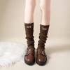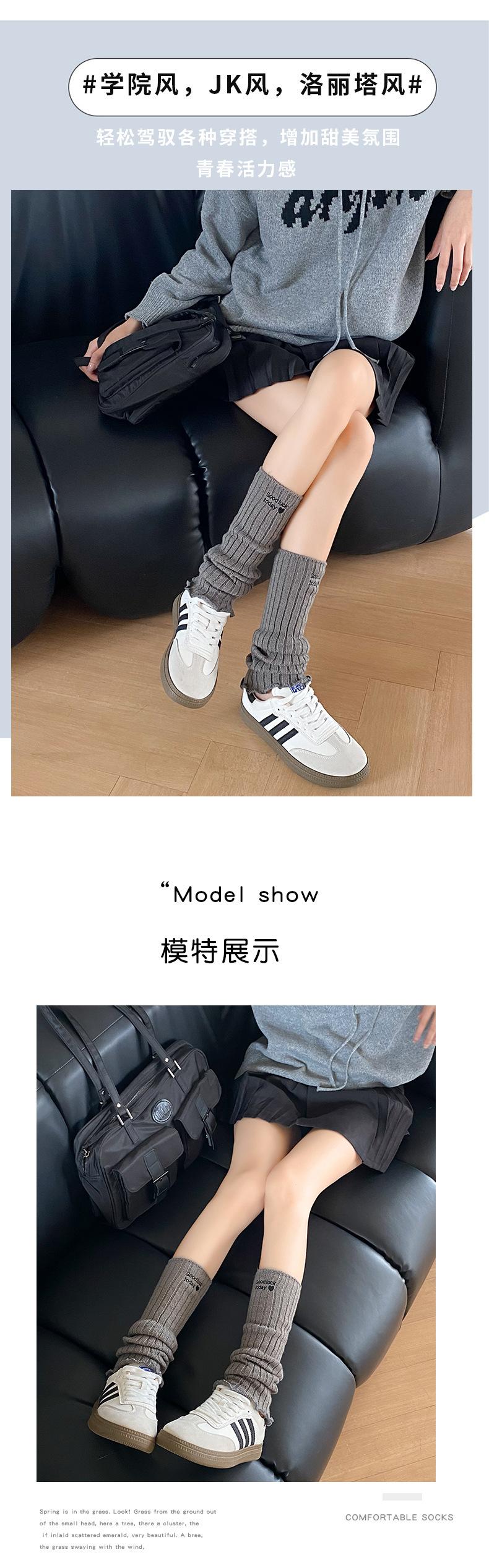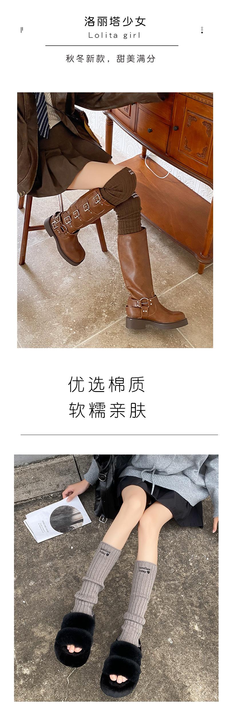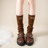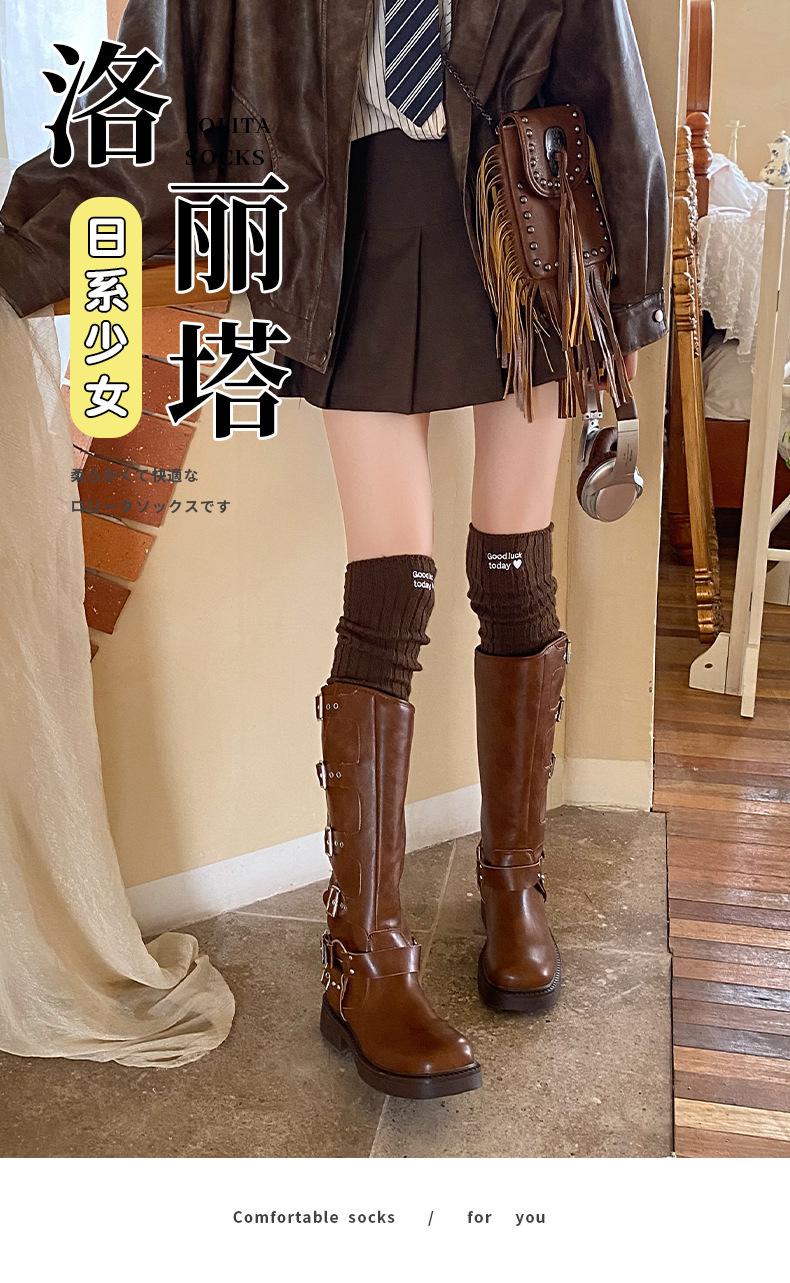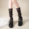 Calcetines para mujer, bordados de amor, primavera y otoño, conjunto de pierna de lana Maillard, estilo coreano, marrón, calcetines de punto para chicas calientes por encima de la rodilla