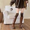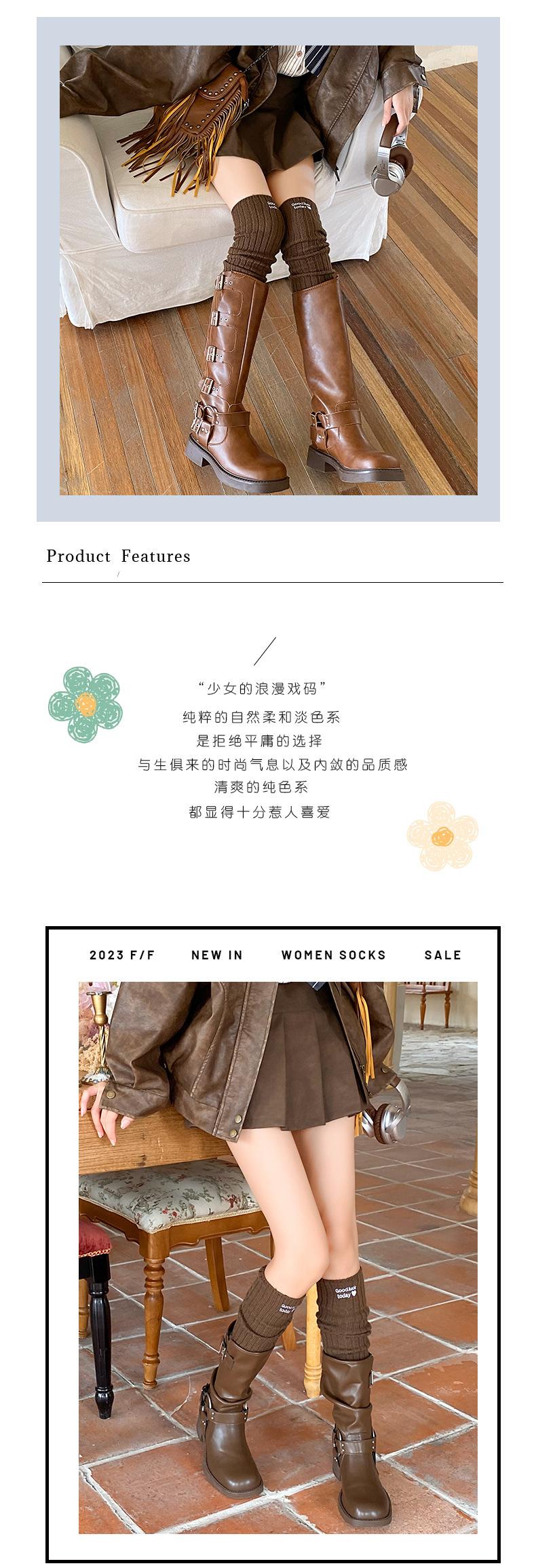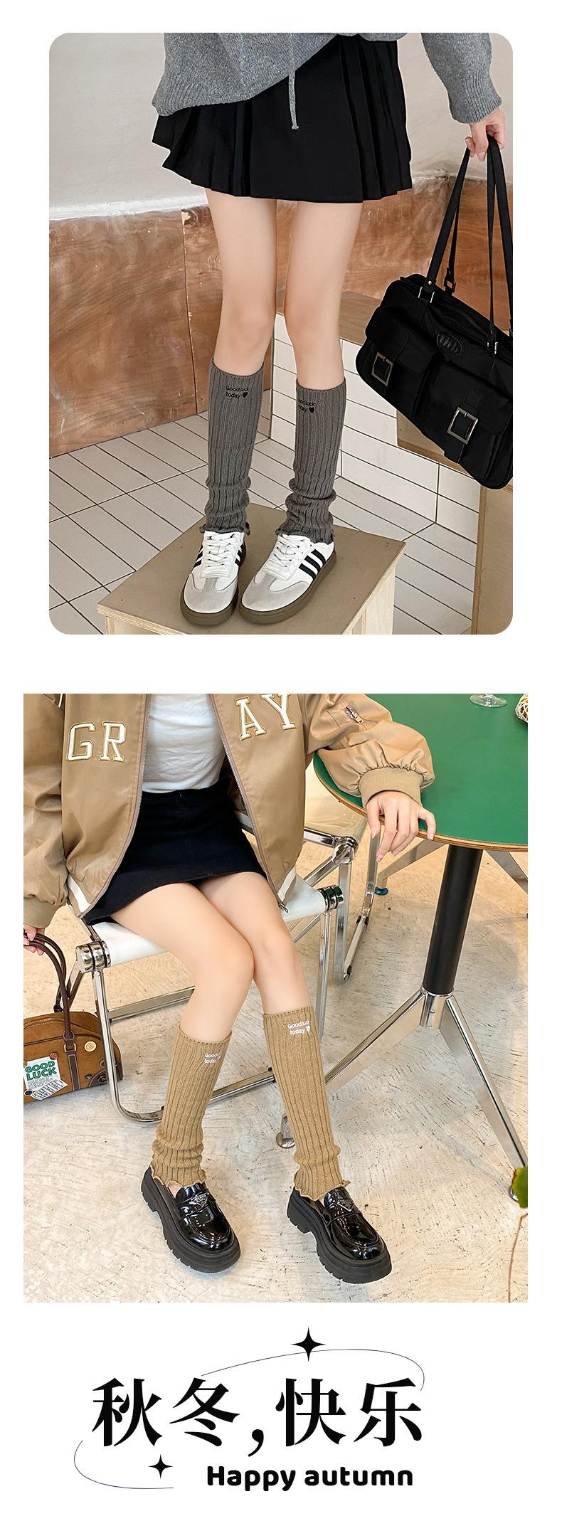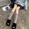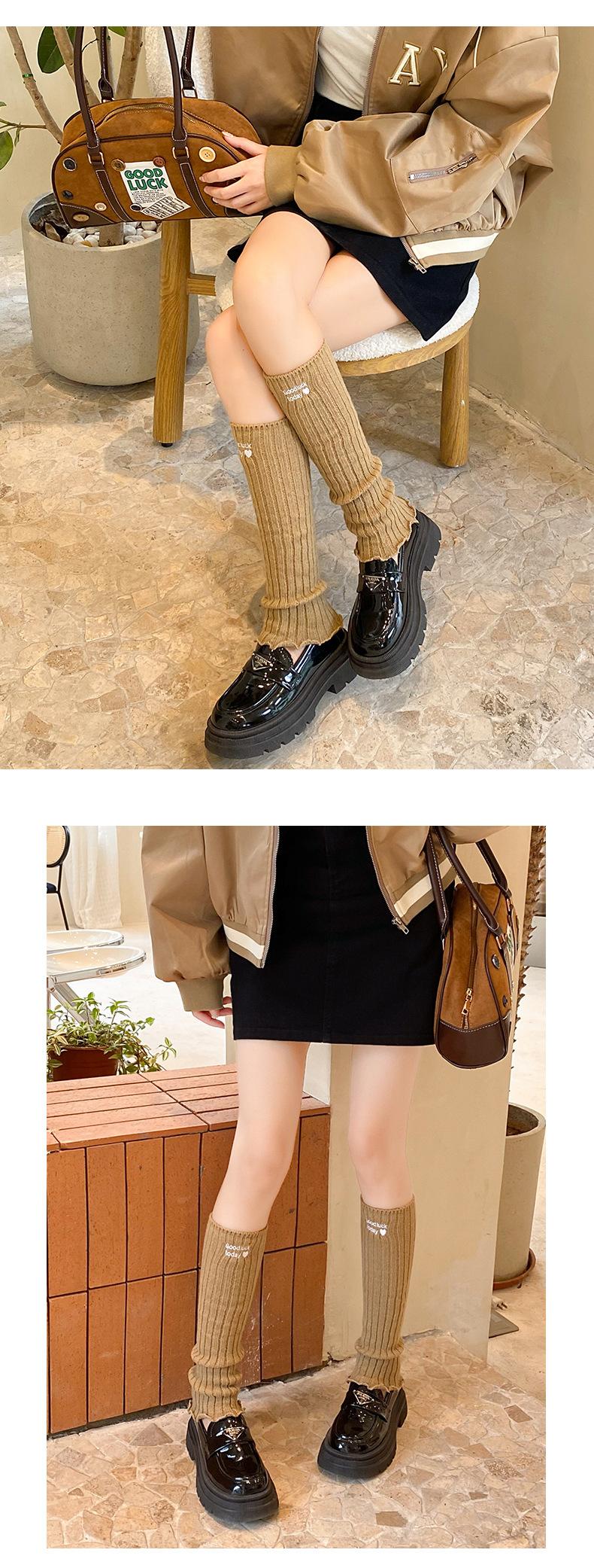 Calcetines para mujer, bordados de amor, primavera y otoño, conjunto de pierna de lana Maillard, estilo coreano, marrón, calcetines de punto para chicas calientes por encima de la rodilla