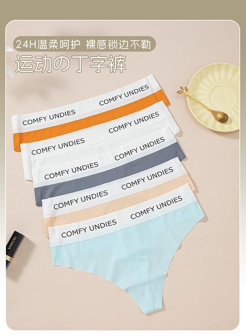 Braguitas sin costuras de seda de hielo para mujer, tanga de corte bajo, deportivas fitness de una pieza con letras, entrepierna de algodón, braguitas T-back