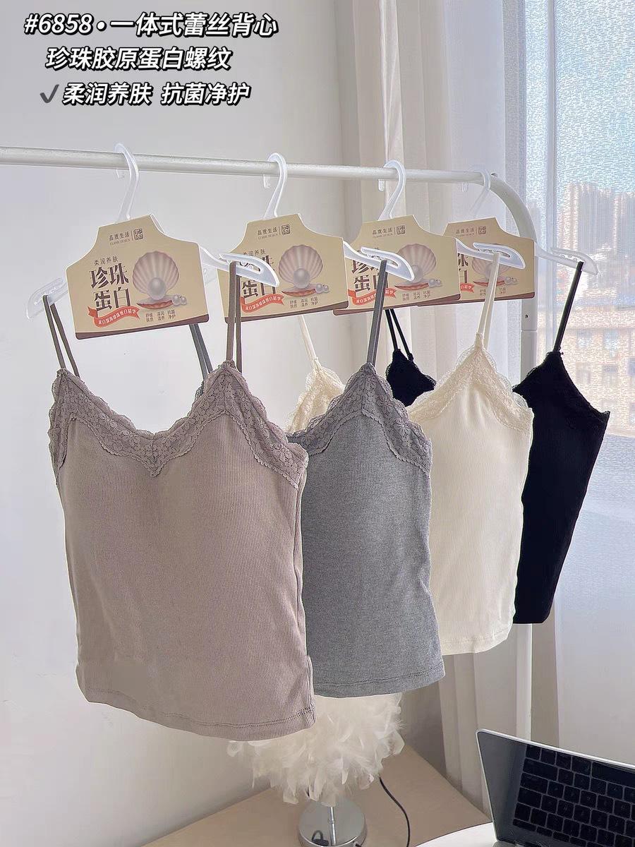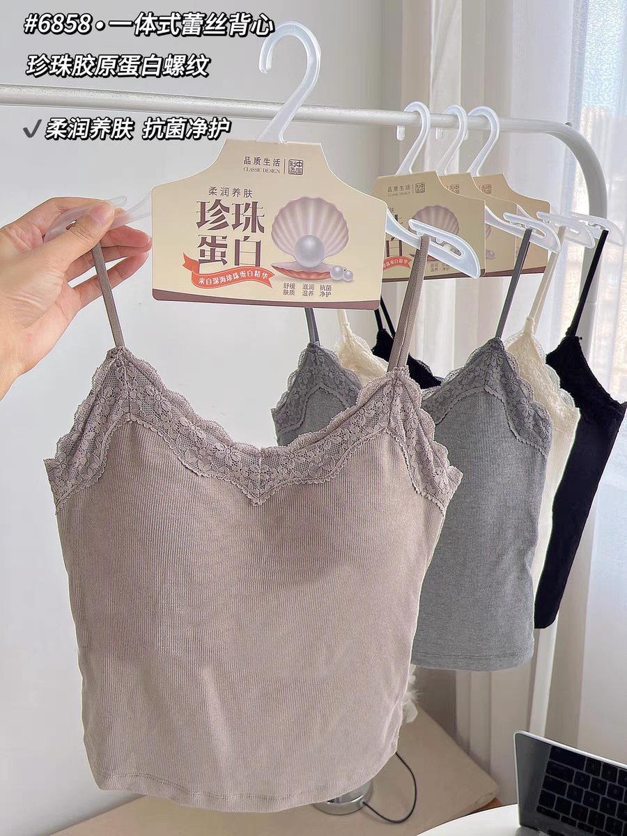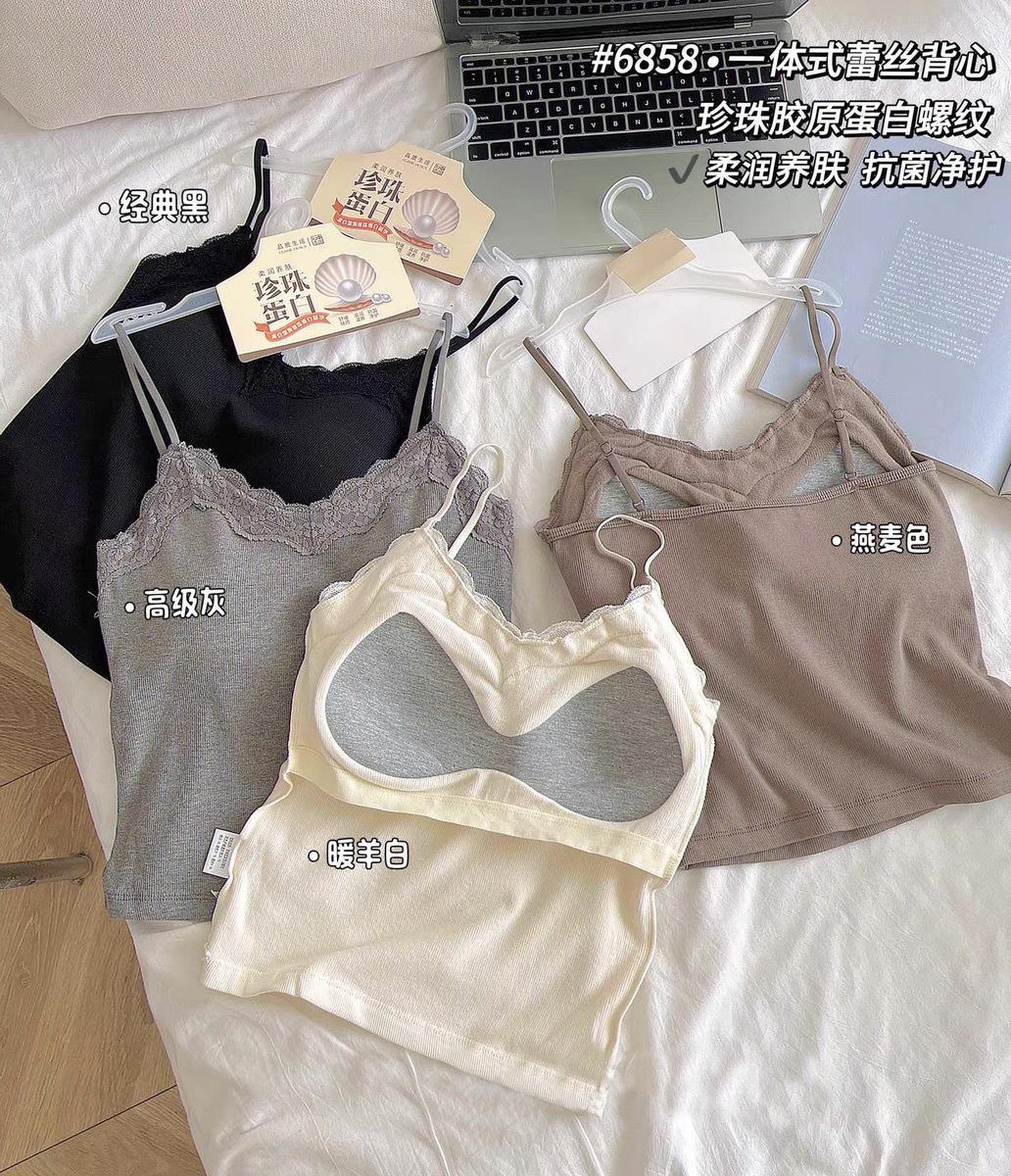 Otoño 6858 Nuevo Camisola de Encaje con Copa Fija de Una Pieza Ropa Interior con Soporte para Mujer Top Ajustado