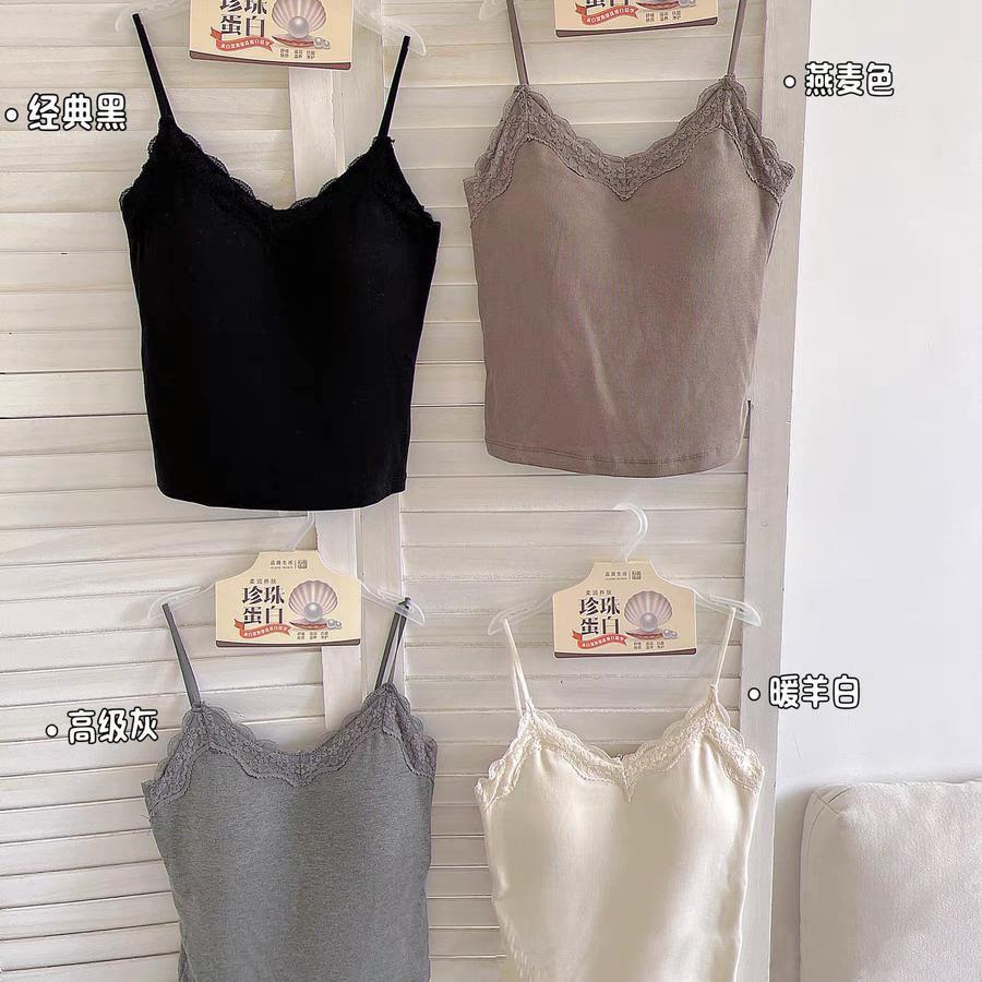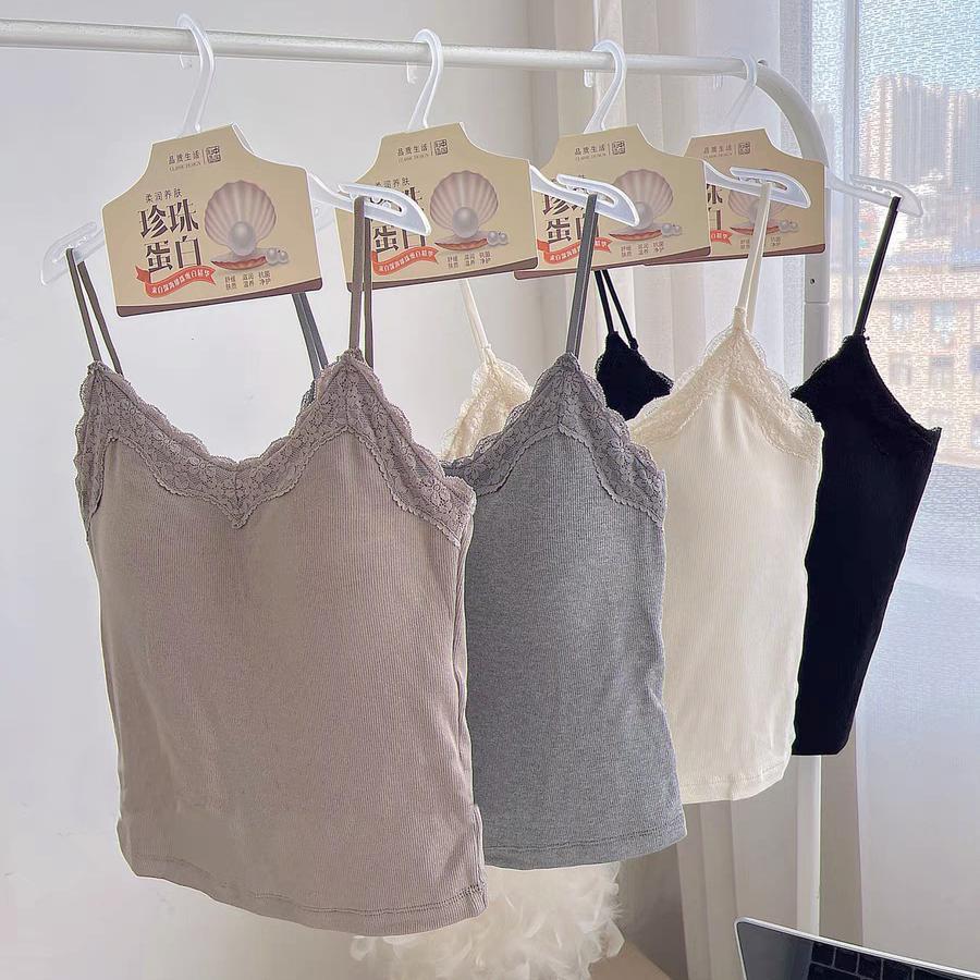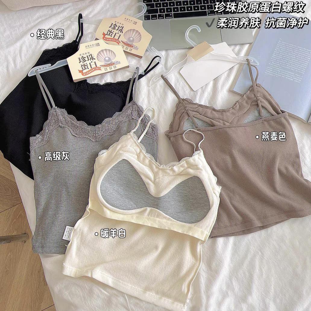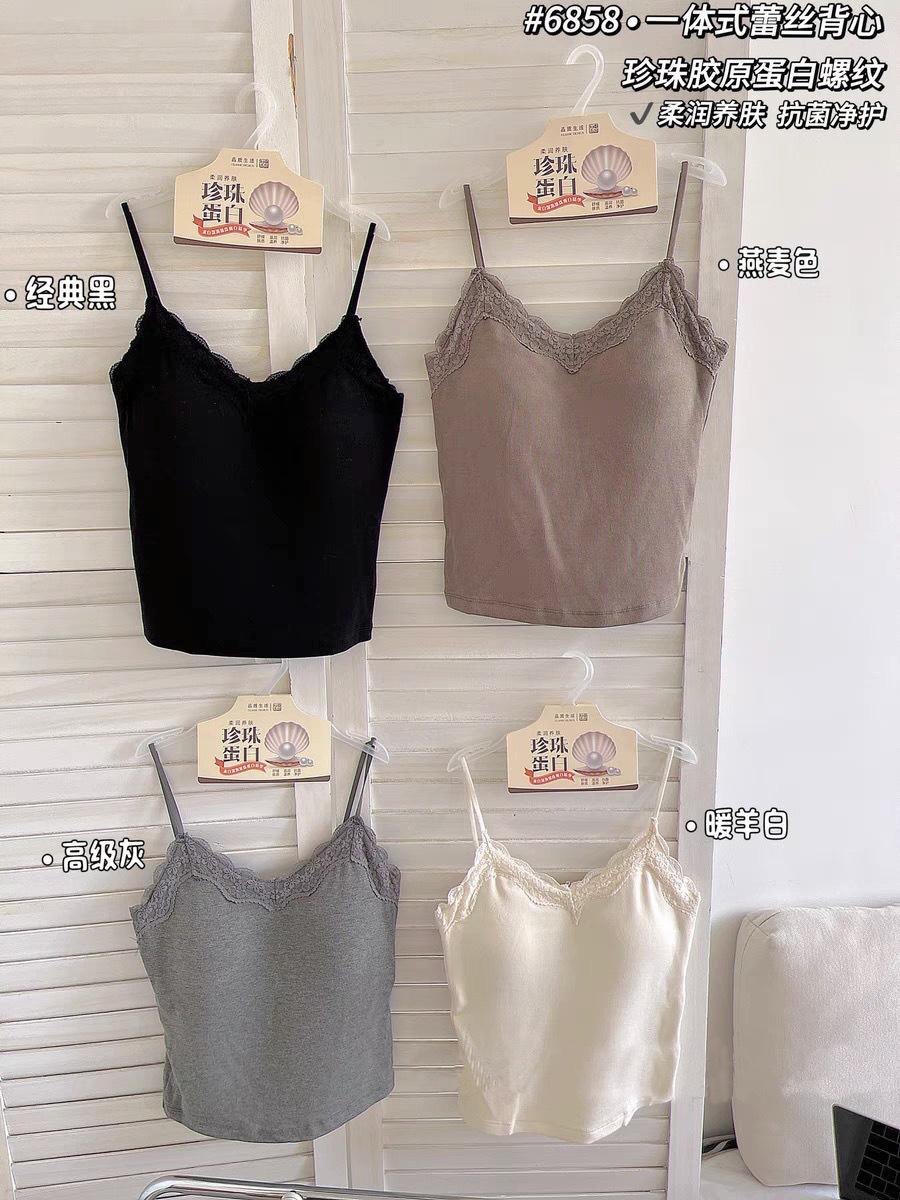 Otoño 6858 Nuevo Camisola de Encaje con Copa Fija de Una Pieza Ropa Interior con Soporte para Mujer Top Ajustado