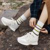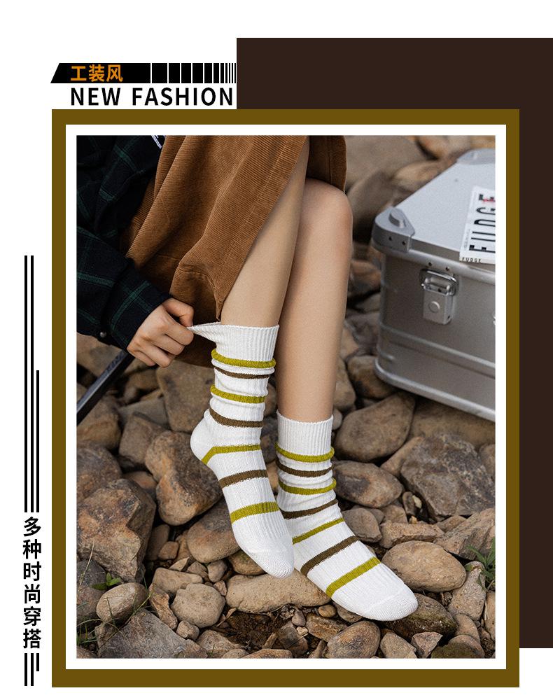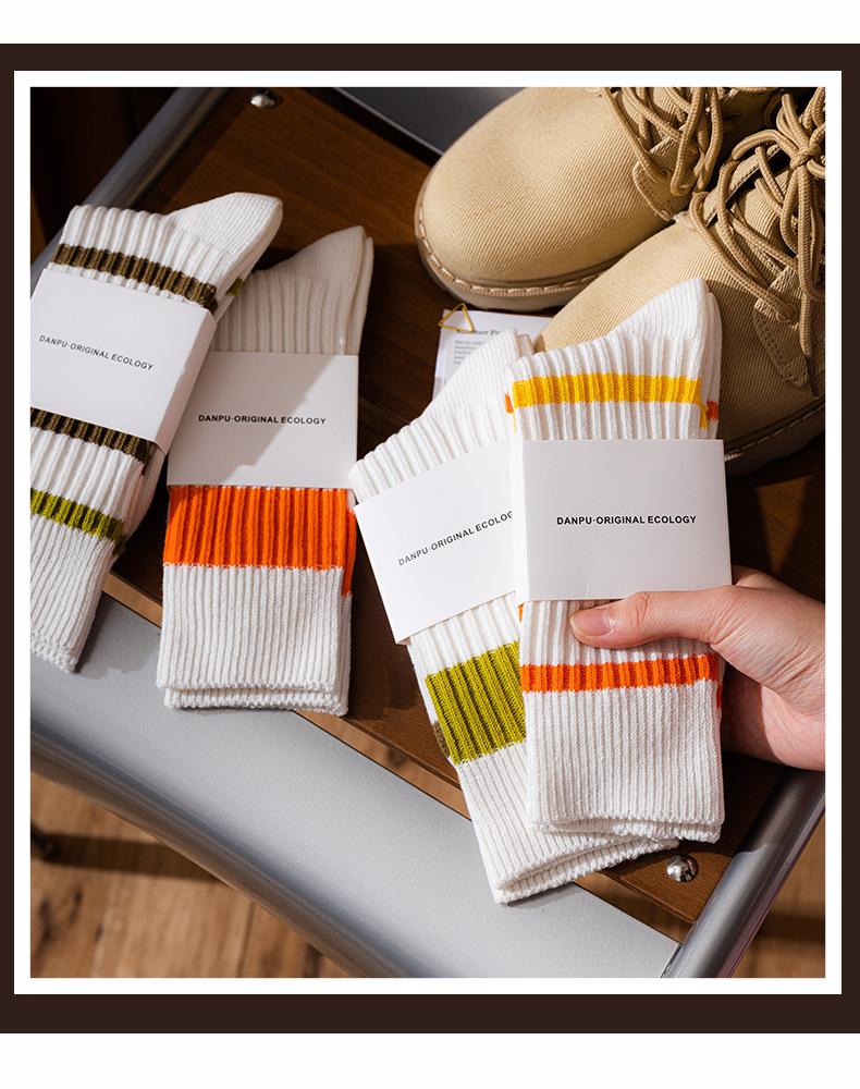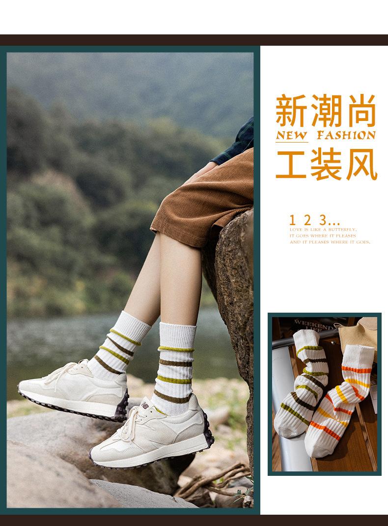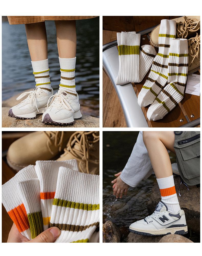 Calcetines de media pantorrilla para mujer, modernos calcetines de algodón japonés para todo tipo de combinaciones, estilo preppy, a rayas, de caña alta.