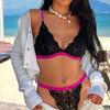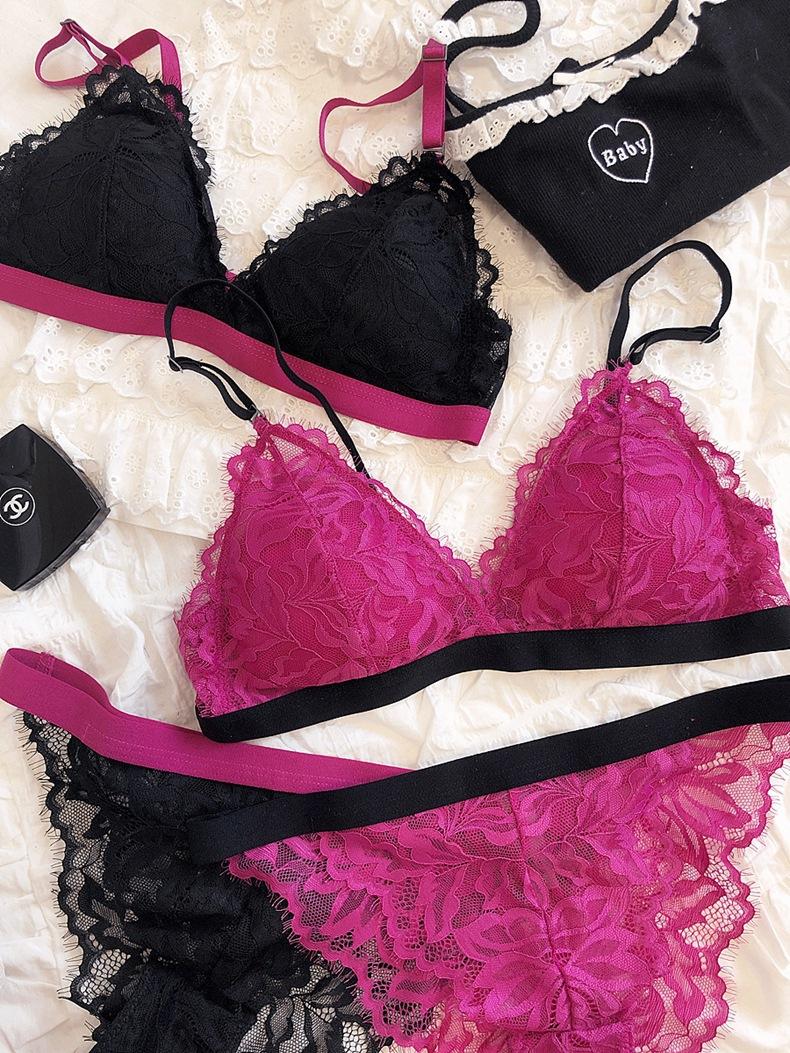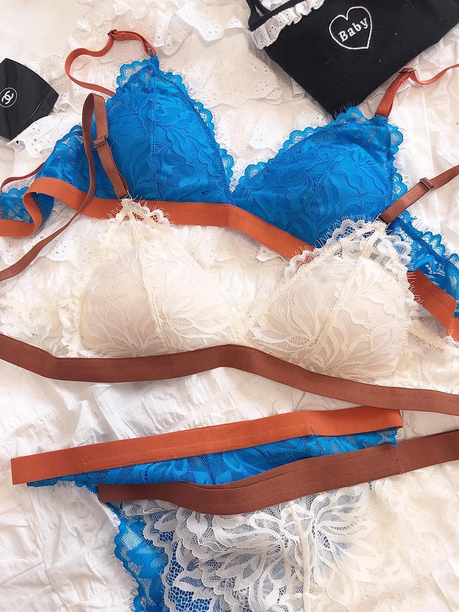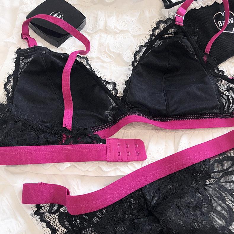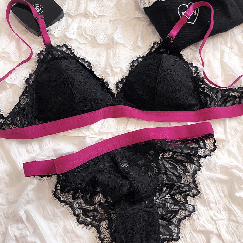 Lencería sexy francesa popular transfronteriza, sujetador de encaje de color contrastante retro ultrafino, conjunto de lencería sexy pequeña de pecho grande |
