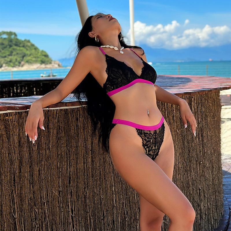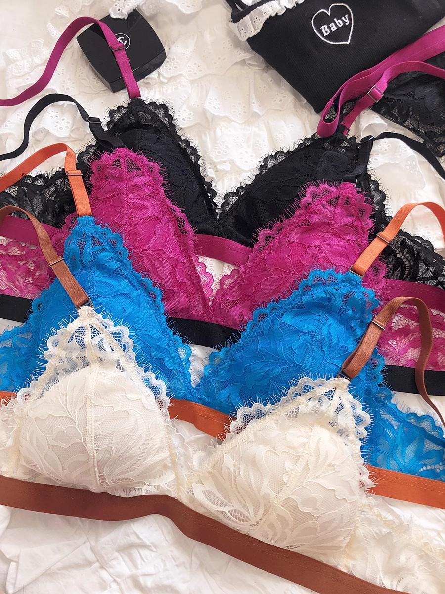 Ropa interior de encaje francés, perspectiva ultrafina, flocado, malla estampada, ropa interior sexy, sujetador de lazo sexy para niña |