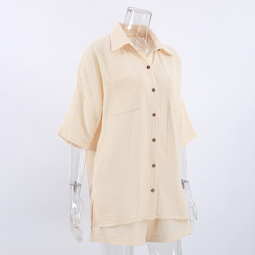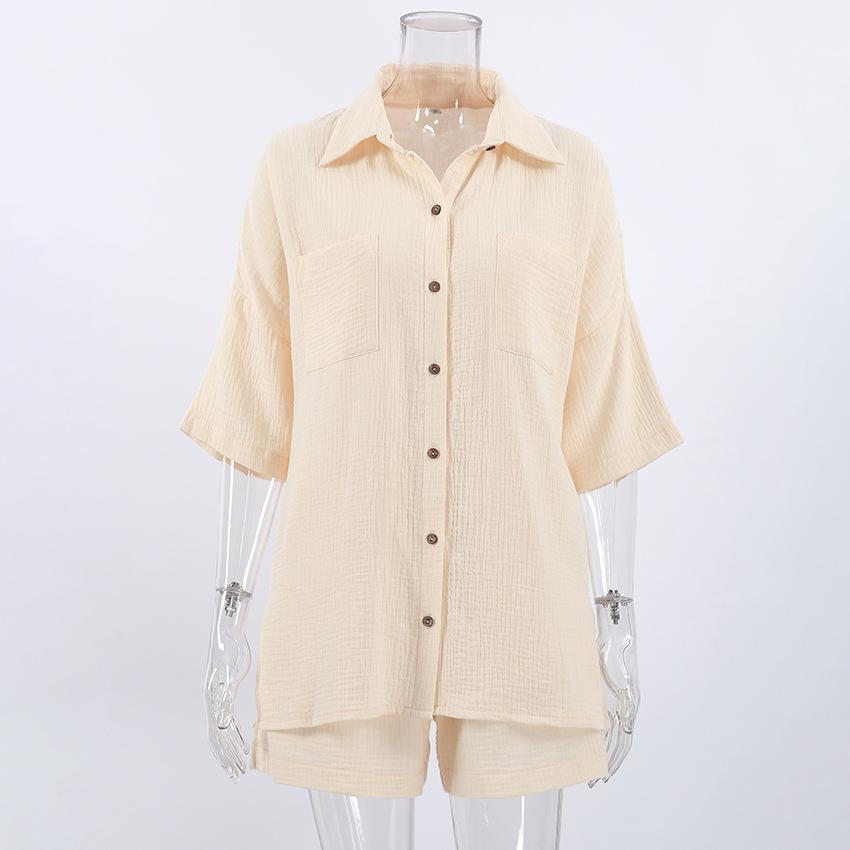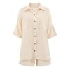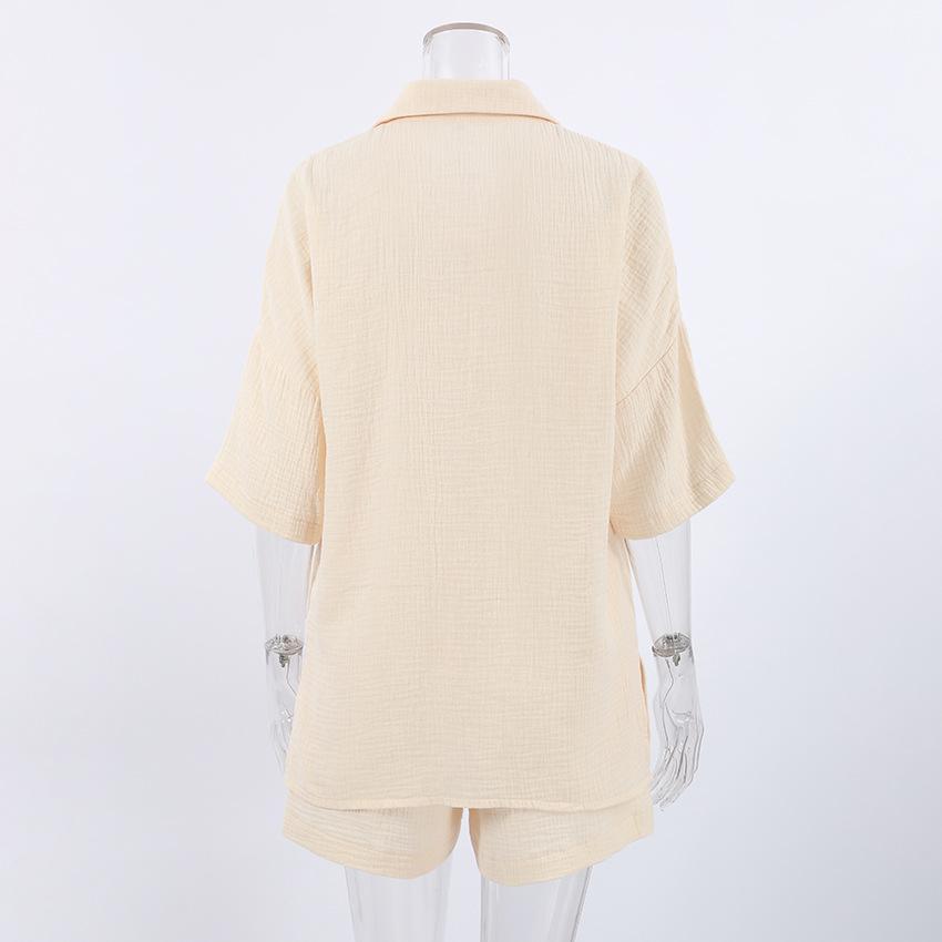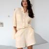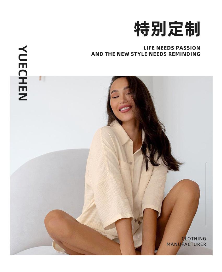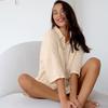 Pijama corto de manga corta de algodón, cómodo y beige, para otoño e invierno, 2023, venta al por mayor